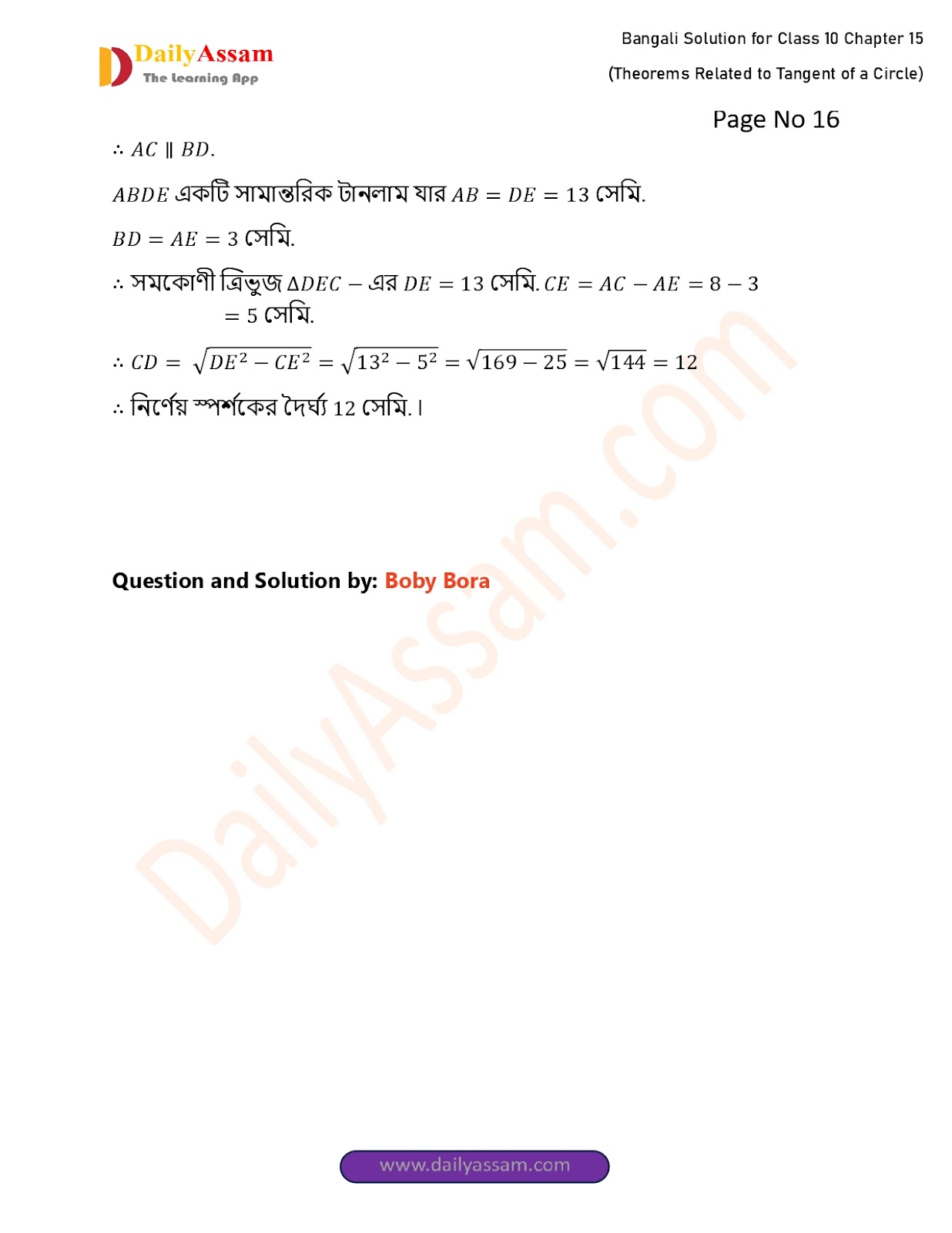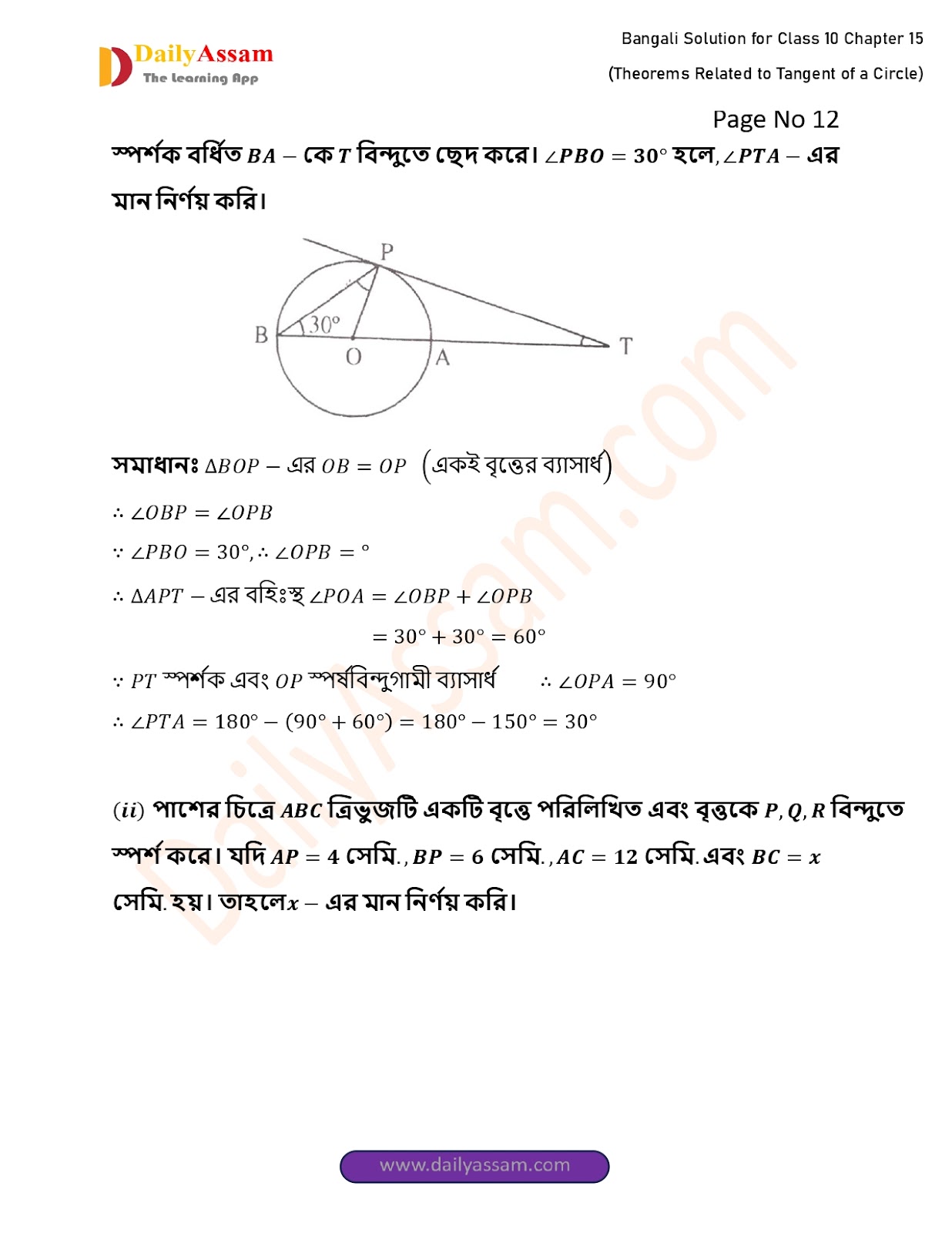 HomeWBBSE Class 10 MathsWBBSE Class 10 Mathematics Chapter 15 Solution | West Bengal Class 10 Mathematics Chapter 15 বৃত্তের স্পর্শক সংক্রান্ত উপপাদ্য (Theorems Related to Tangent of a Circle) Answer | 2025 - 2026