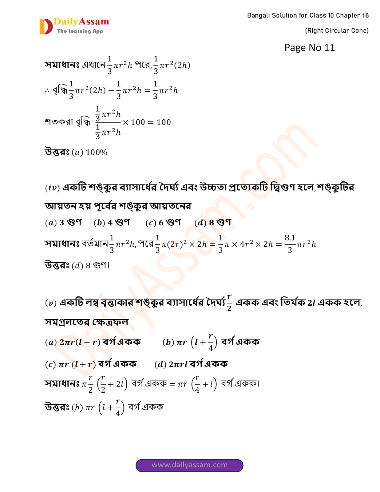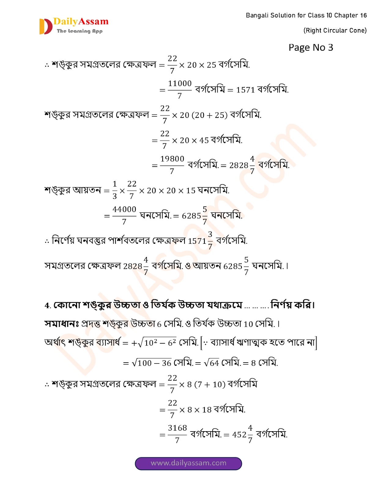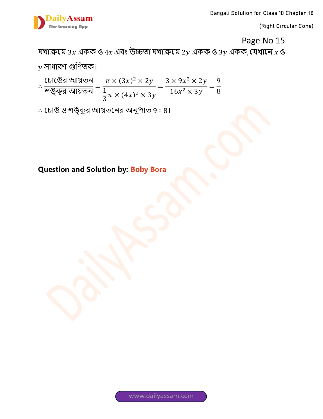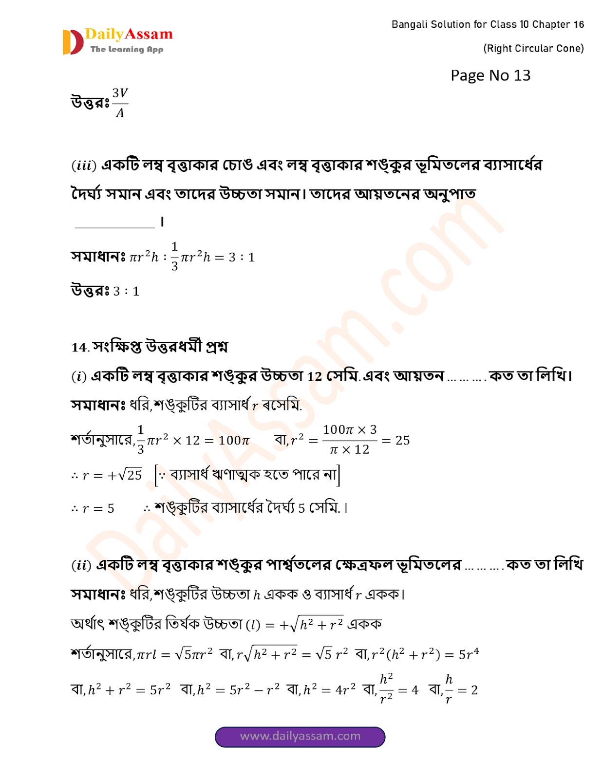 WBBSE Class 10 Mathematics Chapter 16 Solution | West Bengal Class 10 Mathematics Chapter 16 লম্ব বৃত্তাকার শঙ্কু (Right Circular Cone) Answer | 2025 - 2026
