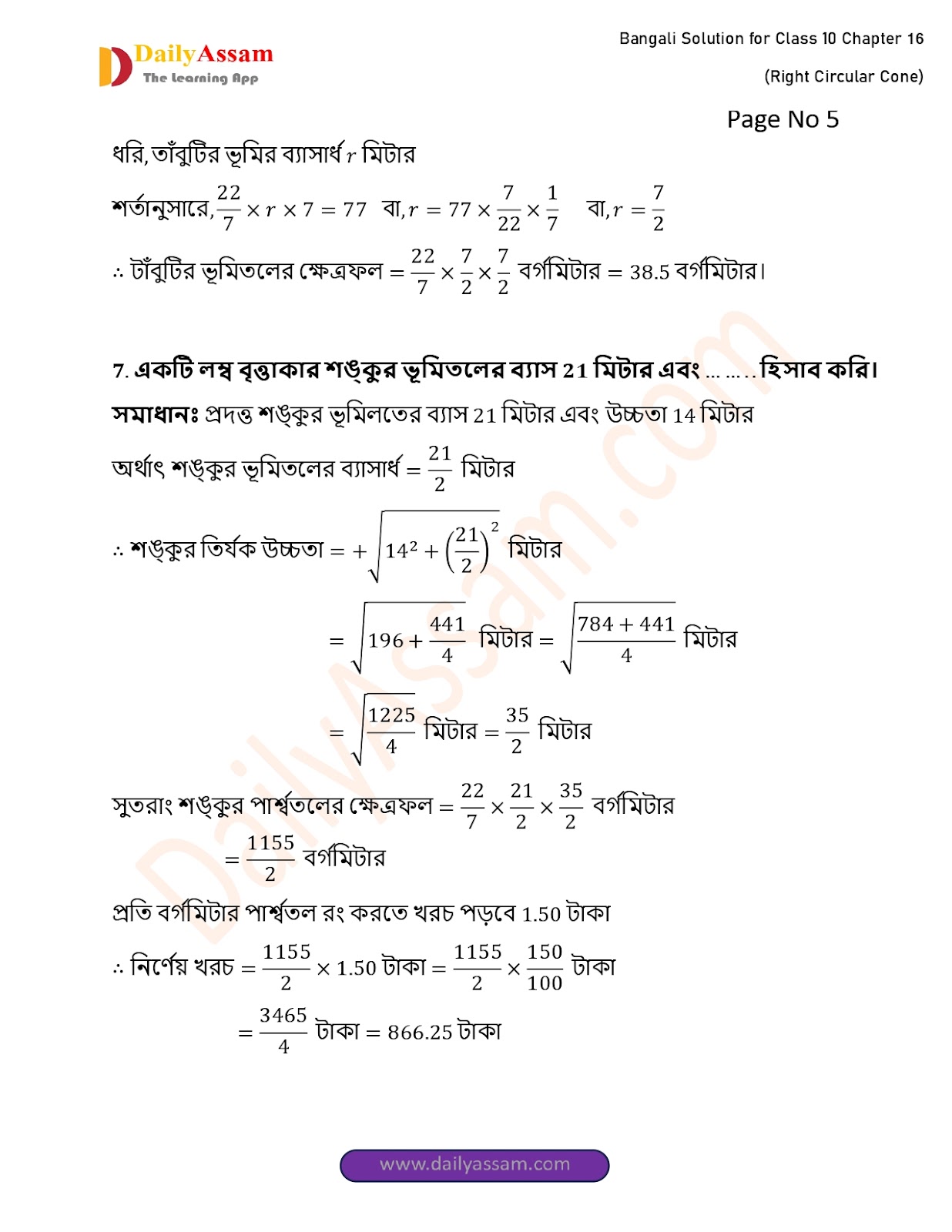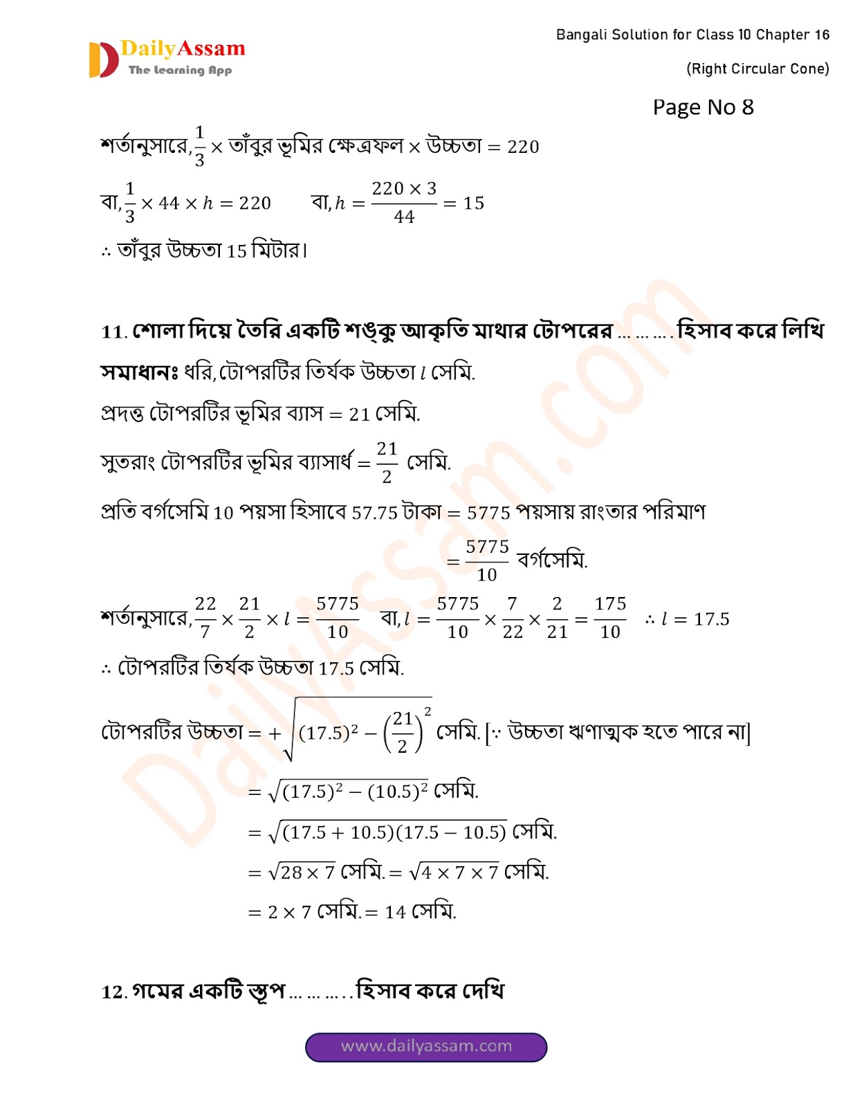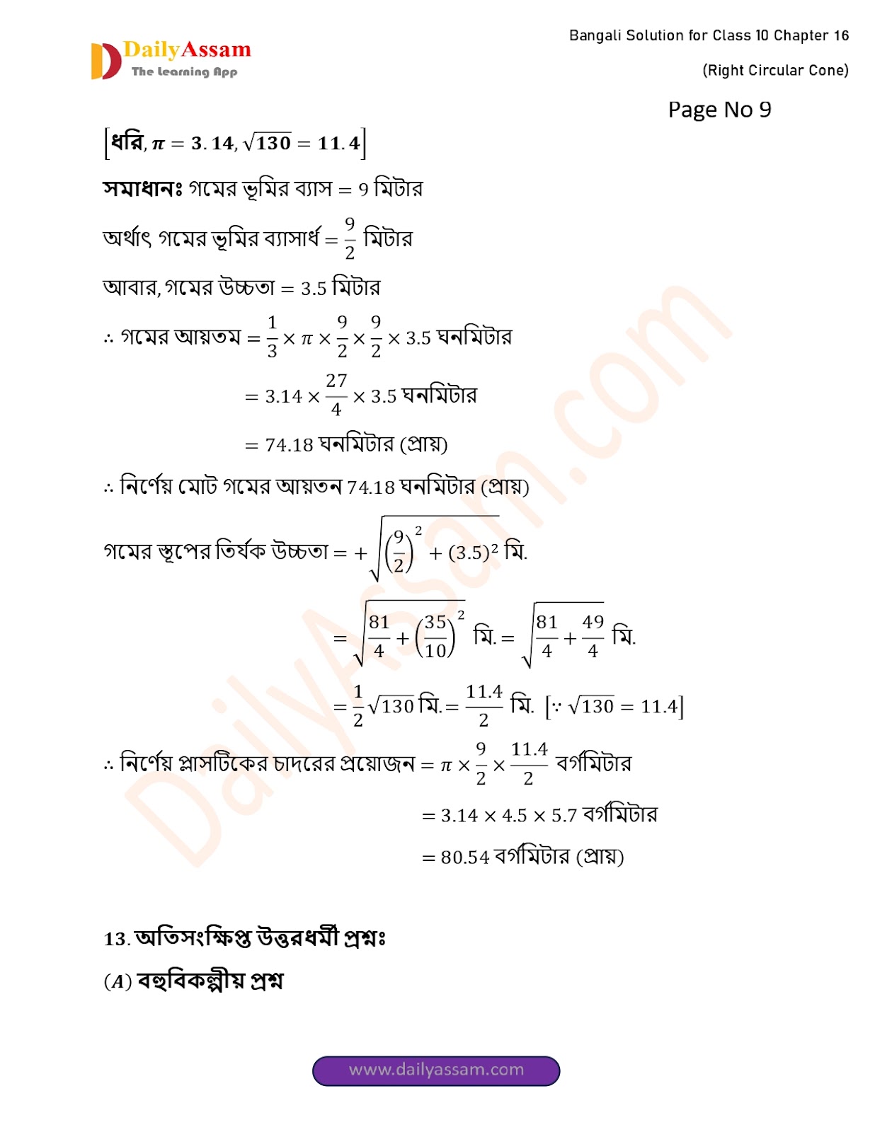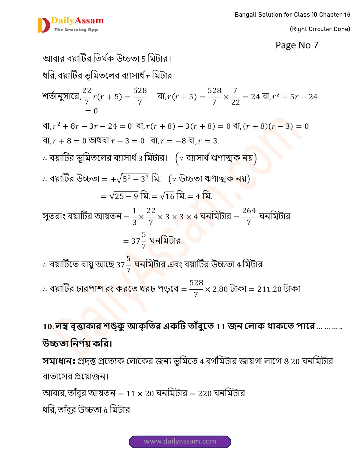 WBBSE Class 10 Mathematics Chapter 16 Solution | West Bengal Class 10 Mathematics Chapter 16 লম্ব বৃত্তাকার শঙ্কু (Right Circular Cone) Answer | 2025 - 2026