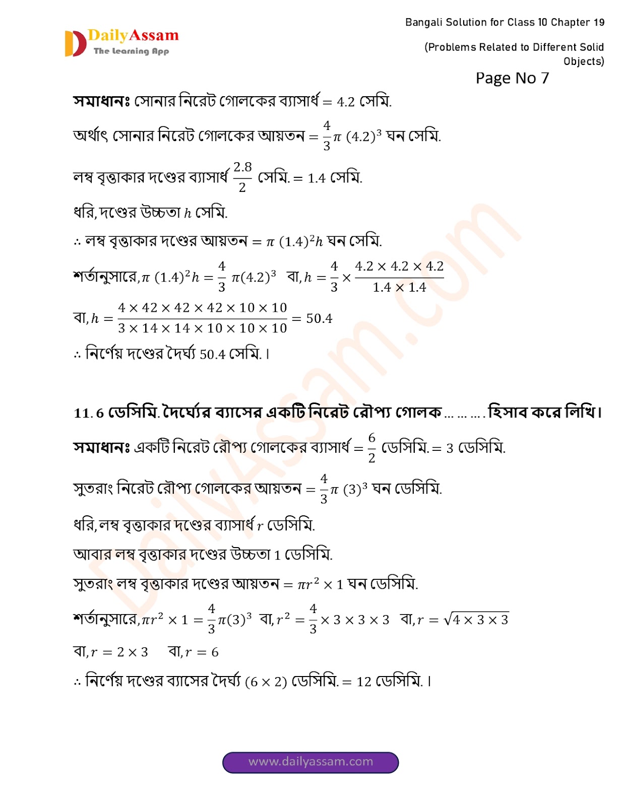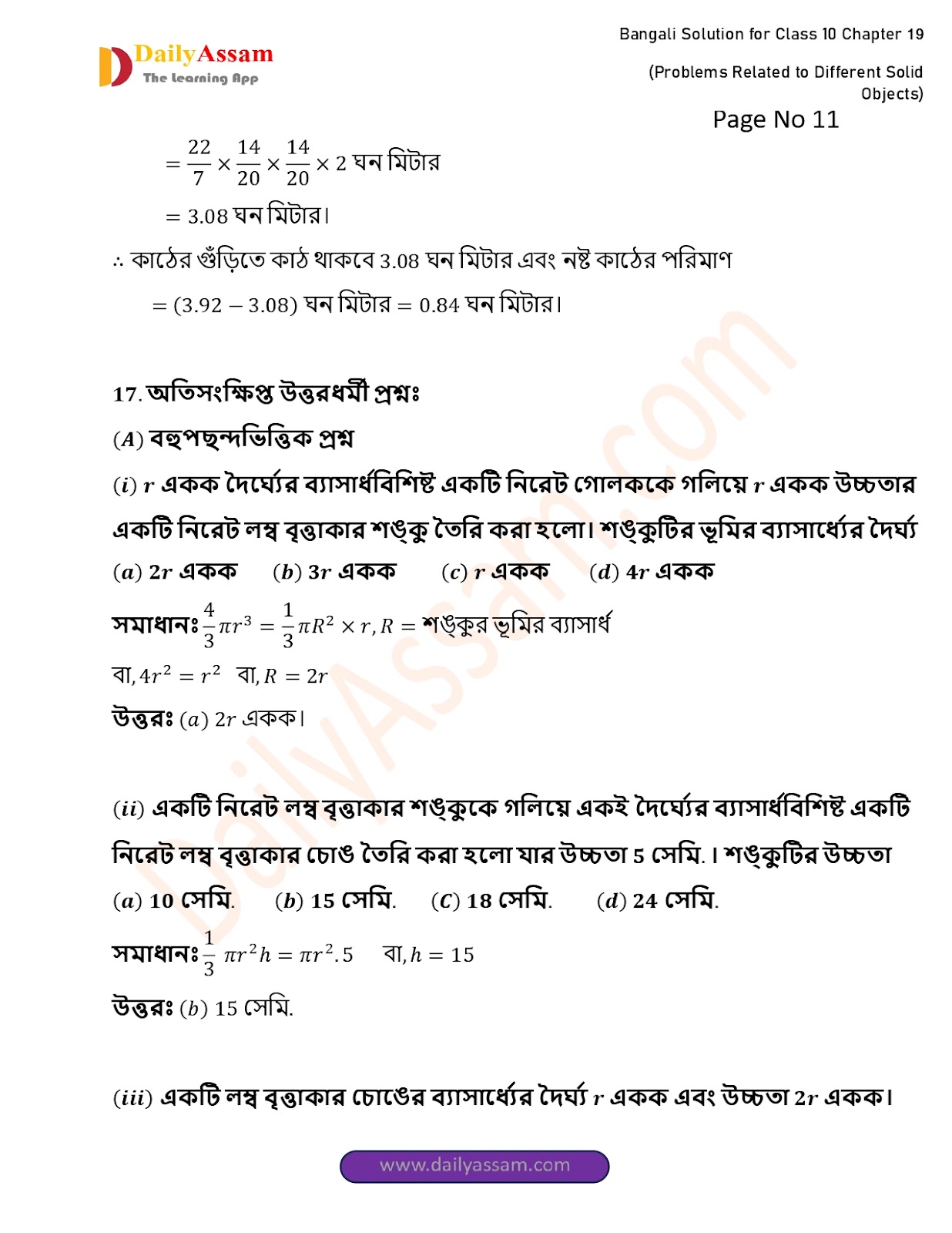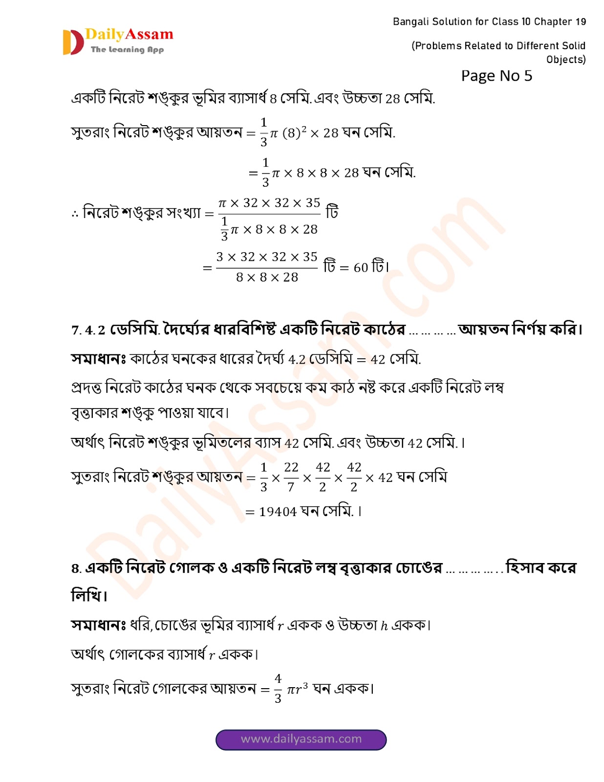 WBBSE Class 10 Mathematics Chapter 19 Solution | West Bengal Class 10 Mathematics Chapter 19 বিভিন্ন ঘনবস্তু লংক্রান্ত সমস্যা (Problems Related to Different Solid Objects) Answer | 2025 - 2026