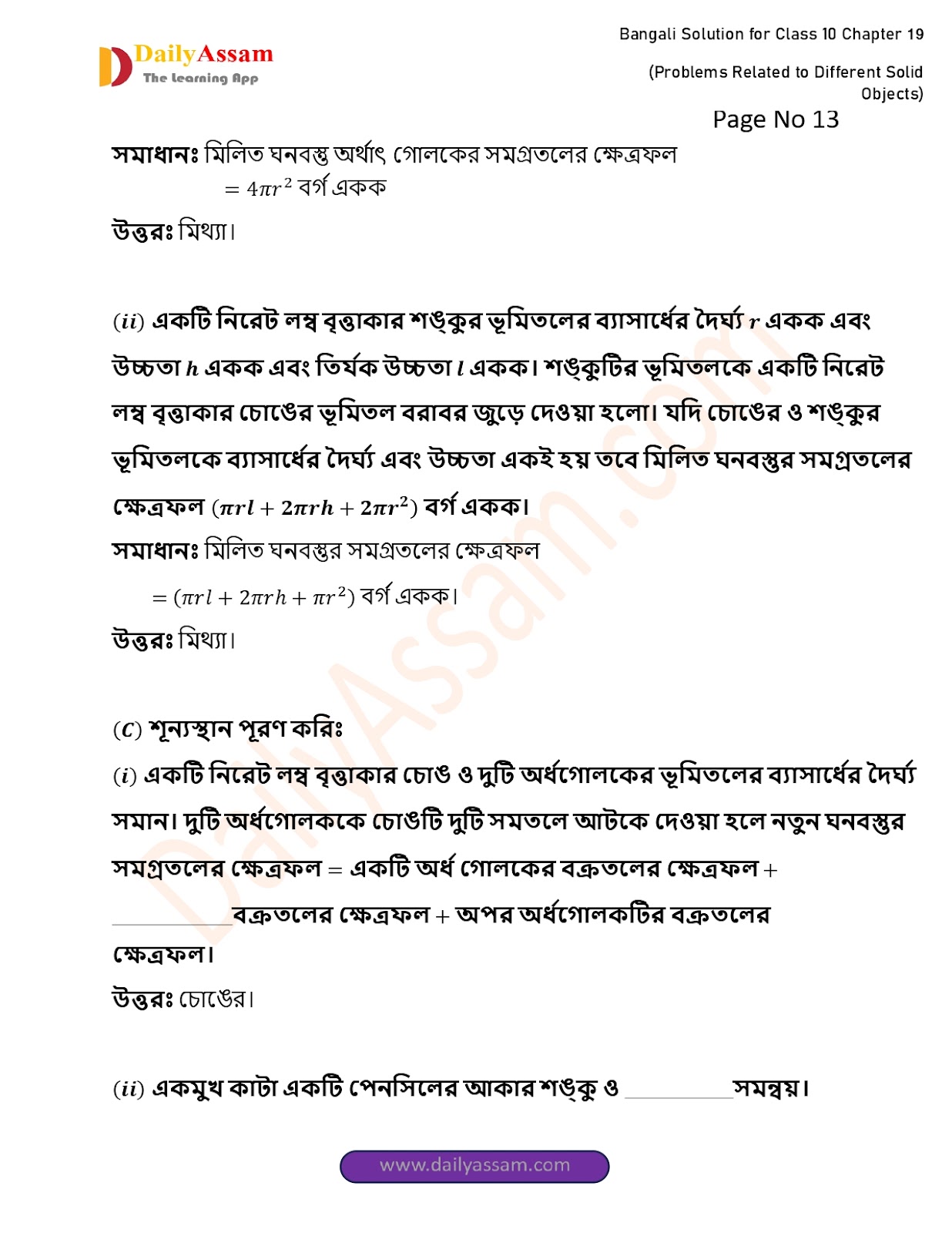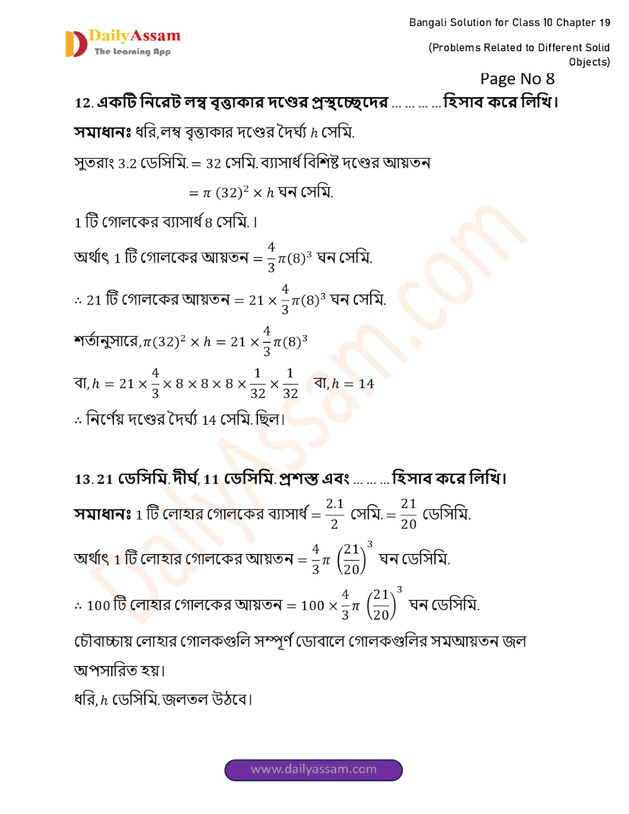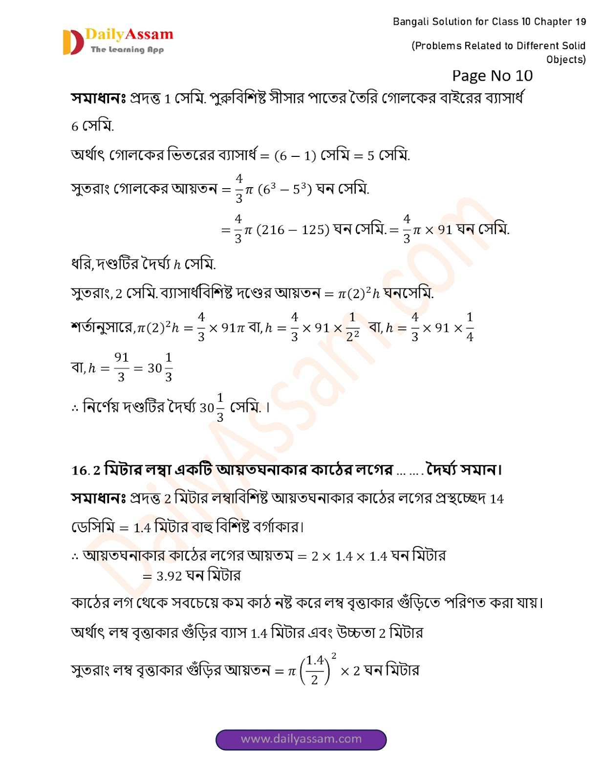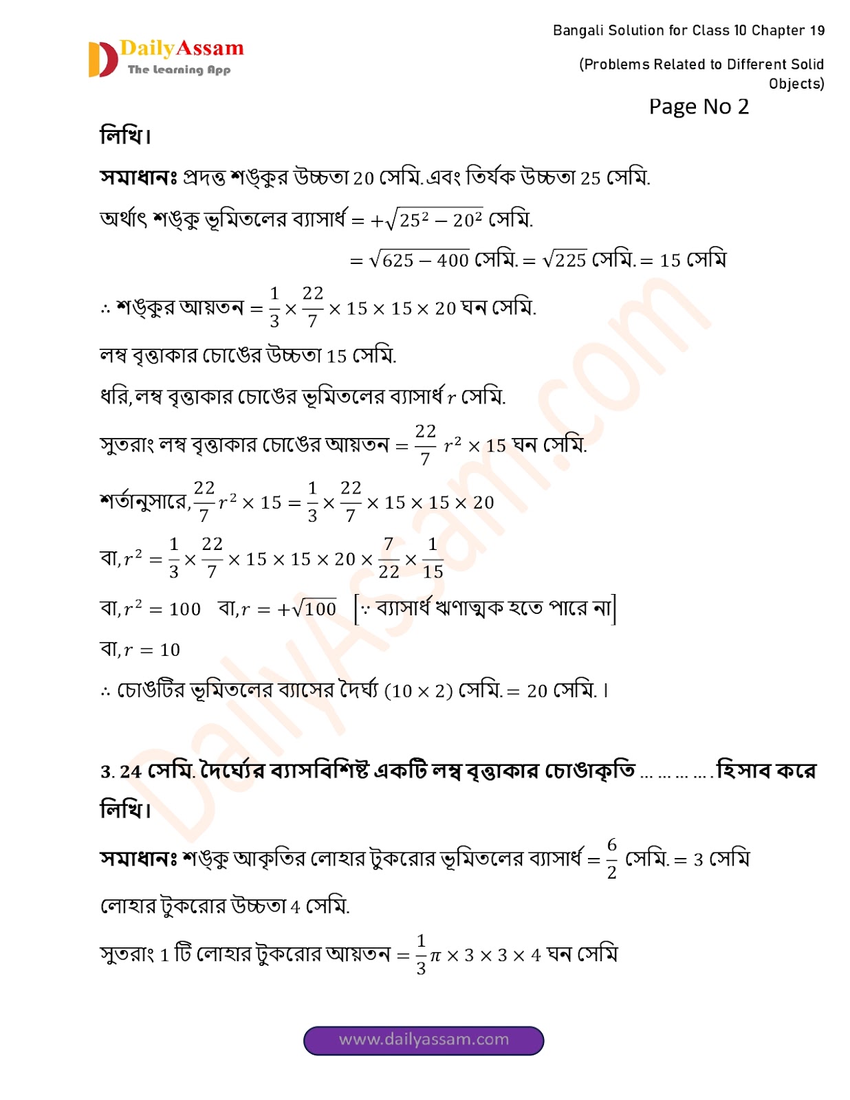 WBBSE Class 10 Mathematics Chapter 19 Solution | West Bengal Class 10 Mathematics Chapter 19 বিভিন্ন ঘনবস্তু লংক্রান্ত সমস্যা (Problems Related to Different Solid Objects) Answer | 2025 - 2026