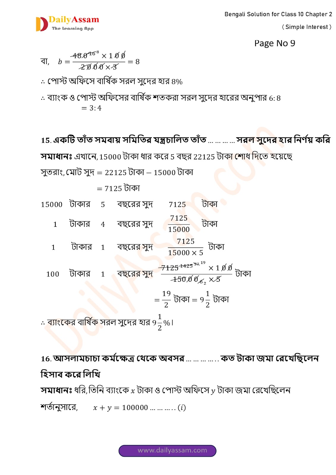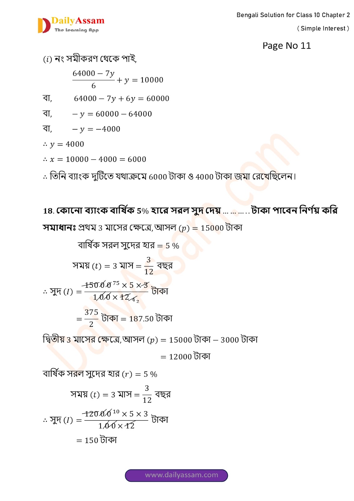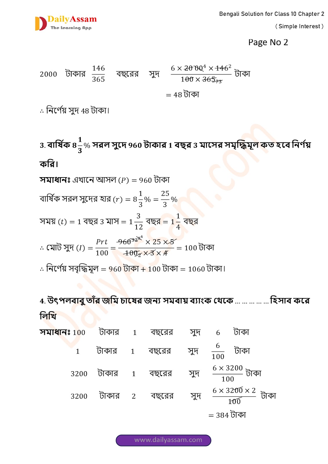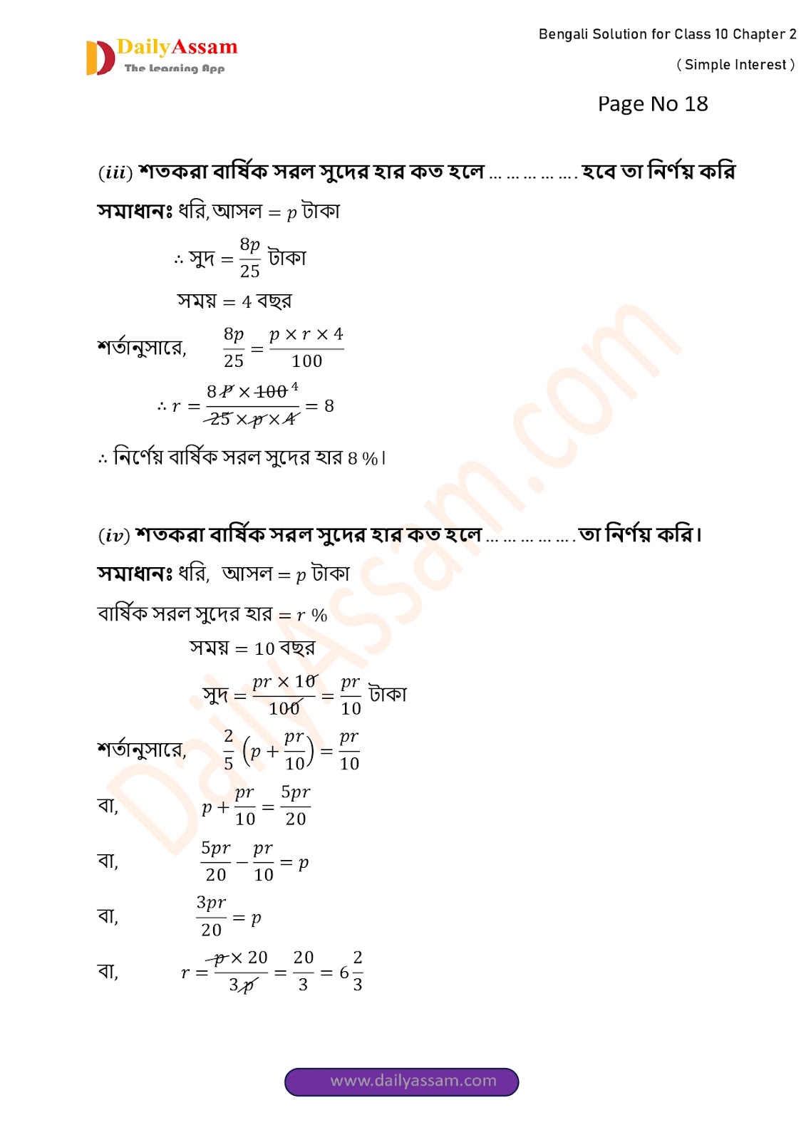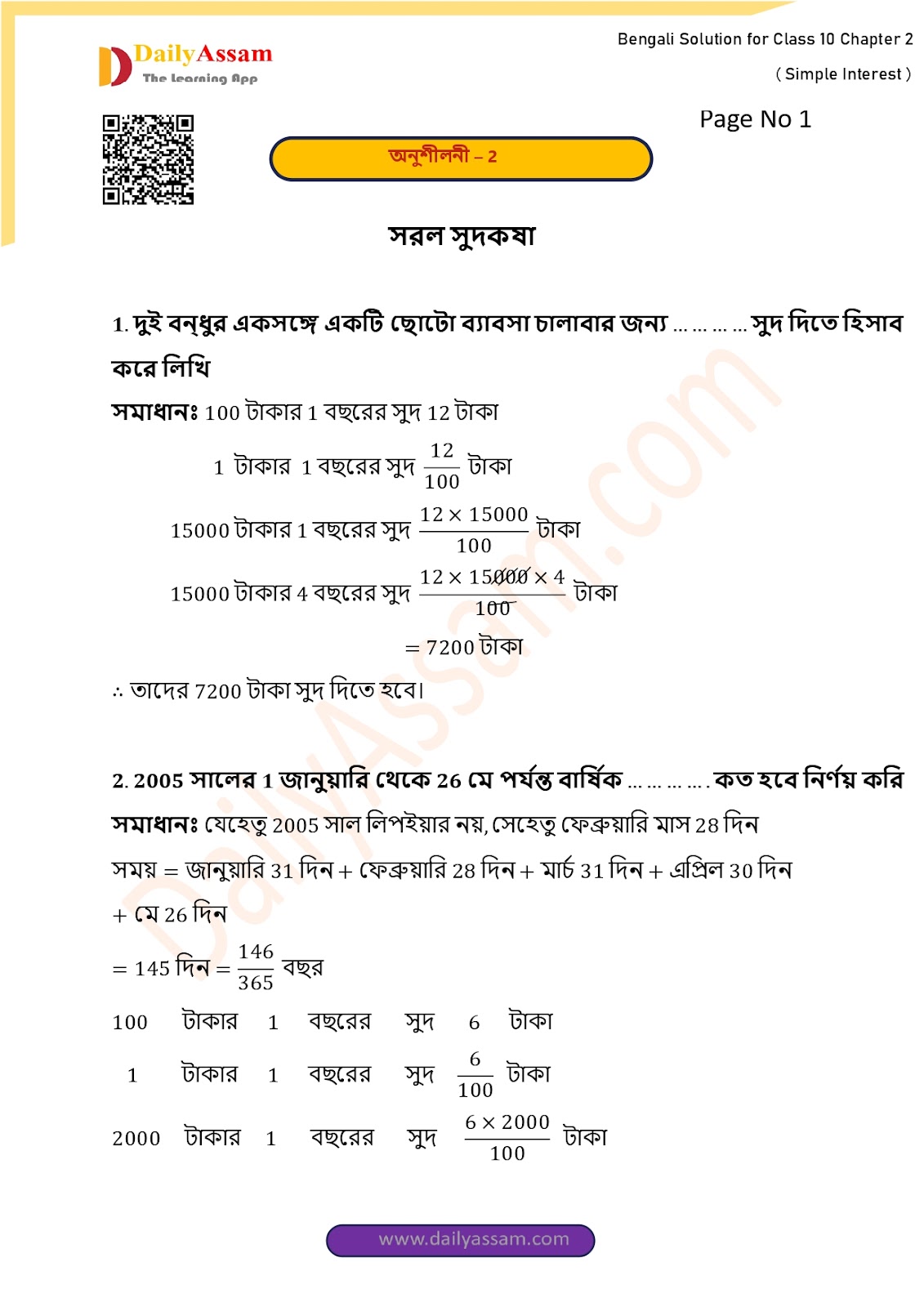 WBBSE Class 10 Mathematics Chapter 2 Solution | West Bengal Class 10 Mathematics Chapter 2 সরল সুদকষা (Simple interest) Answer | 2025 - 2026