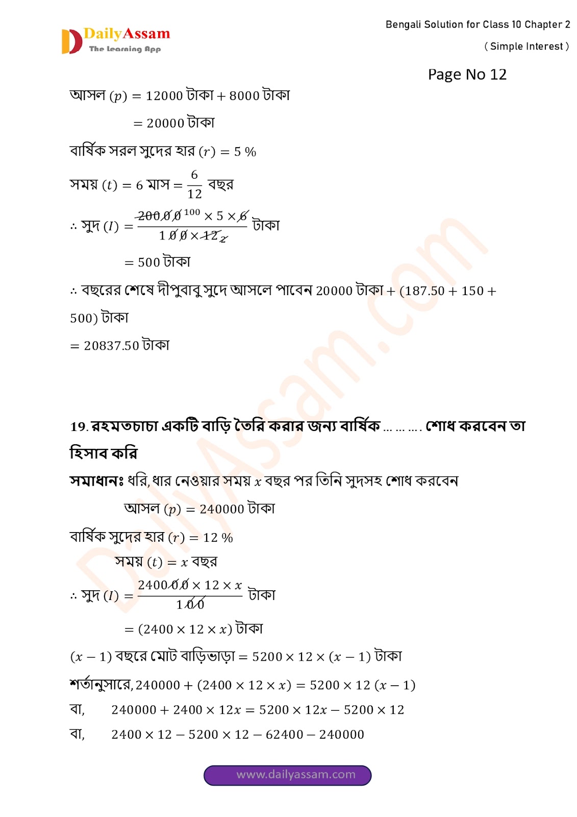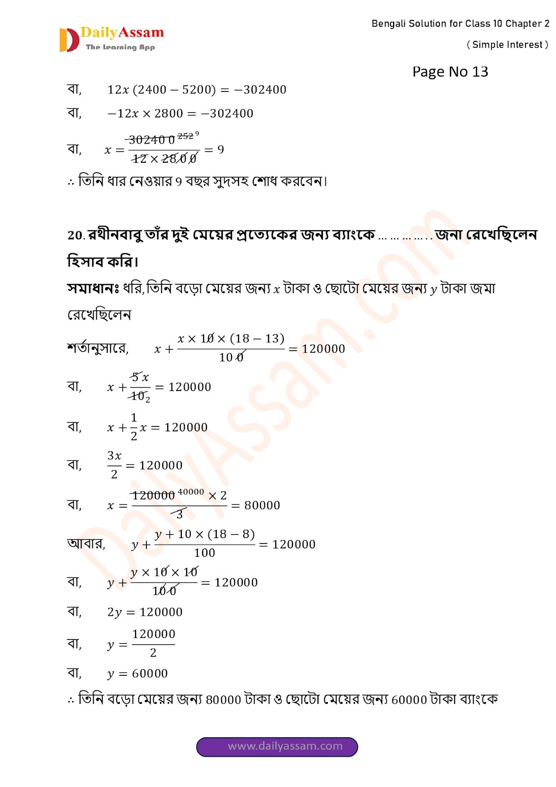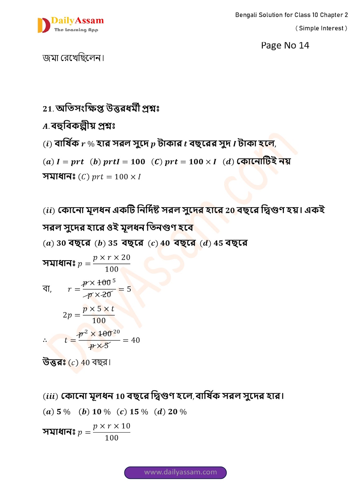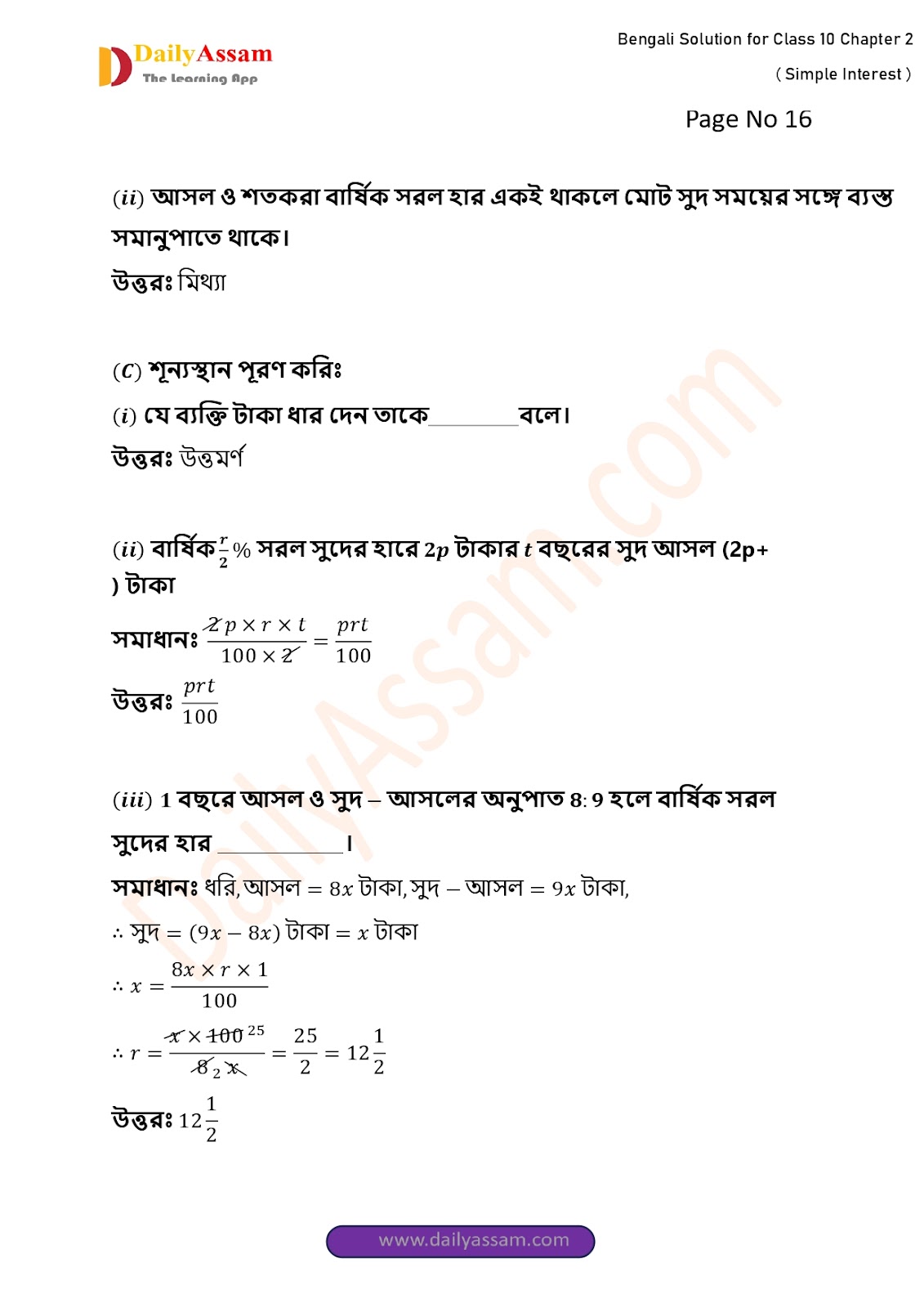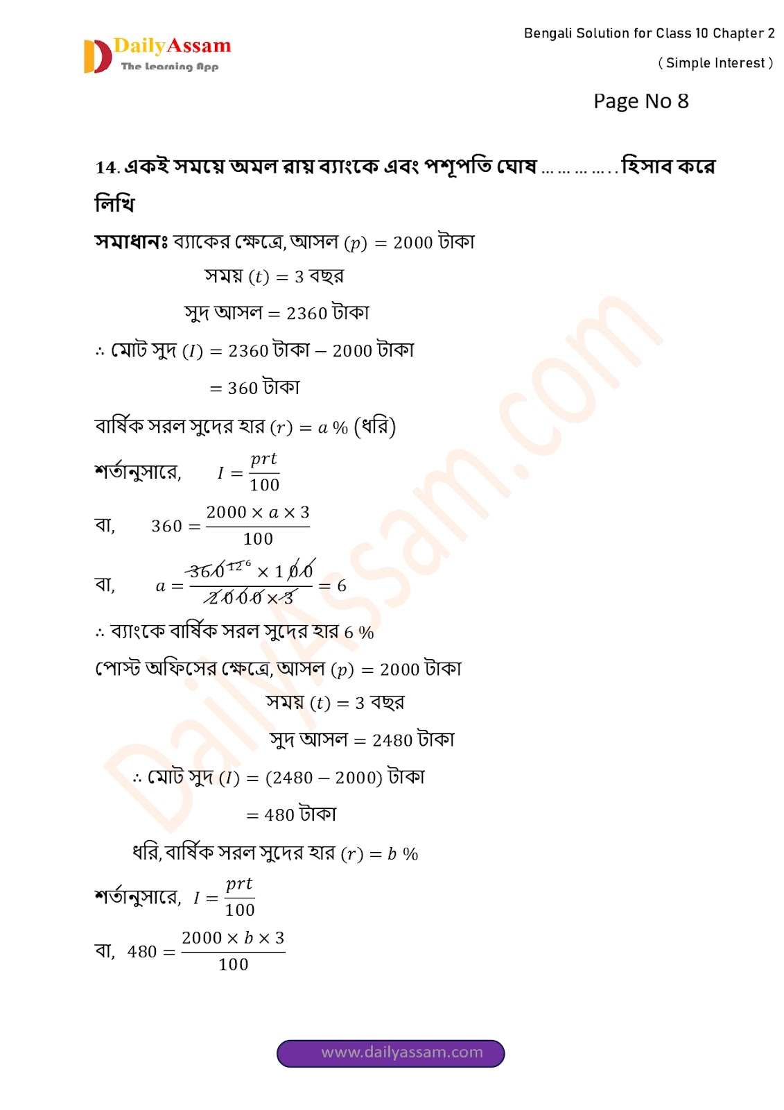 HomeWBBSE Class 10 MathsWBBSE Class 10 Mathematics Chapter 2 Solution | West Bengal Class 10 Mathematics Chapter 2 সরল সুদকষা (Simple interest) Answer | 2025 - 2026