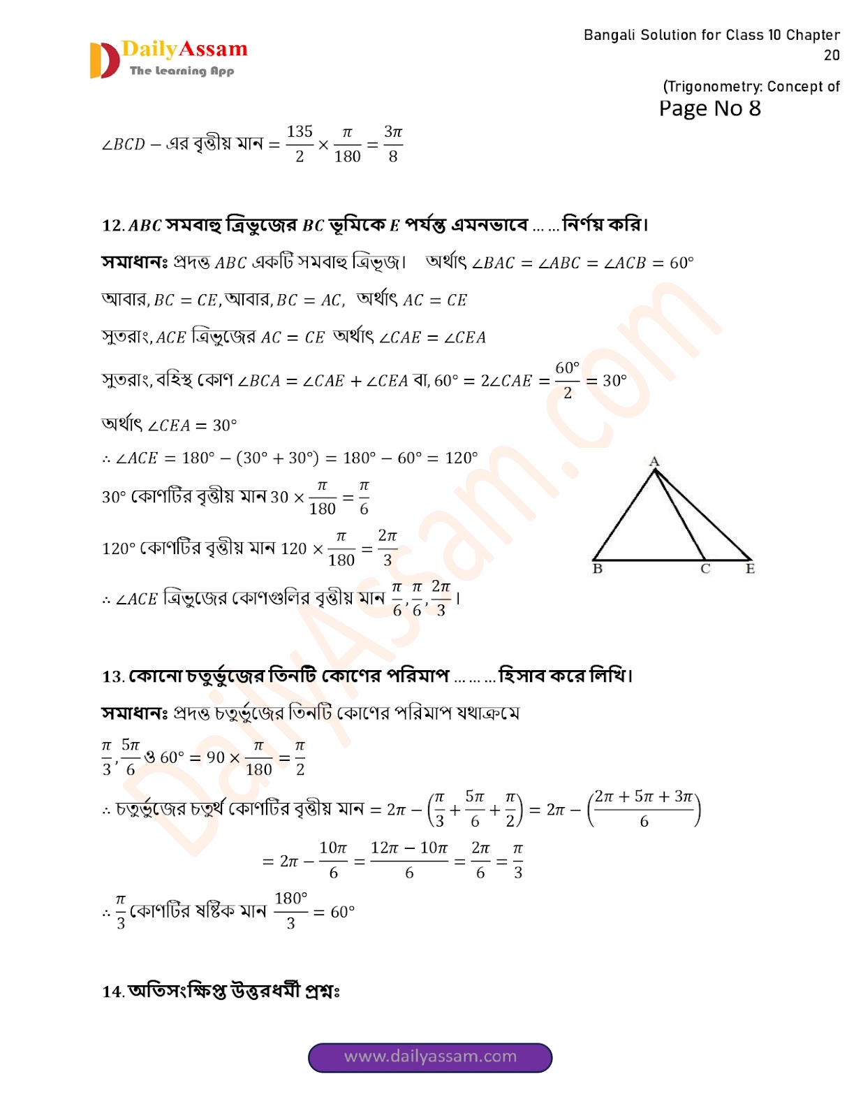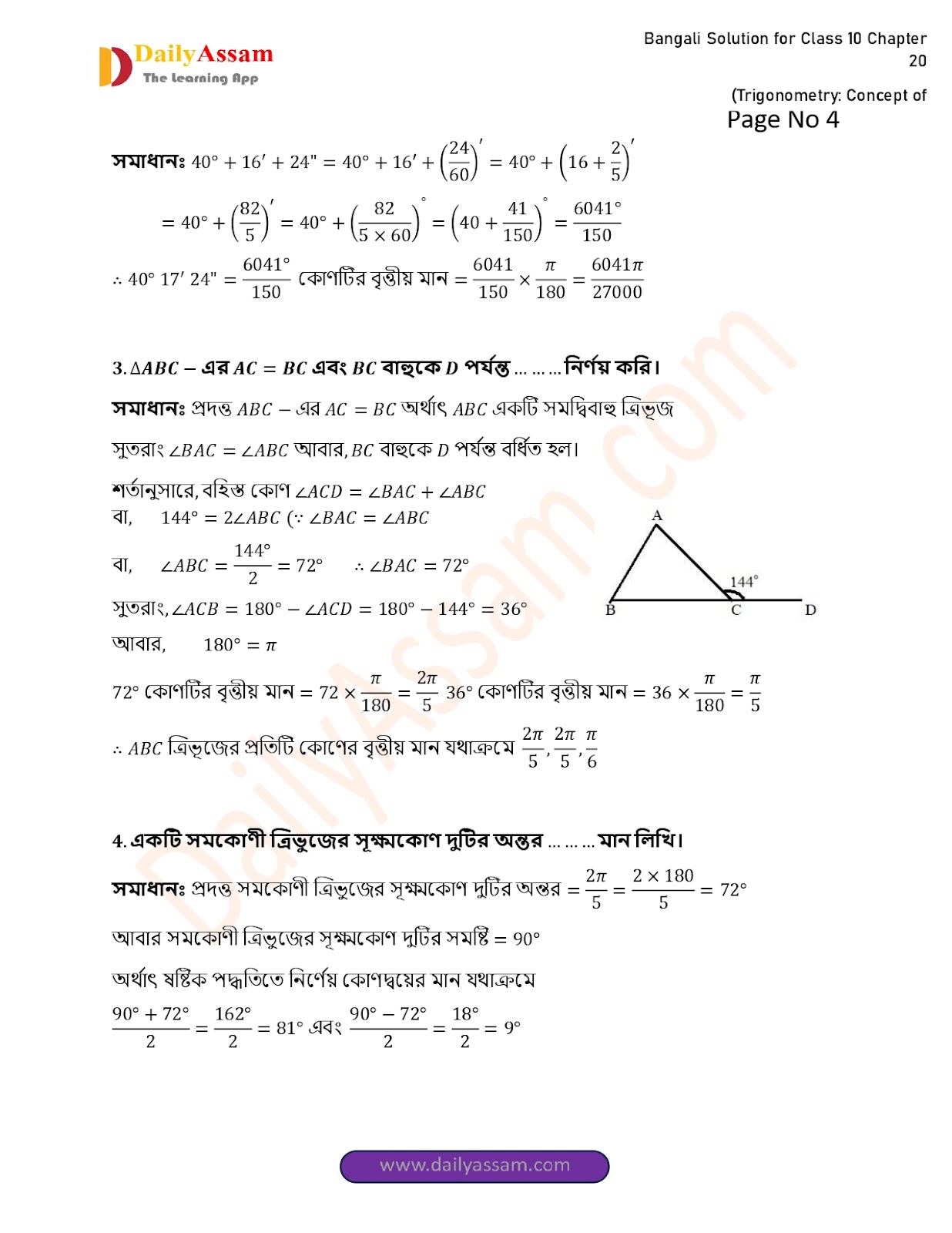 WBBSE Class 10 Mathematics Chapter 20 Solution | West Bengal Class 10 Mathematics Chapter 20 ত্রিকোণমিতি কোণ পরিমাপের ধারণা (Trigonometry: Concept of Measurement of Angle) Answer | 2025 - 2026