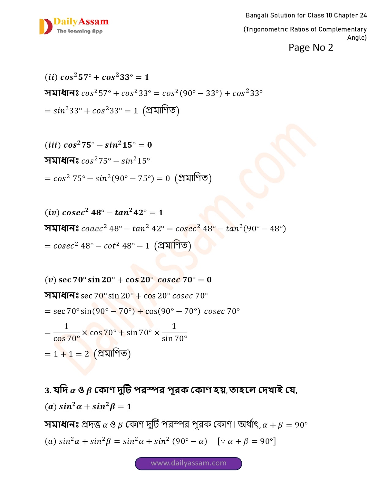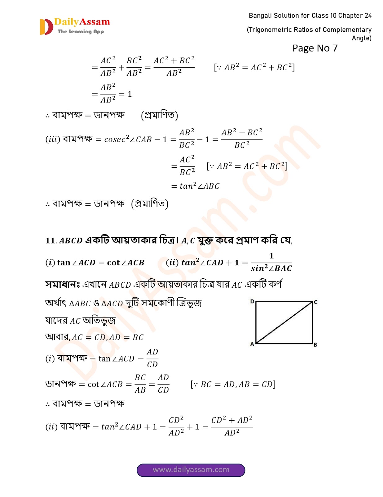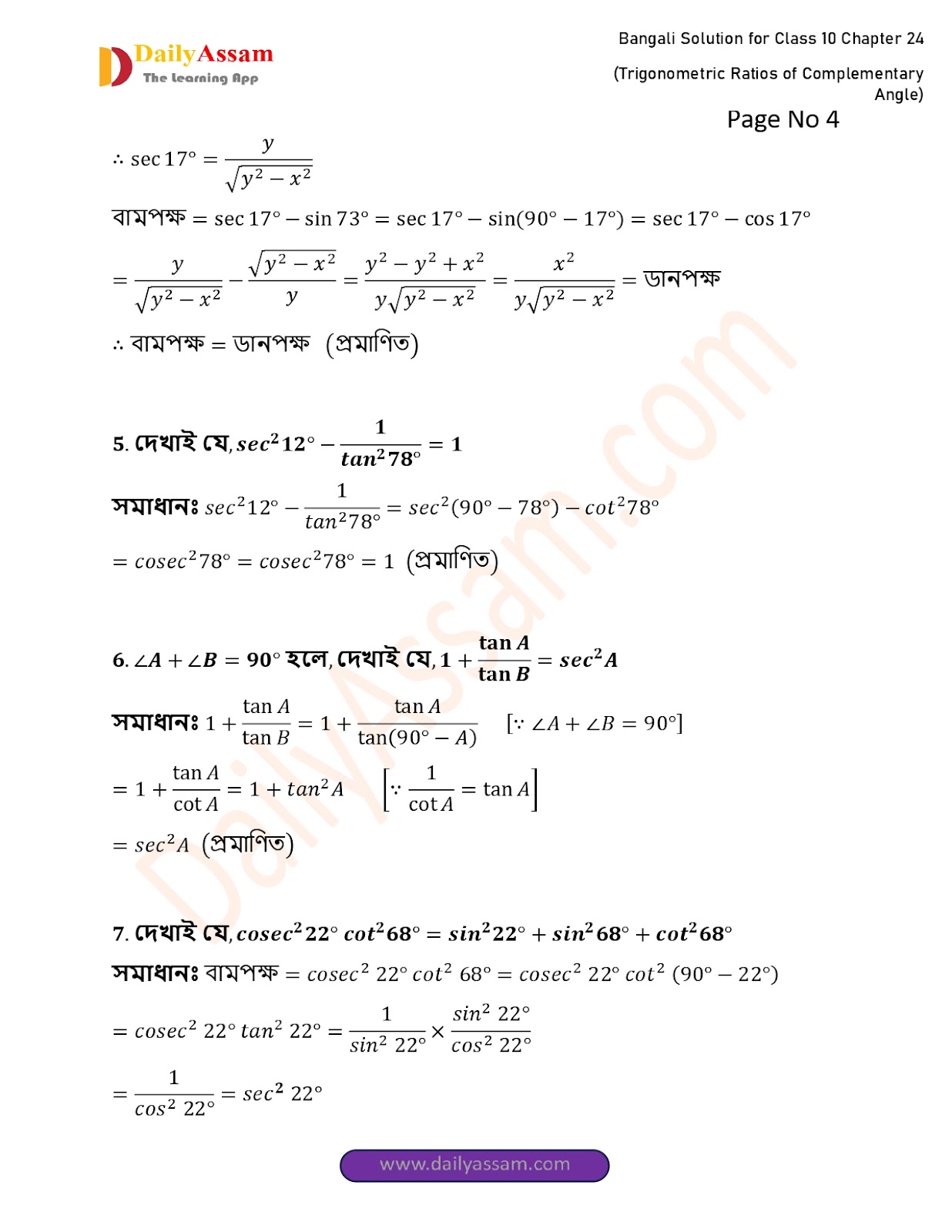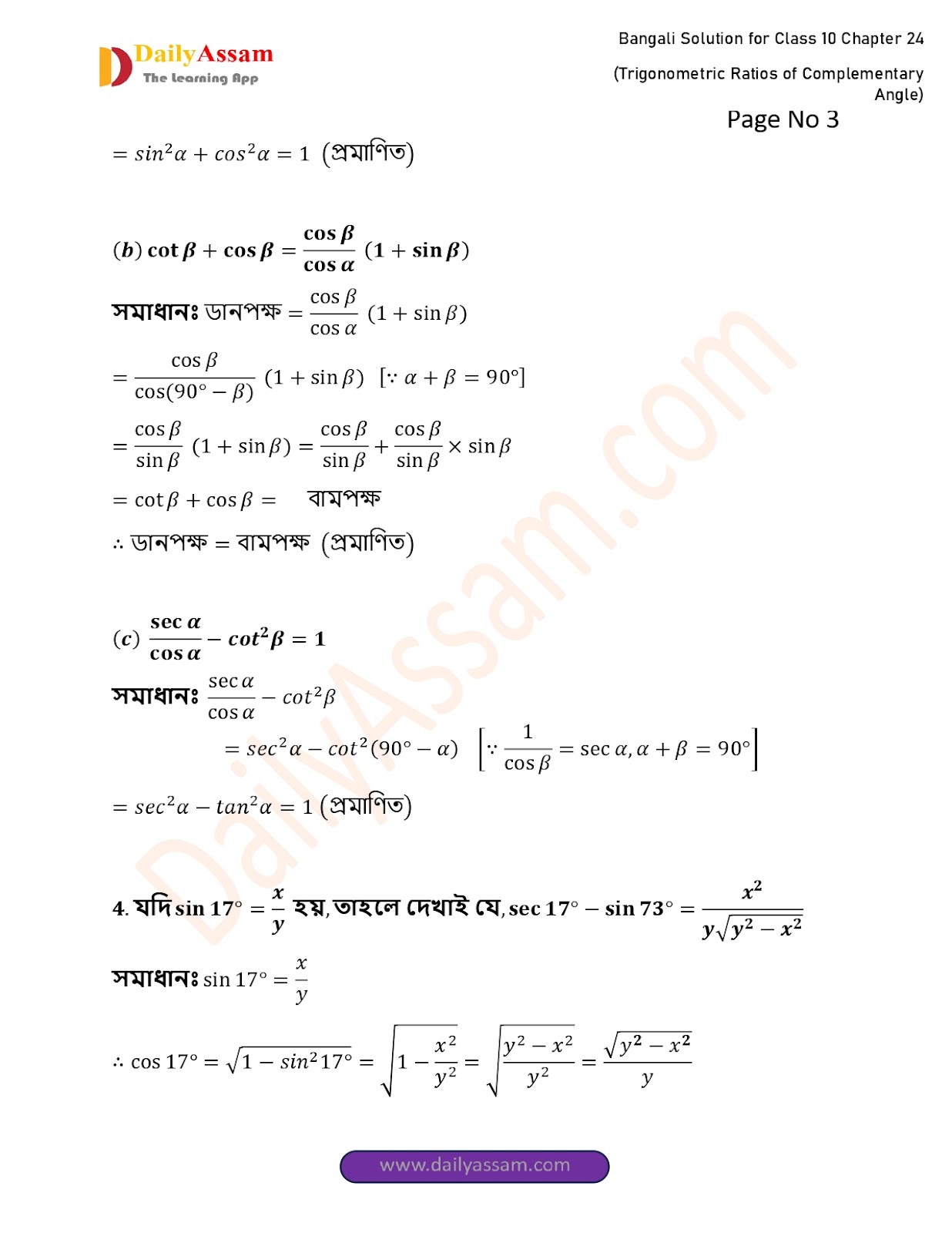WBBSE Class 10 Mathematics Chapter 24 Solution | West Bengal Class 10 Mathematics Chapter 24 পূরক কোণের ত্রিকোণমিতিক অনুপাত (Trigonometric ratios of supplementary angles) Answer | 2025 - 2026