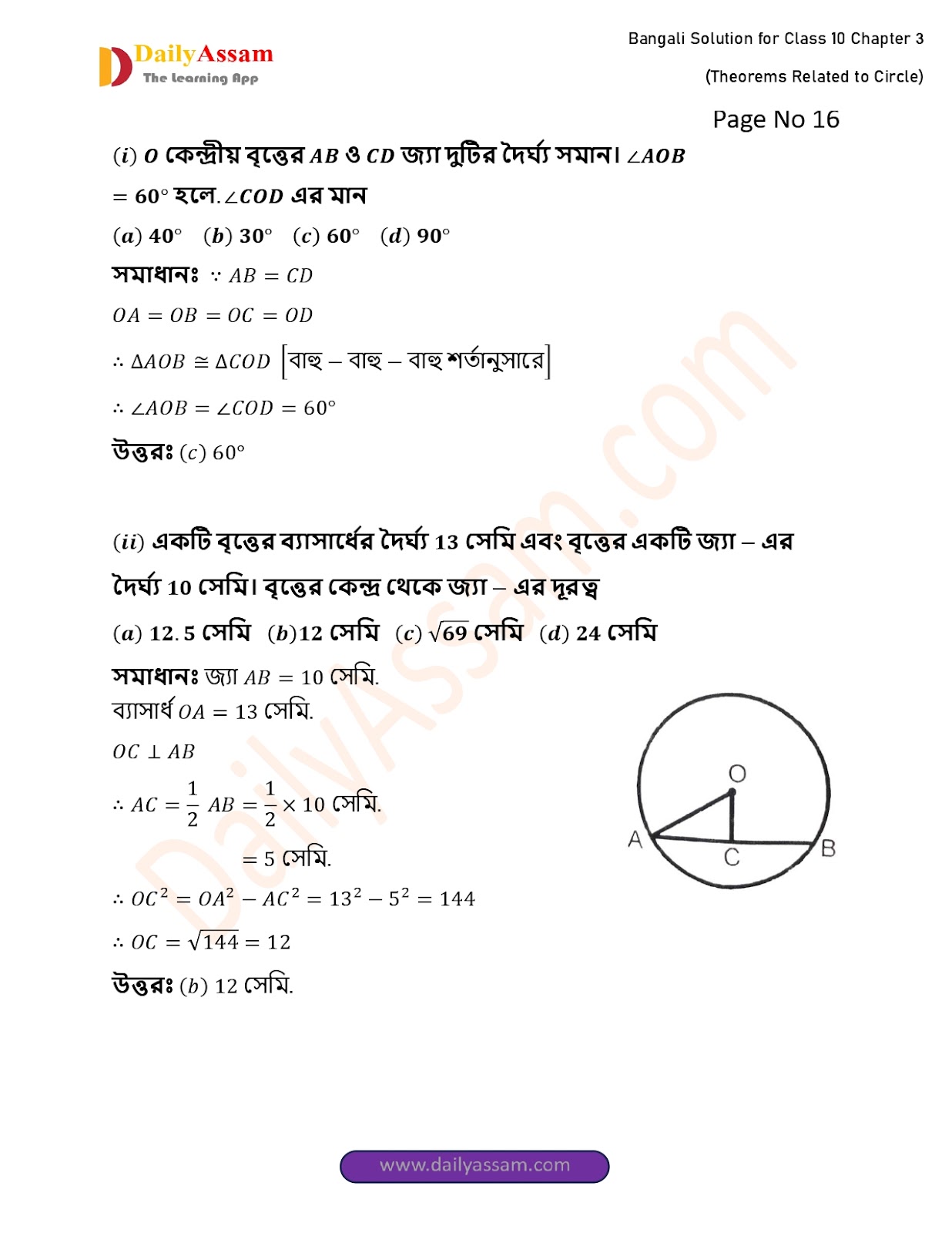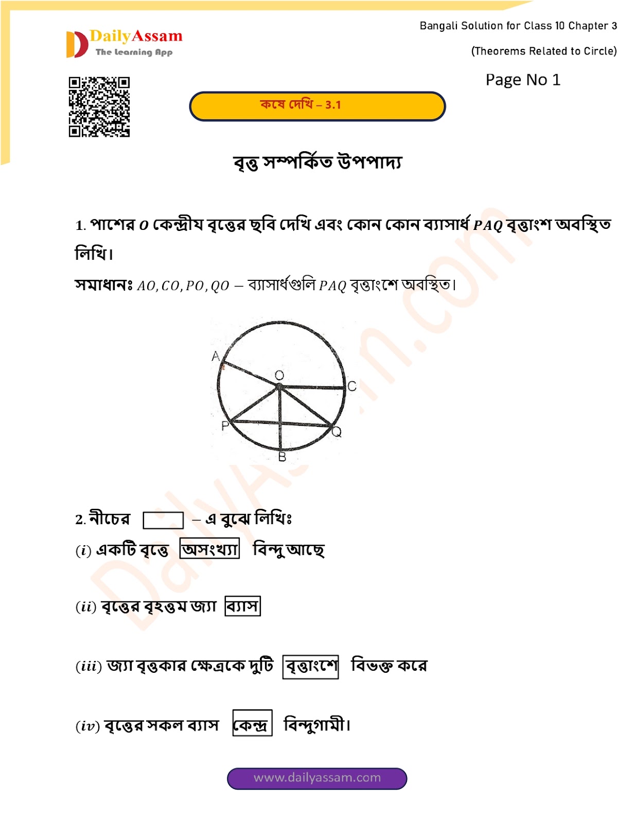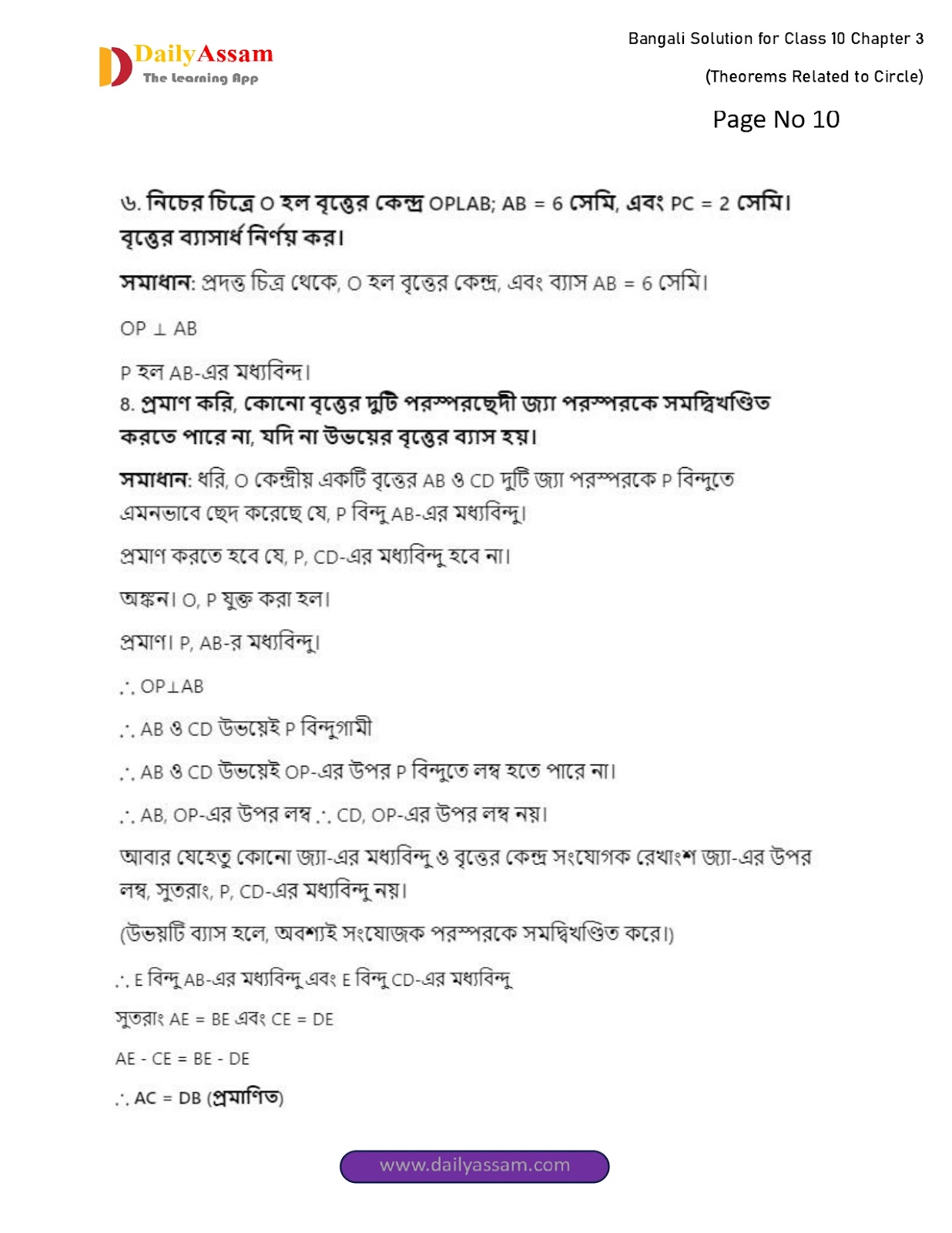 WBBSE Class 10 Mathematics Chapter 3 Solution | West Bengal Class 10 Mathematics Chapter 3 বৃত্ত সম্পর্কিত উপপাদ্য (Theorems related to circles) Answer | 2025 - 2026