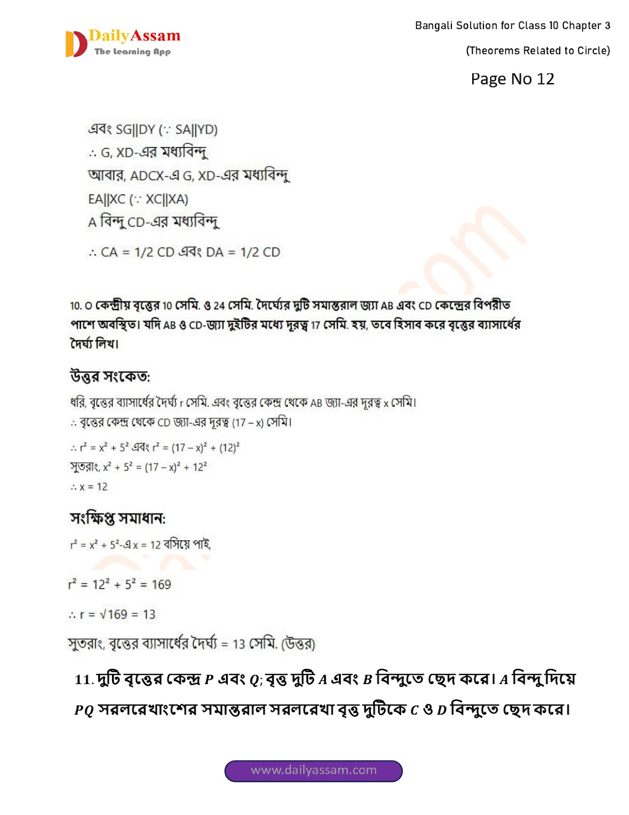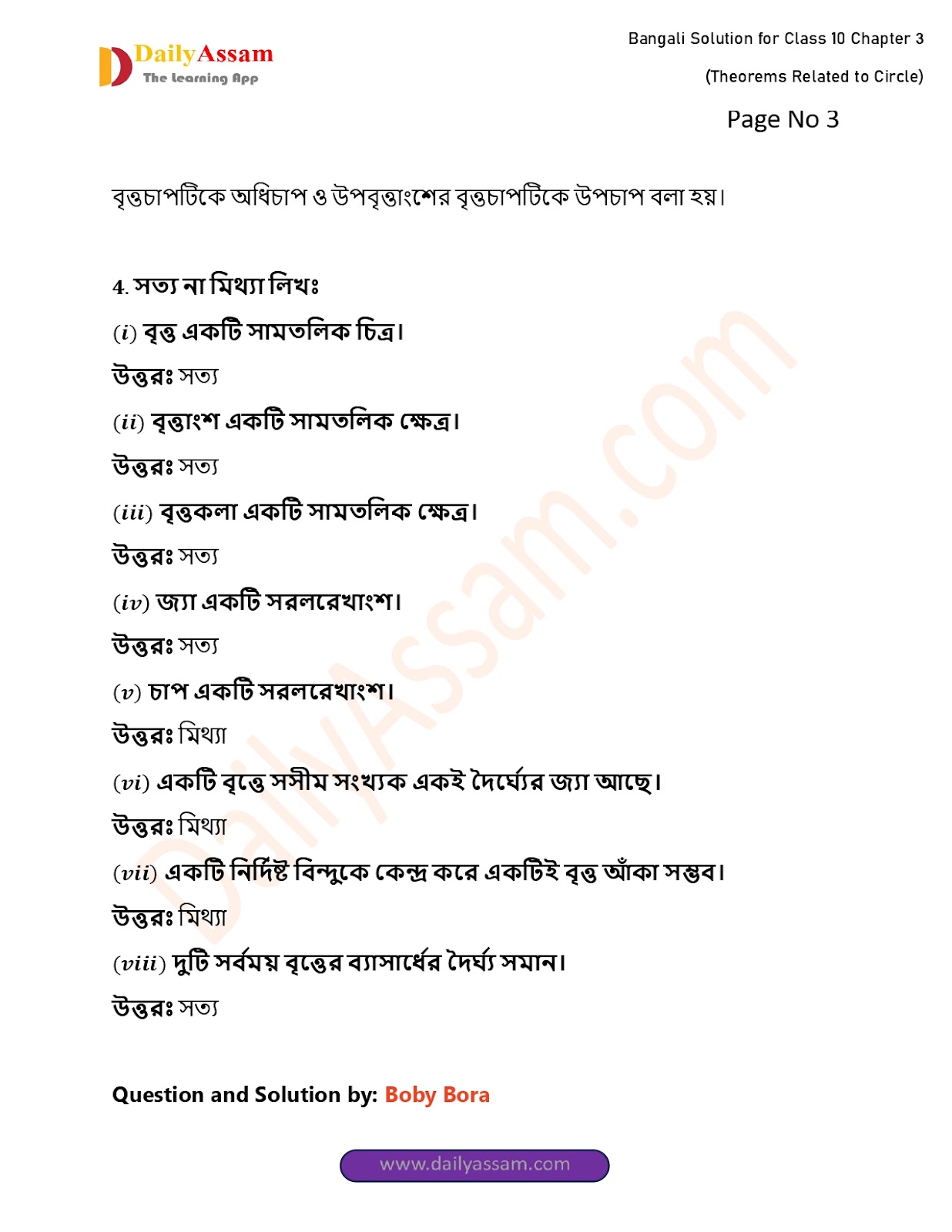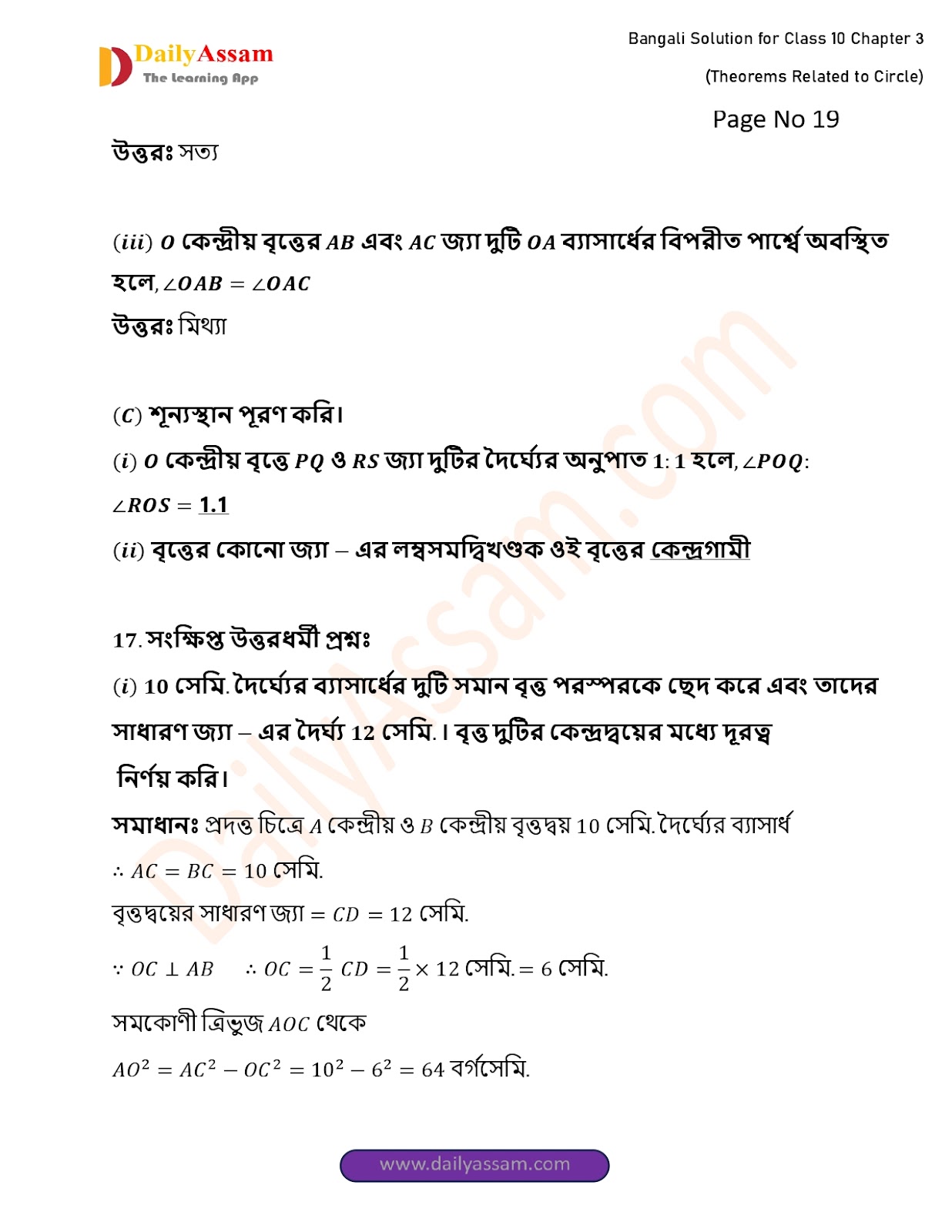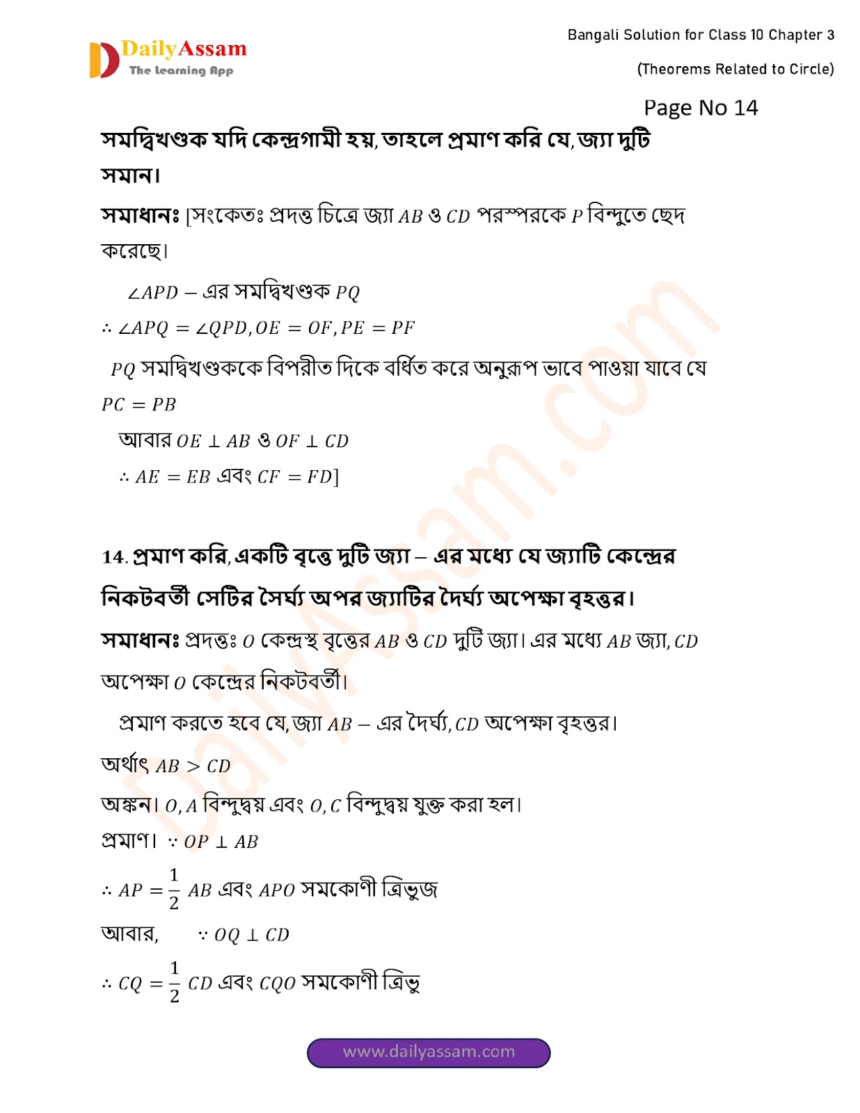WBBSE Class 10 Mathematics Chapter 3 Solution | West Bengal Class 10 Mathematics Chapter 3 বৃত্ত সম্পর্কিত উপপাদ্য (Theorems related to circles) Answer | 2025 - 2026