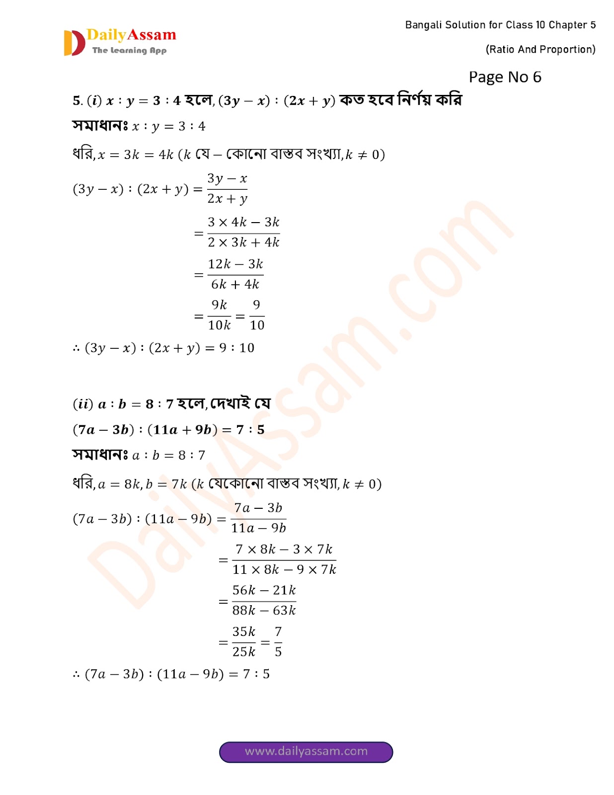 WBBSE Class 10 Mathematics Chapter 5 Solution | West Bengal Class 10 Mathematics Chapter 5 অনুপাত ও সমানুপাত (Ratio and Proportion) Answer | 2025 - 2026