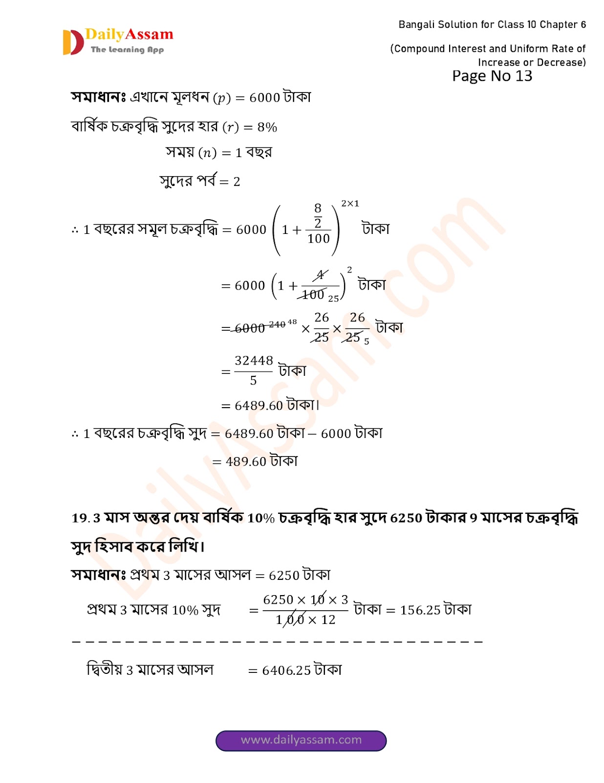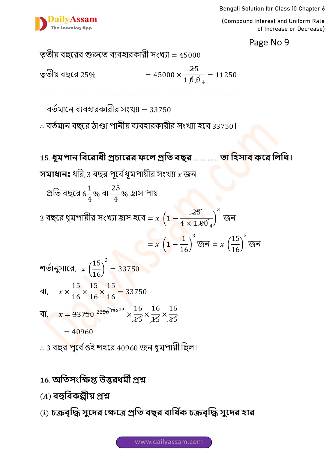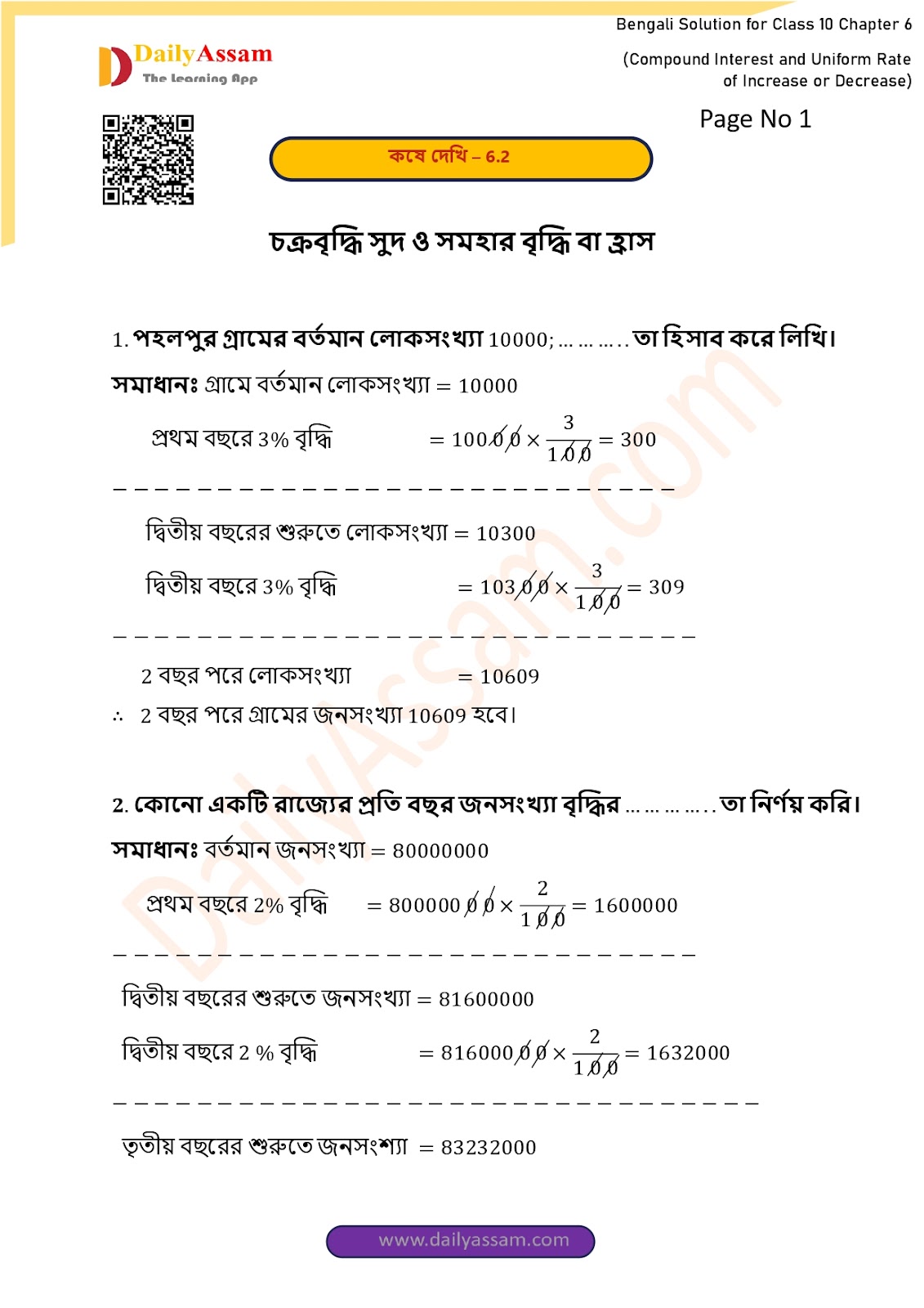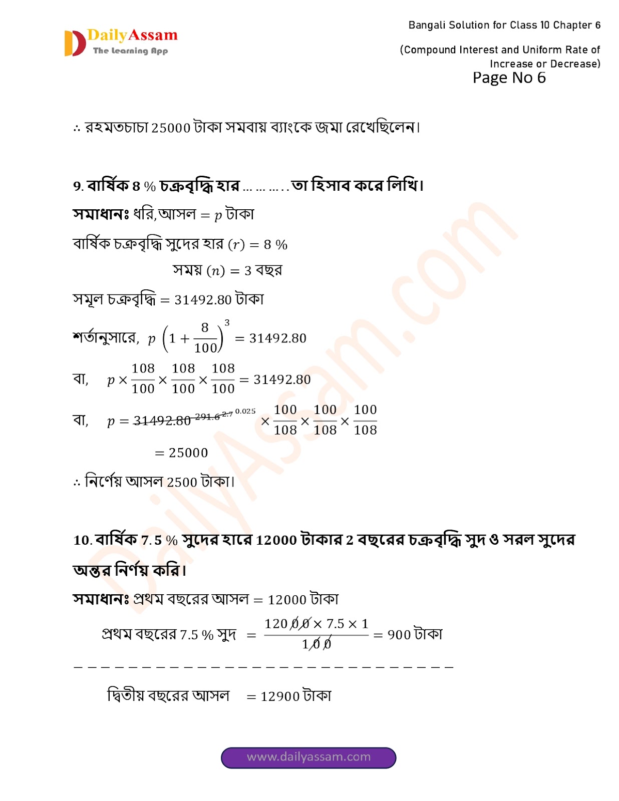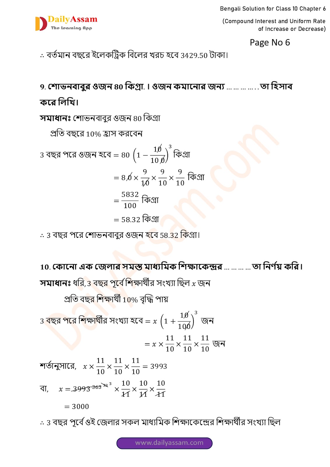 WBBSE Class 10 Mathematics Chapter 6 Solution | West Bengal Class 10 Mathematics Chapter 6 চক্রবৃদ্ধি সুদ ও সমহার বৃদ্ধি বা হ্রাস (Compound interest and the rate of increase or decrease) Answer | 2025 - 2026