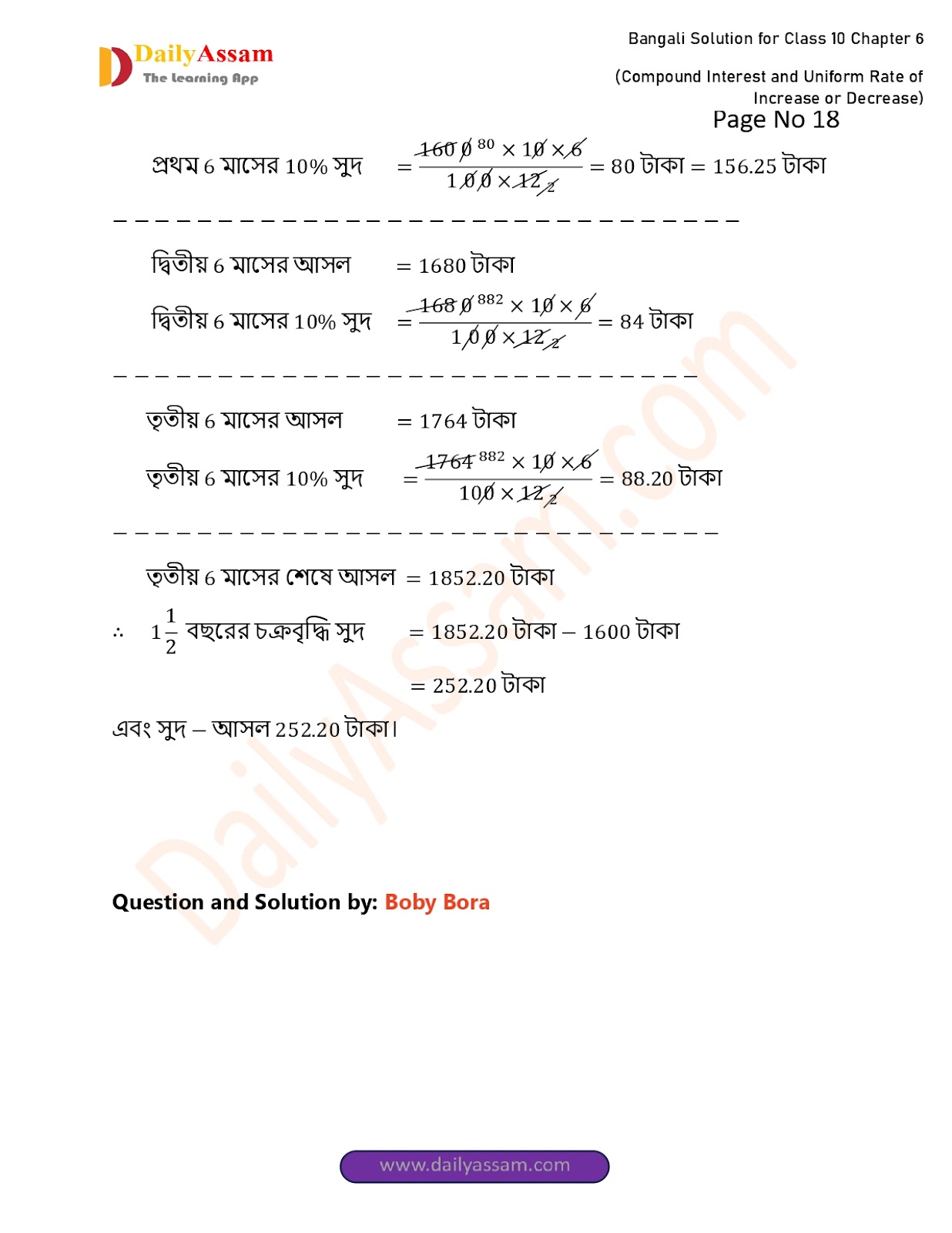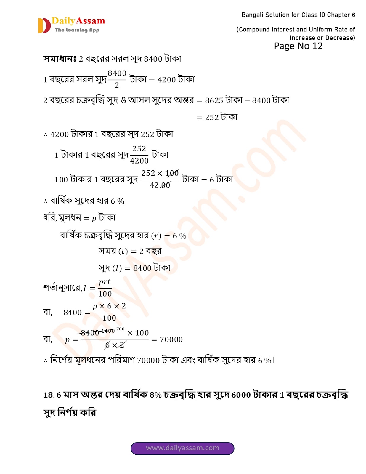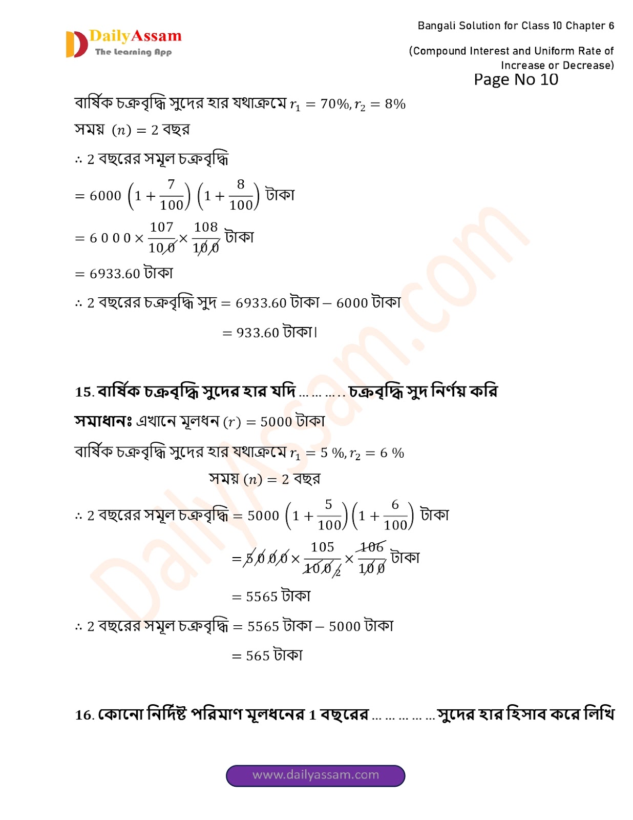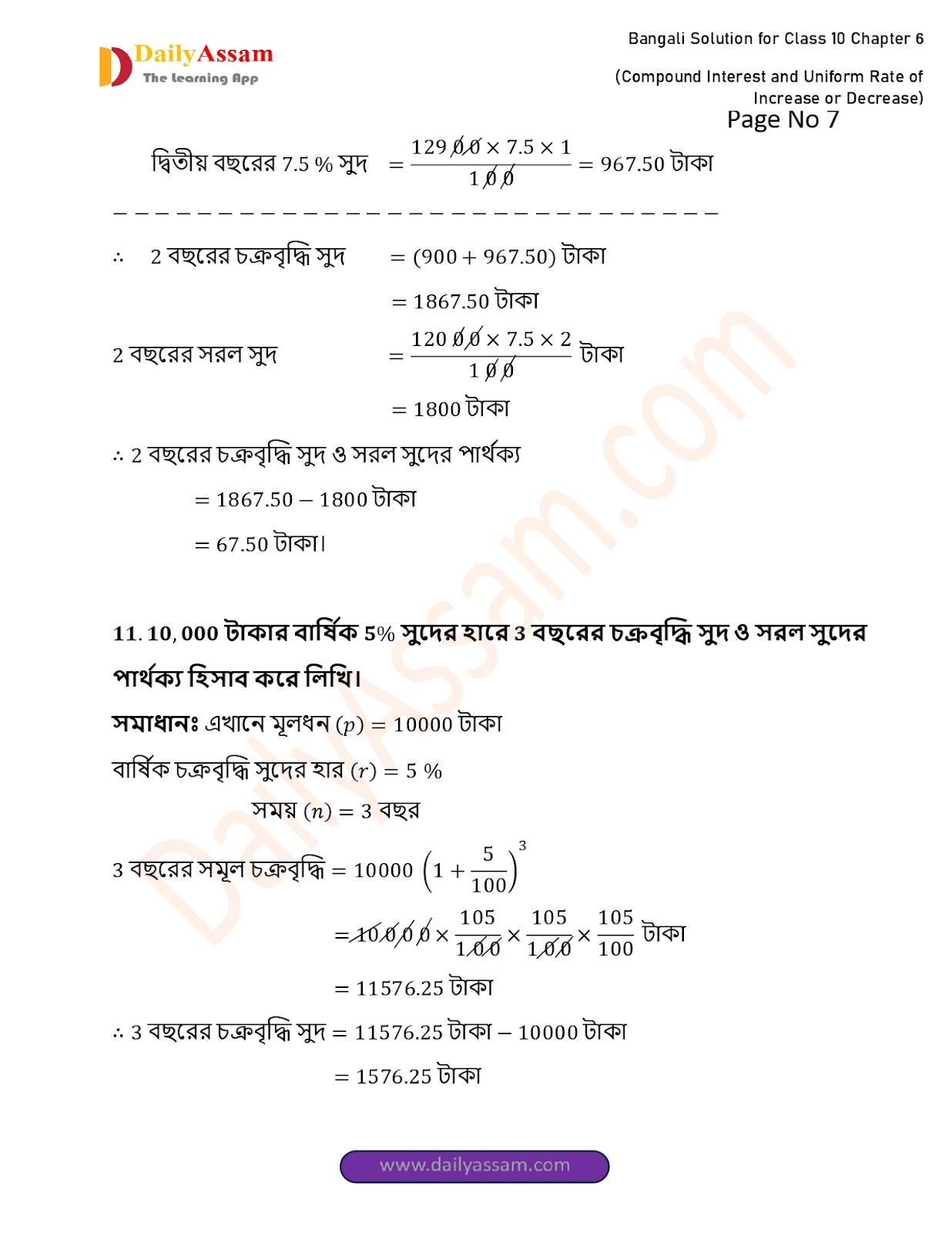 WBBSE Class 10 Mathematics Chapter 6 Solution | West Bengal Class 10 Mathematics Chapter 6 চক্রবৃদ্ধি সুদ ও সমহার বৃদ্ধি বা হ্রাস (Compound interest and the rate of increase or decrease) Answer | 2025 - 2026
