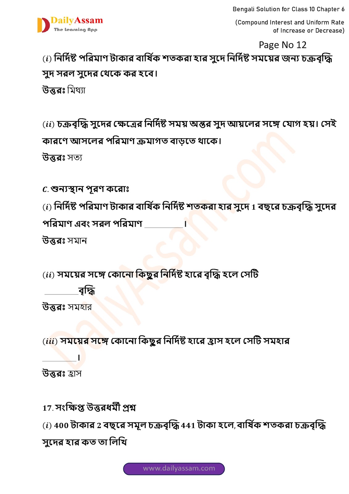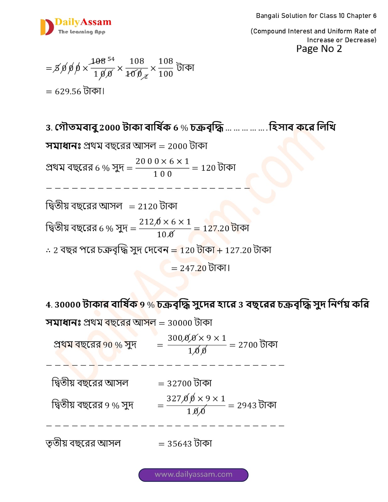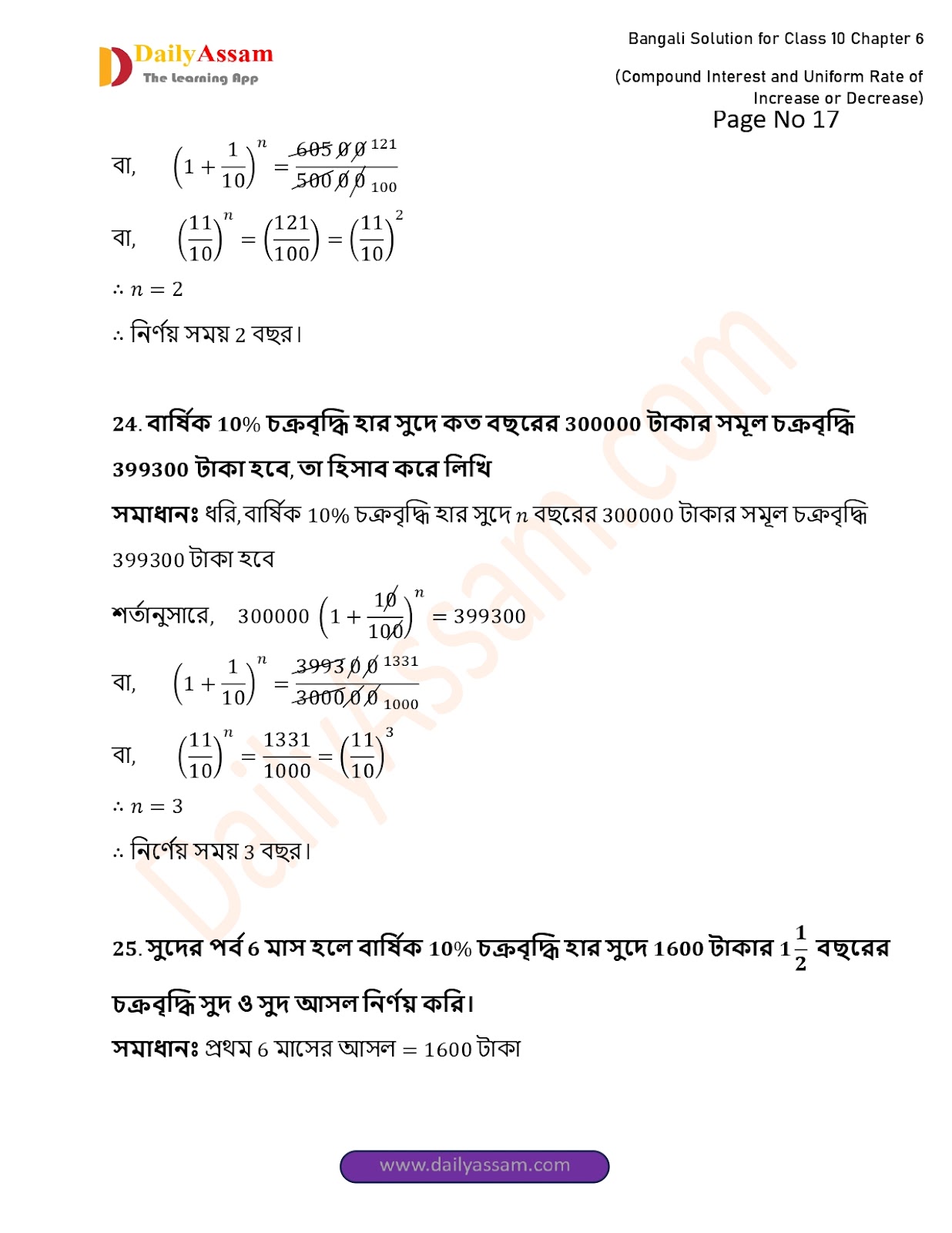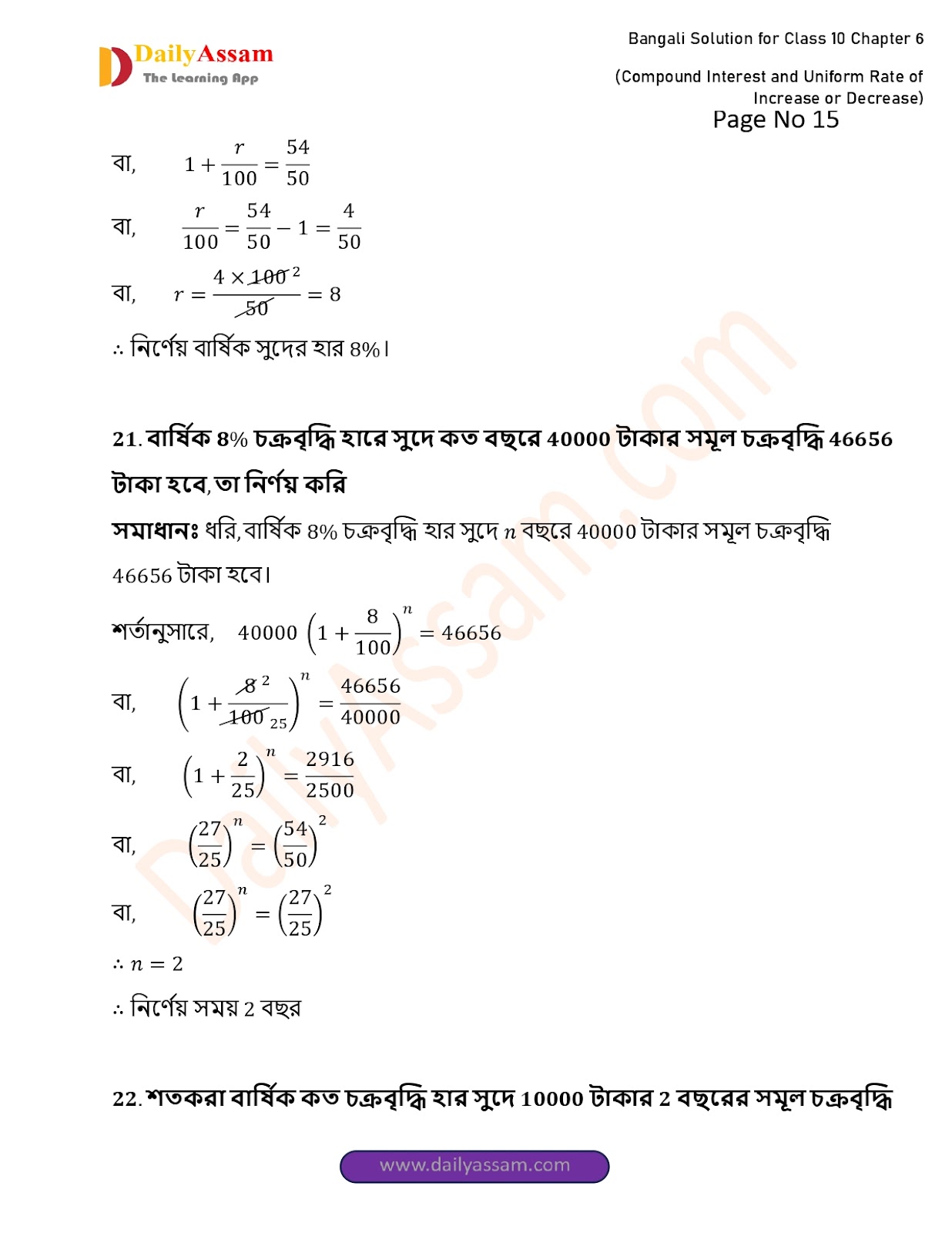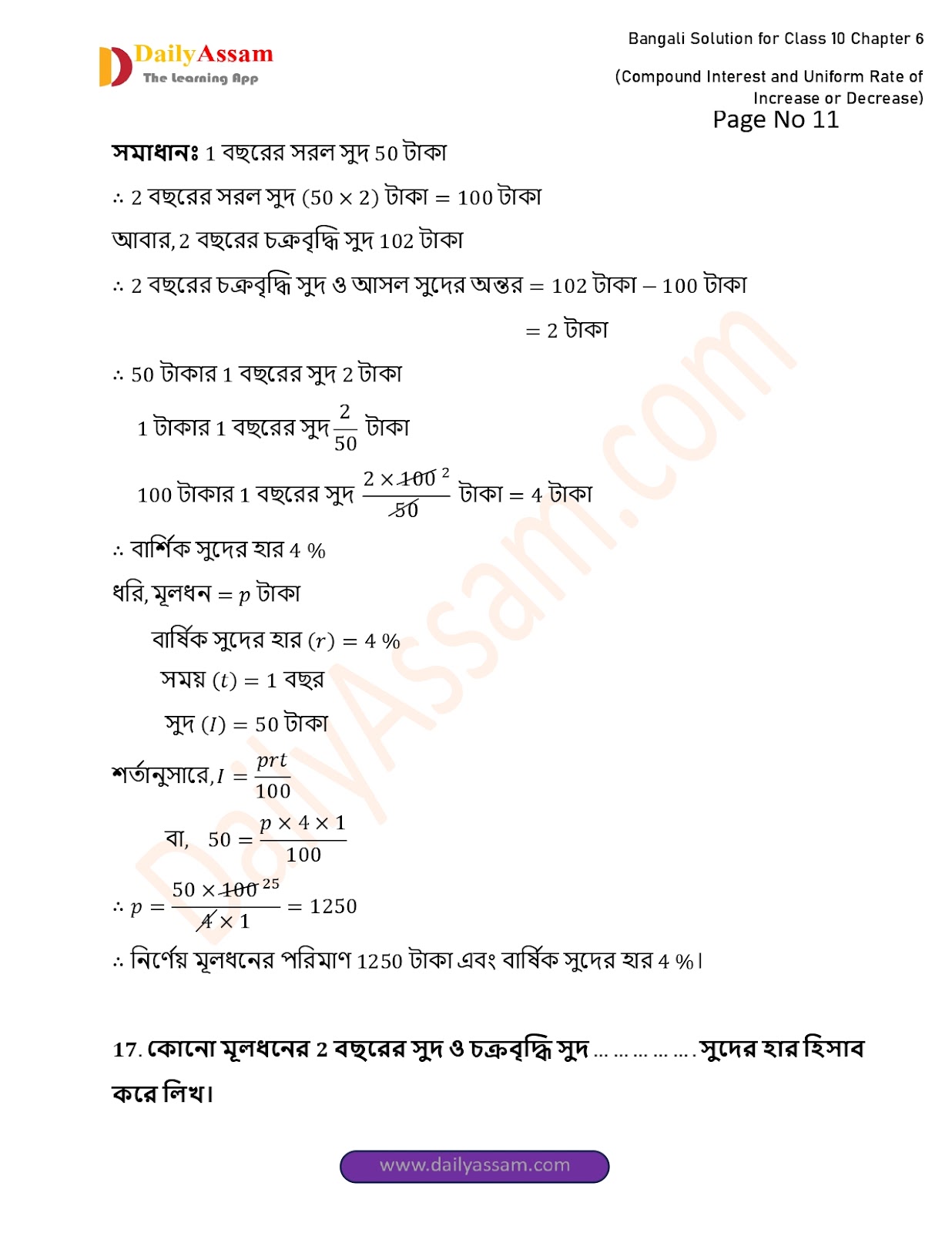 WBBSE Class 10 Mathematics Chapter 6 Solution | West Bengal Class 10 Mathematics Chapter 6 চক্রবৃদ্ধি সুদ ও সমহার বৃদ্ধি বা হ্রাস (Compound interest and the rate of increase or decrease) Answer | 2025 - 2026