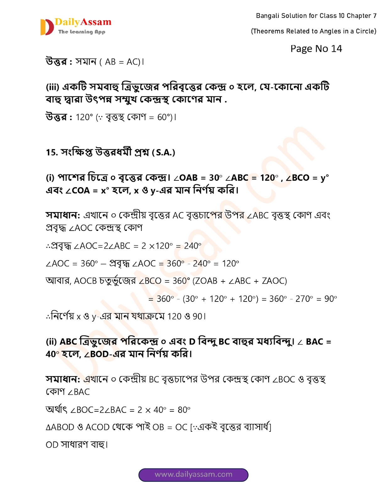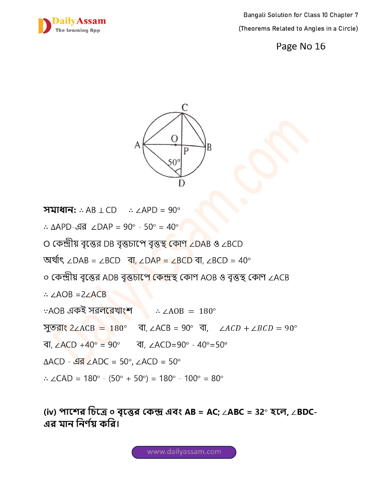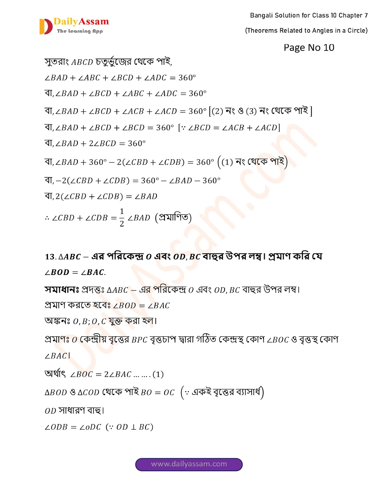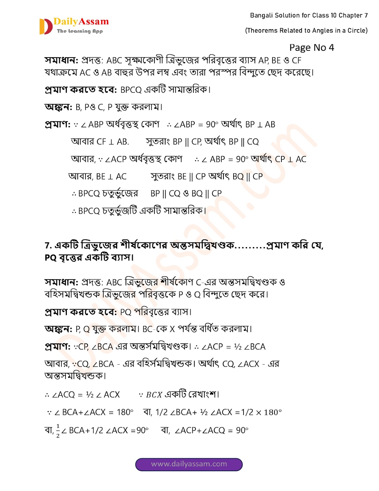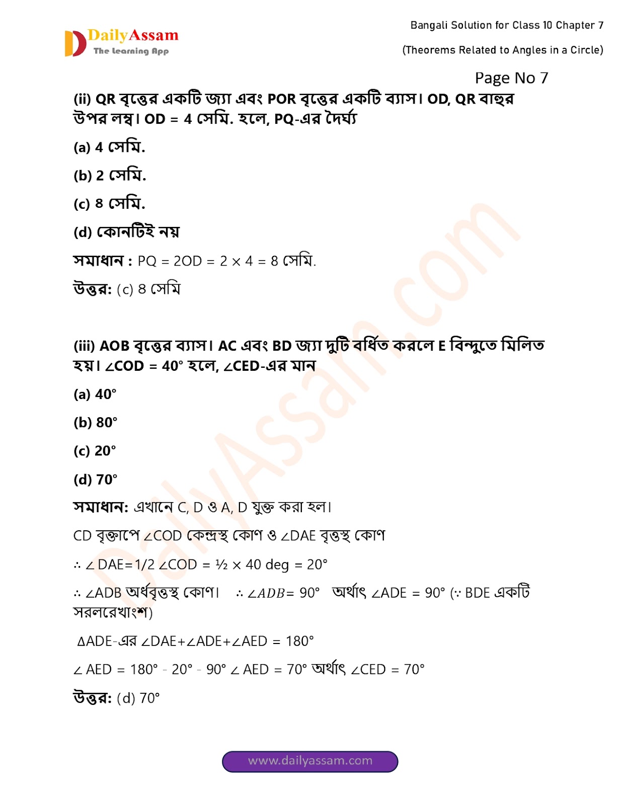 WBBSE Class 10 Mathematics Chapter 7 Solution | West Bengal Class 10 Mathematics Chapter 7 বৃত্তস্থ কোণ সম্পর্কিত উপপাদ্য (Theorems related to angles in a circle) Answer | 2025 - 2026