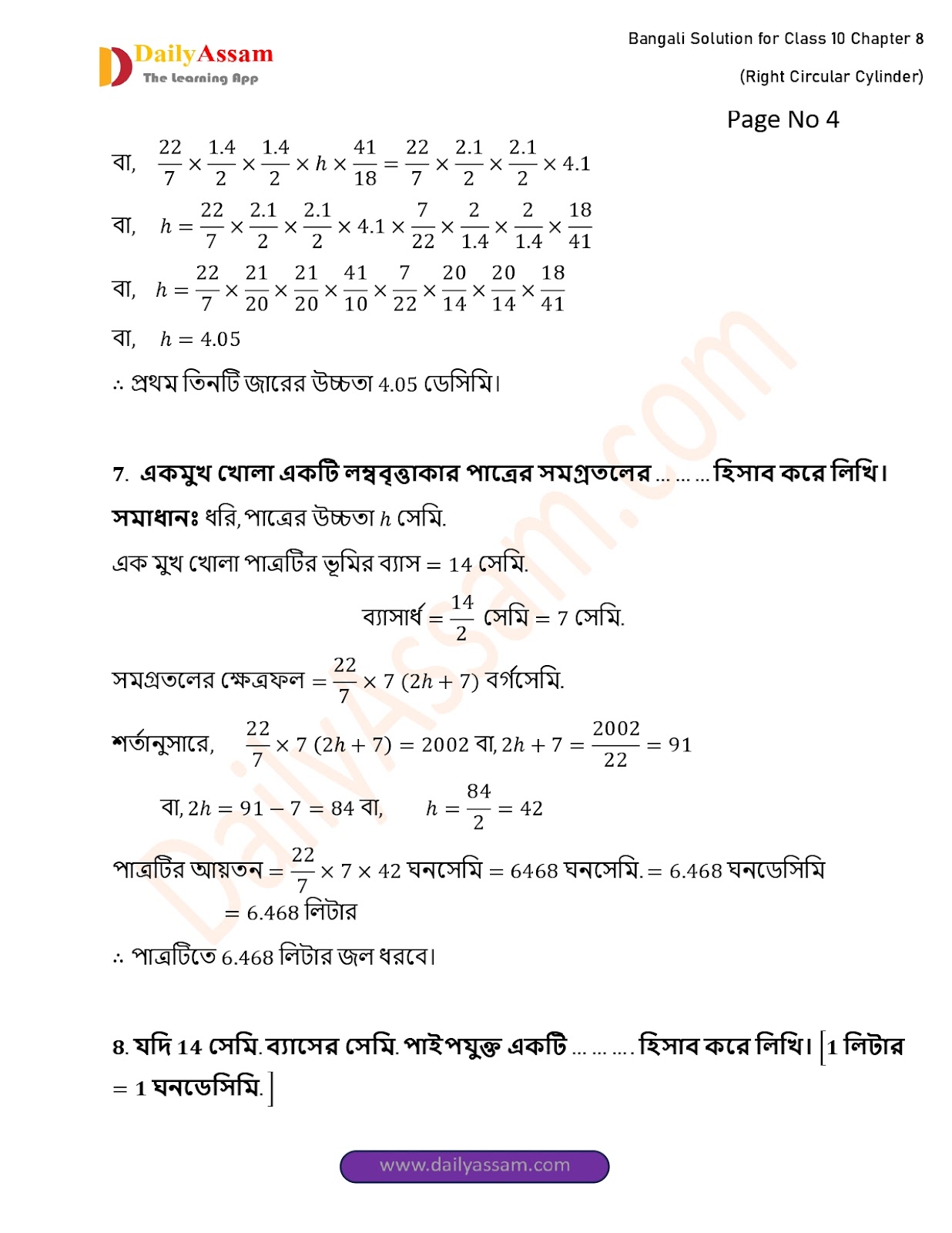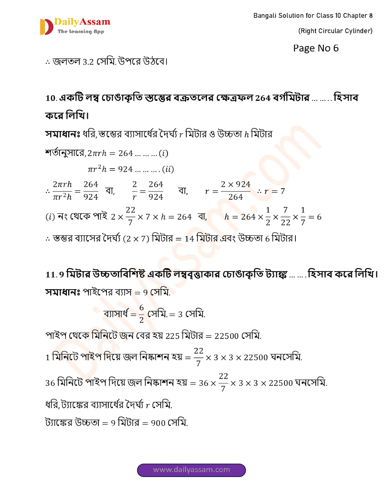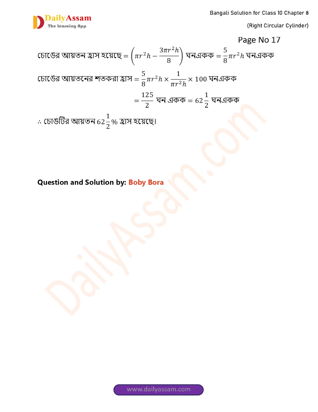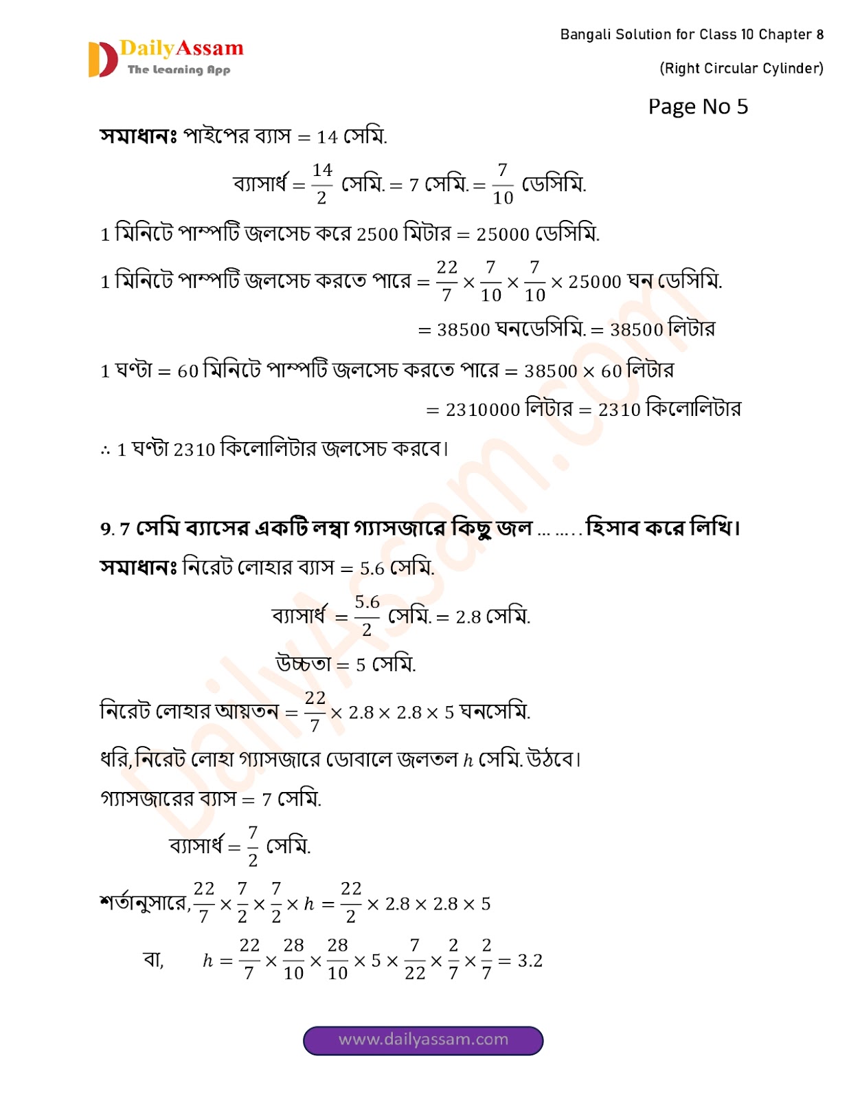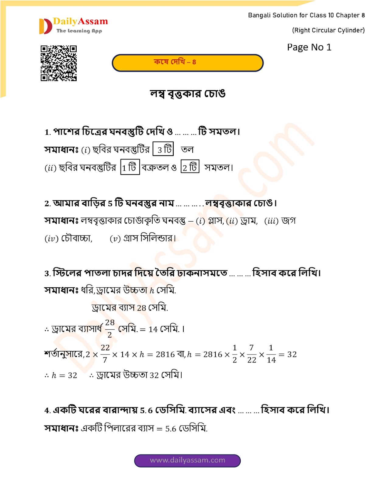 WBBSE Class 10 Mathematics Chapter 8 Solution | West Bengal Class 10 Mathematics Chapter 8 লম্ব বৃত্তাকার চোঙ (Right Circular Cylinder) Answer | 2025 - 2026