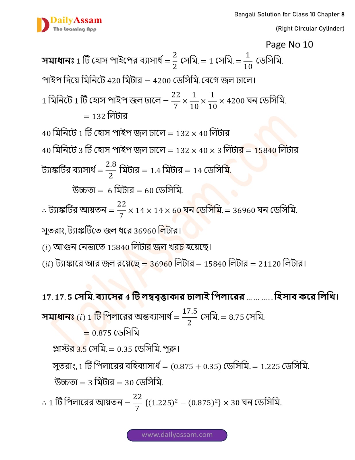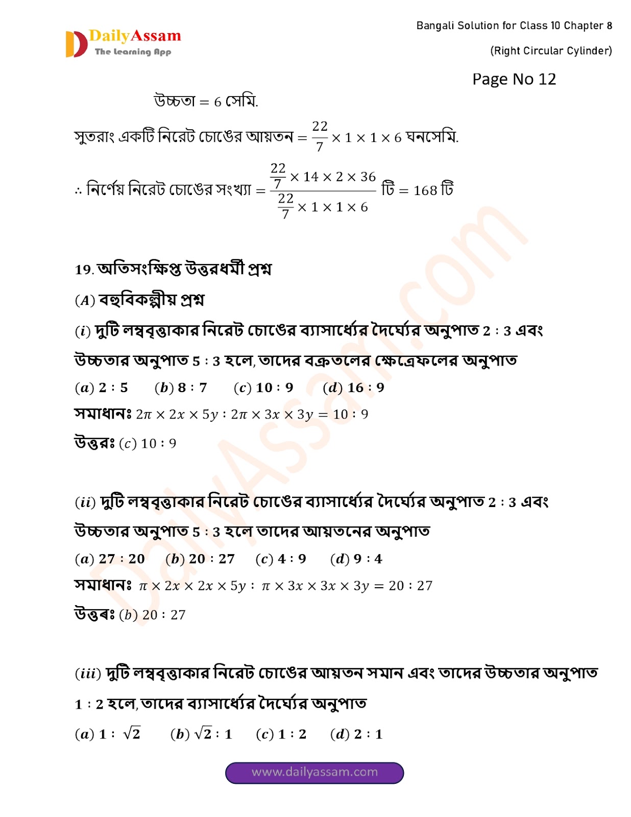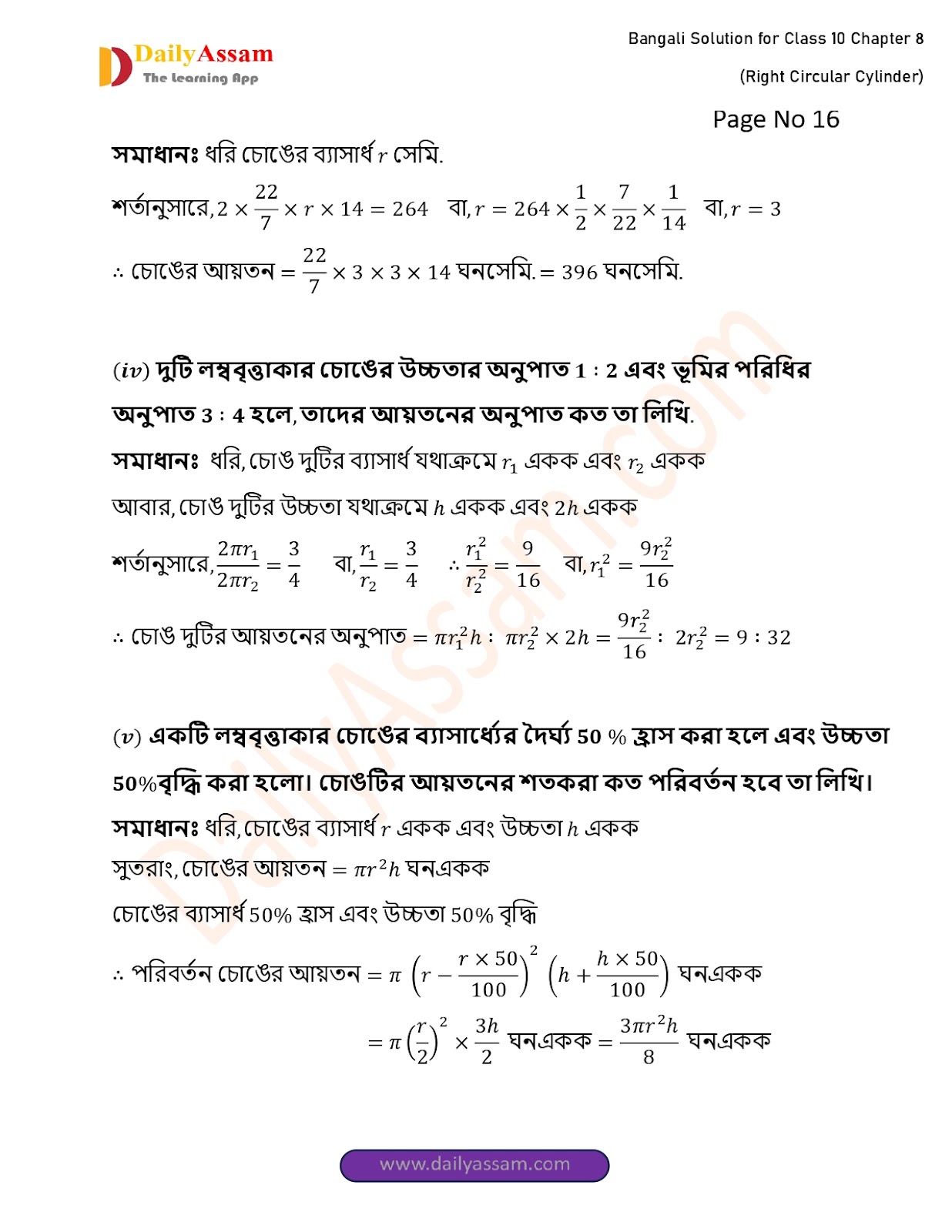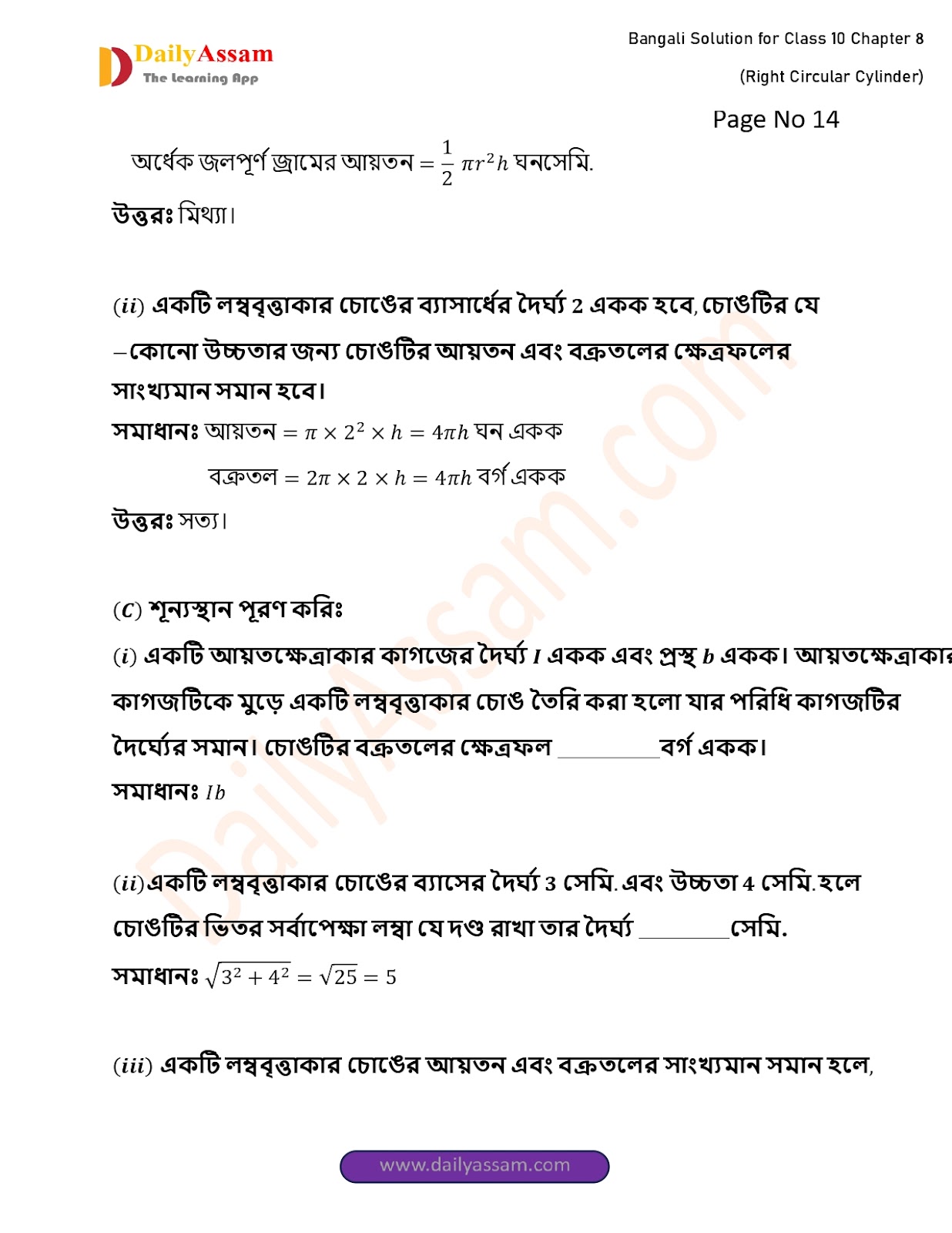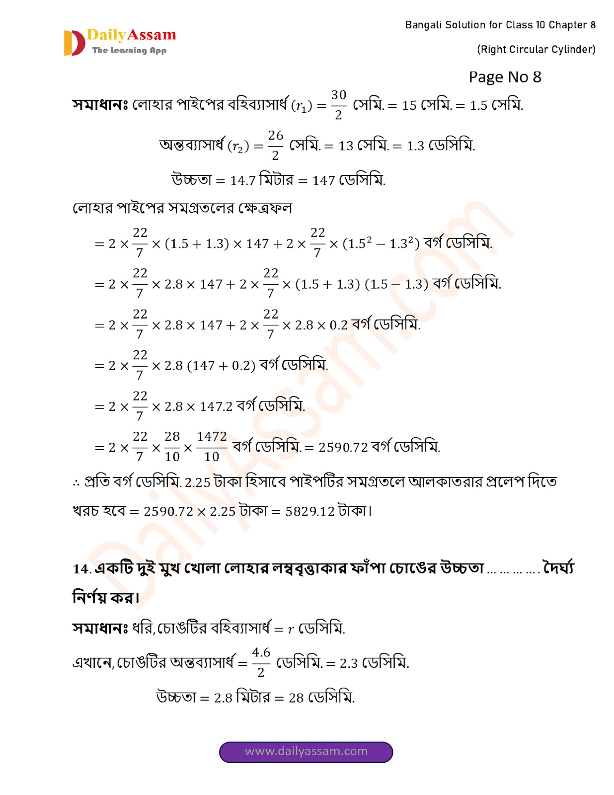 WBBSE Class 10 Mathematics Chapter 8 Solution | West Bengal Class 10 Mathematics Chapter 8 লম্ব বৃত্তাকার চোঙ (Right Circular Cylinder) Answer | 2025 - 2026
