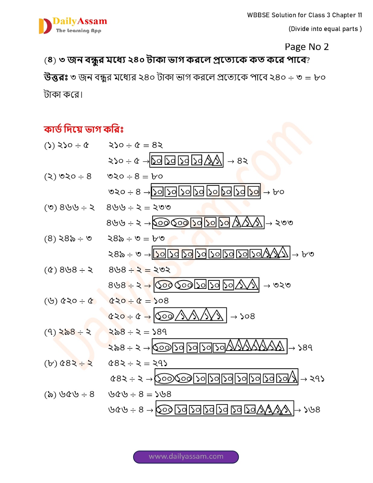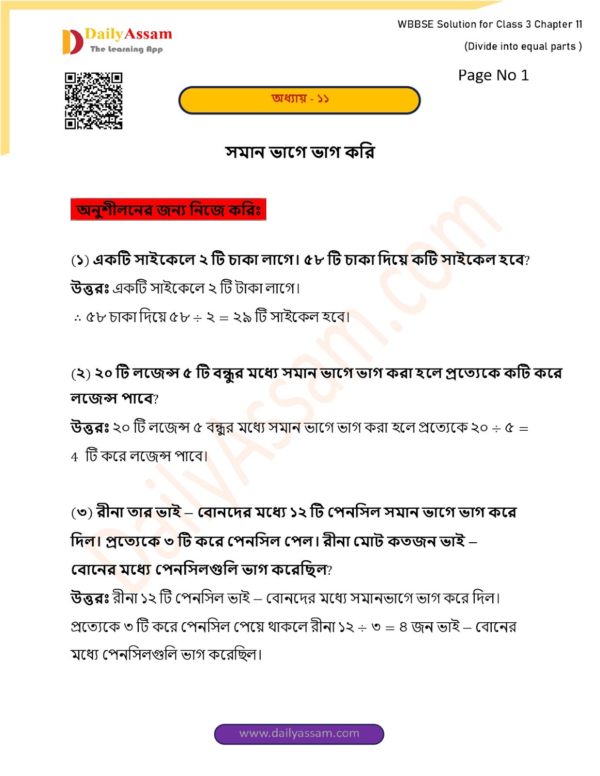 WBBSE Class 3 Mathematics Chapter 11 Solution I West Bengal Class 3 Mathematics Chapter 11 সমানভাগে ভাগ করি (I divided it equally) Answer | 2025 - 2026