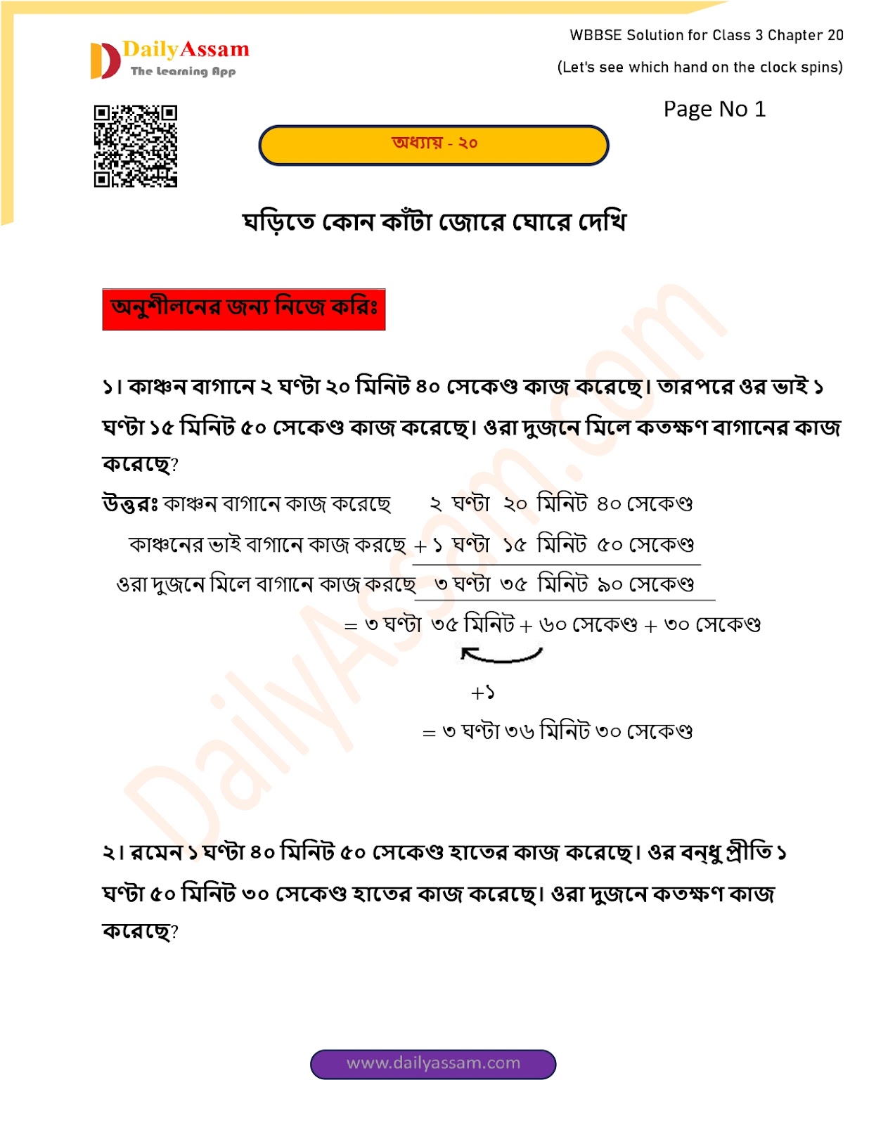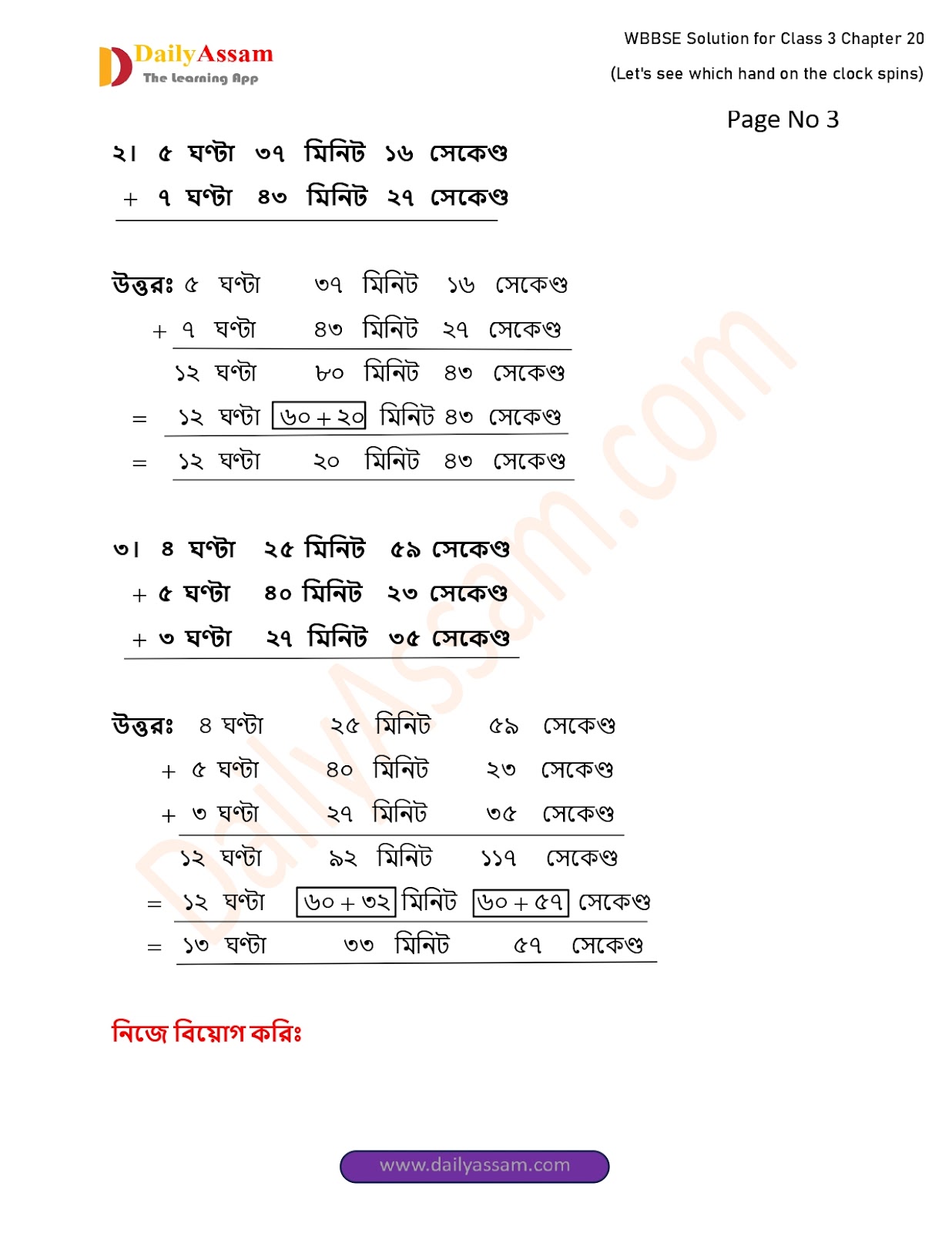 WBBSE Class 3 Mathematics Chapter 20 Solution I West Bengal Class 3 Mathematics Chapter 20 ঘড়িতে কোন কাঁটা জোরে ঘোরে দেখি (I see no thorns on the clock) Answer | 2025 - 2026