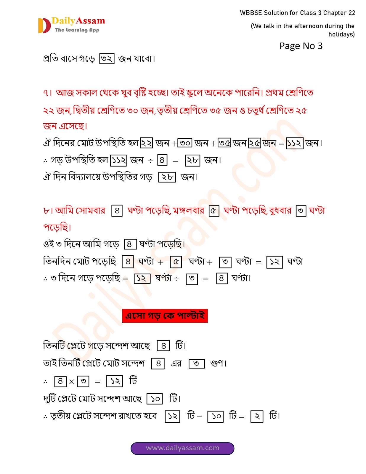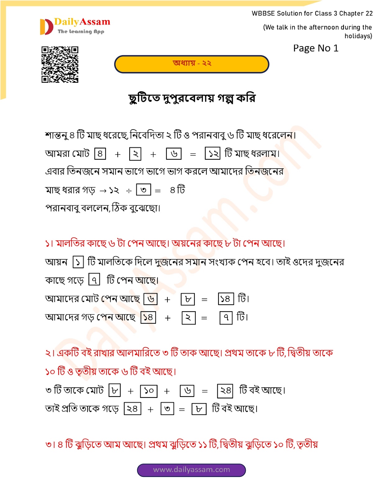 WBBSE Class 3 Mathematics Chapter 22 Solution I West Bengal Class 3 Mathematics Chapter 22 ছুটিতে দুপুরবেলায় গল্প করি (We talk in the afternoon on vacation) Answer | 2025 - 2026