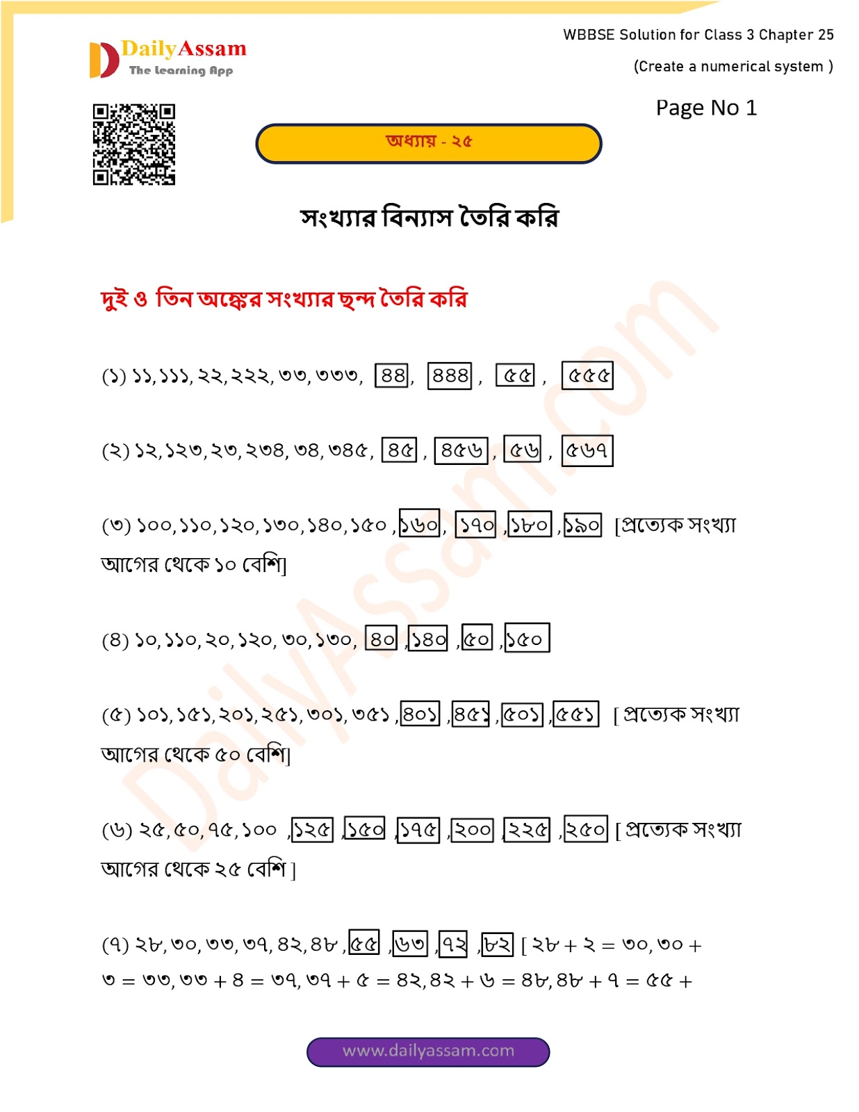 WBBSE Class 3 Mathematics Chapter 25 Solution I West Bengal Class 3 Mathematics Chapter 25 সংখ্যার বিন্যাস তৈরি করি (Create the number format) Answer | 2025 - 2026