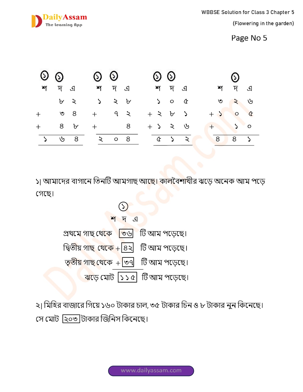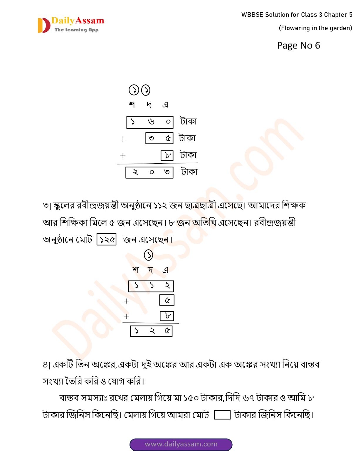 WBBSE Class 3 Mathematics Chapter 5 Solution I West Bengal Class 3 Mathematics Chapter 5 বাগানে ফুল তুলি (The garden picks flowers) Answer | 2025 - 2026