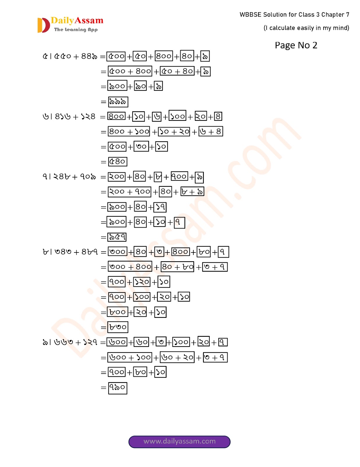 WBBSE Class 3 Mathematics Chapter 7 Solution I West Bengal Class 3 Mathematics Chapter 7 মনে মনে সহজে হিসাব করি (I calculate easily in my mind) Answer | 2025 - 2026