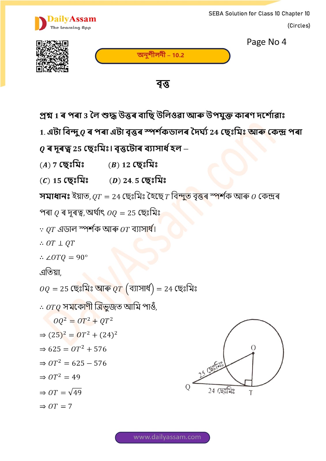 বৃত্ত | Circle | Lesson 10 | Exercise 10.2 | Class 10 Mathematics Solution Assamese Medium | Class 10 Maths Solution Assam | দশম শ্ৰেণীৰ গণিতৰ প্ৰশ্ন উত্তৰ |