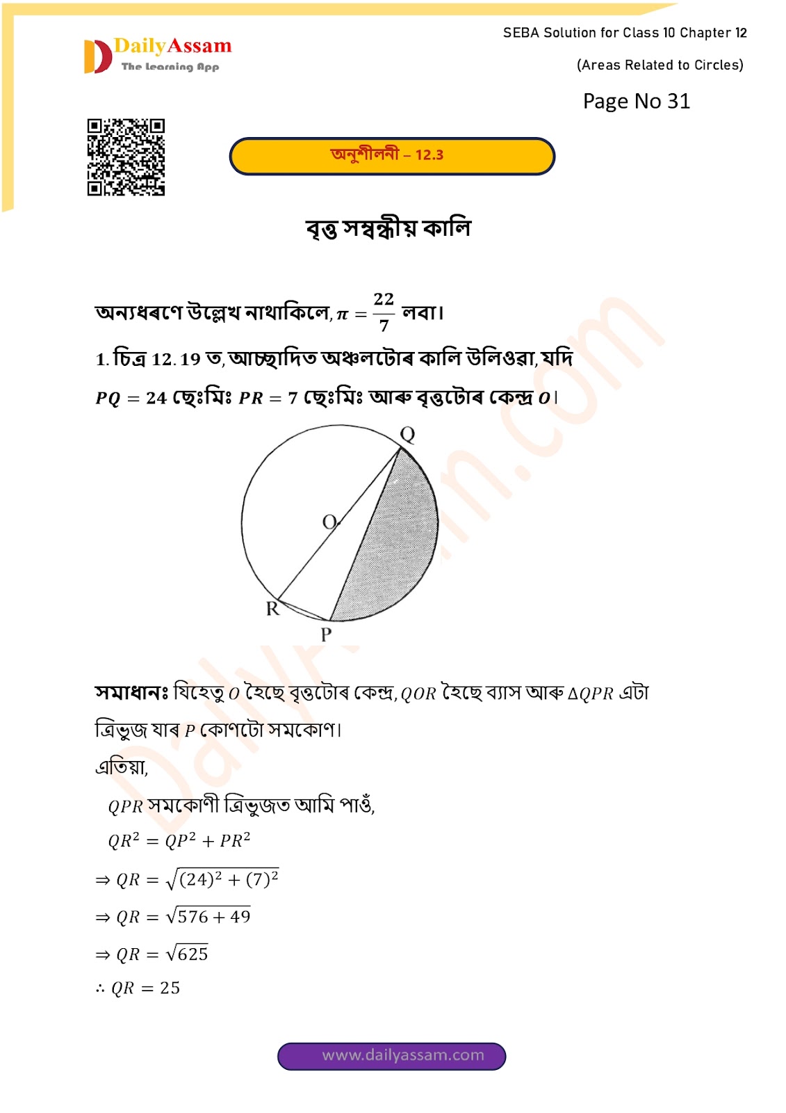 বৃত্ত সমন্ধীয় কালি | Areas Related to Circles | Lesson 12 | Exercise 12.3 | Class 10 Mathematics Solution Assamese Medium | Class 10 Maths Solution Assam | দশম শ্ৰেণীৰ গণিতৰ প্ৰশ্ন উত্তৰ |