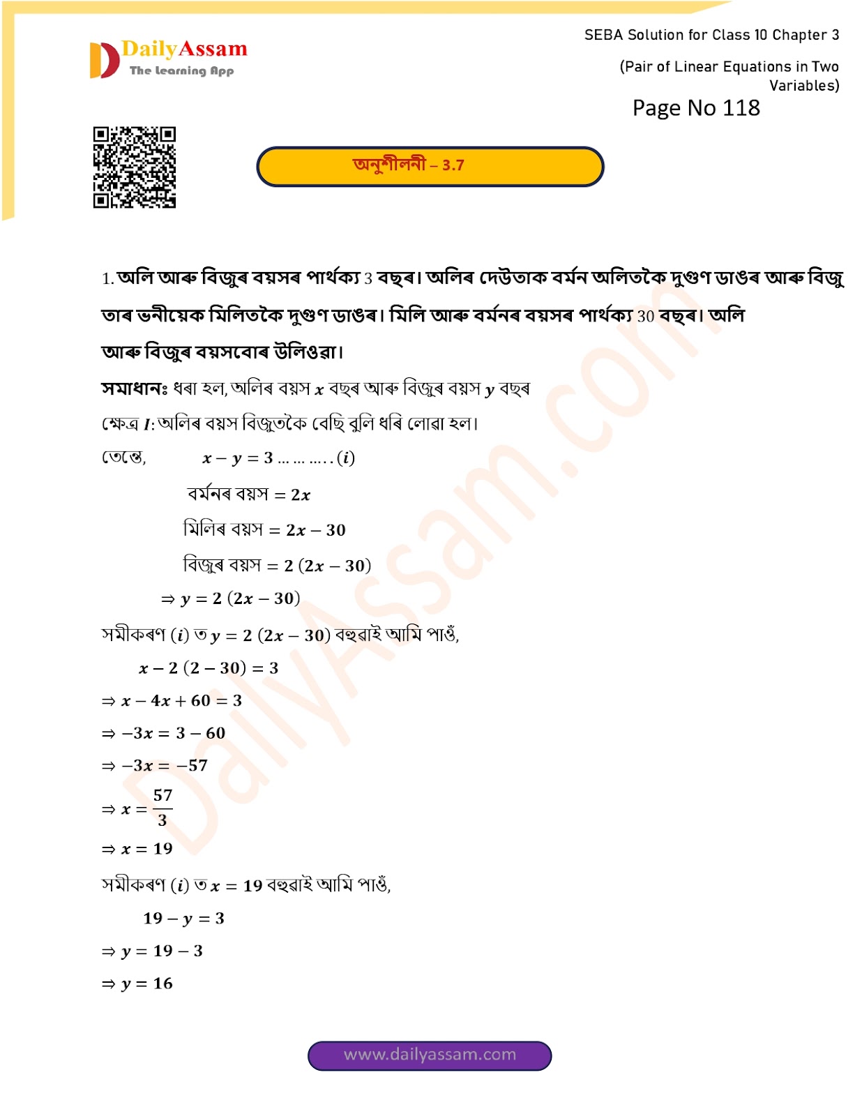 দুটা চলকত ৰৈখিক সমীকৰণৰ যোৰ | Pair of Linear Equation in two Variables | Lesson 3 | Exercise 3.7 | Class 10 Mathematics Solution Assamese Medium | Class 10 Maths Solution Assam | দশম শ্ৰেণীৰ গণিতৰ প্ৰশ্ন উত্তৰ |