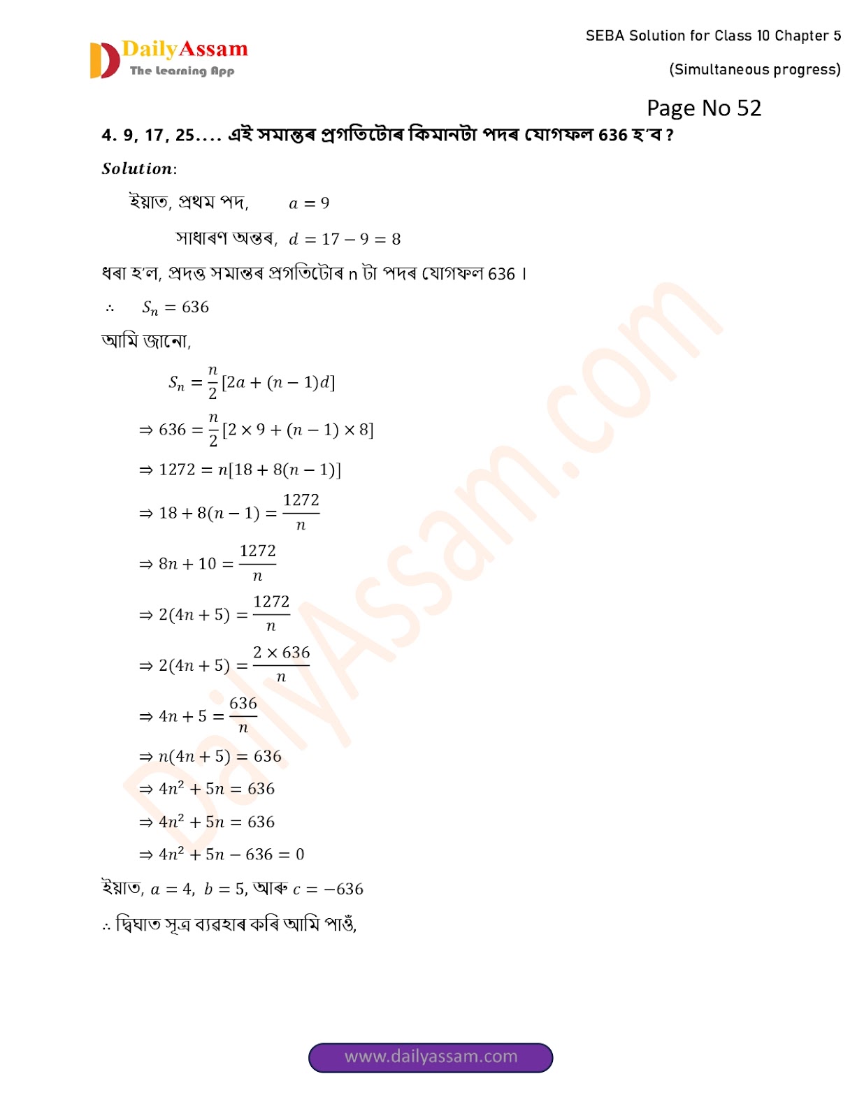 SEBA Class 10 Mathematics Chapter 5 Solution | Assam Board Class 10 Mathematics Chapter 5 "সমান্তৰ প্ৰগতি" (Real numbers) Answer | 2025 - 2026