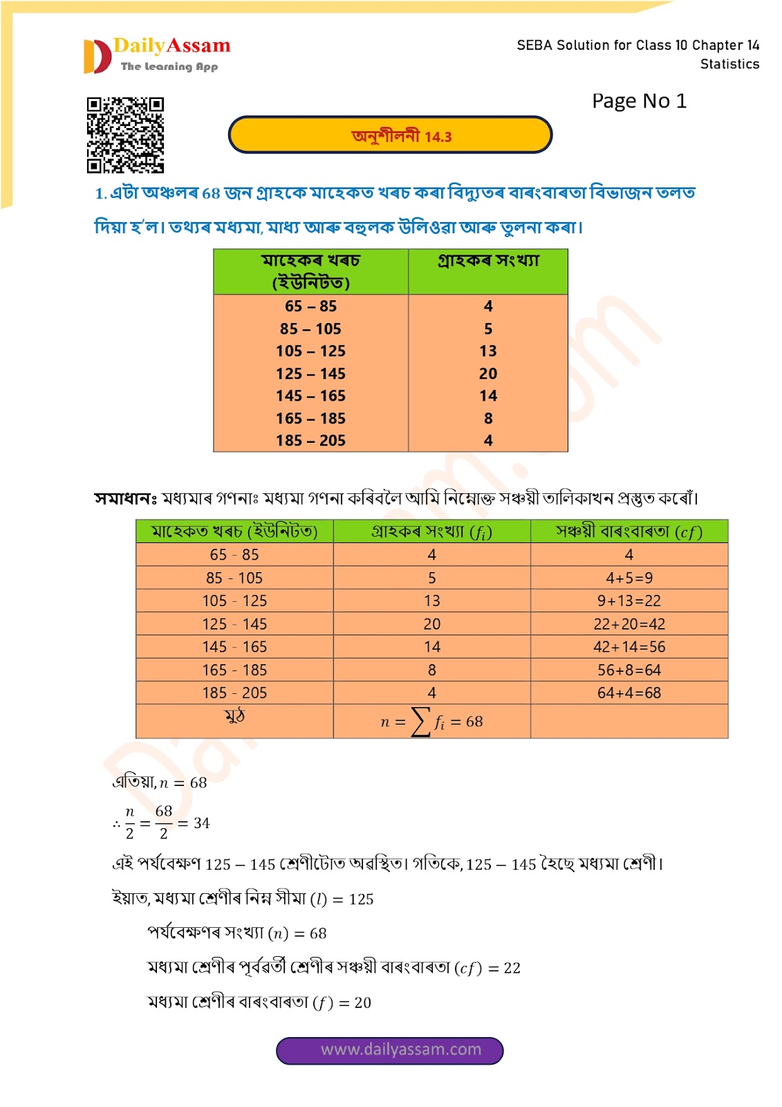 পৰিসংখ্য়া | Statistics | Lesson 14 | Exercise 14.3 | Class 10 Mathematics Solution Assamese Medium | Class 10 Maths Solution Assam | দশম শ্ৰেণীৰ গণিতৰ প্ৰশ্ন উত্তৰ |