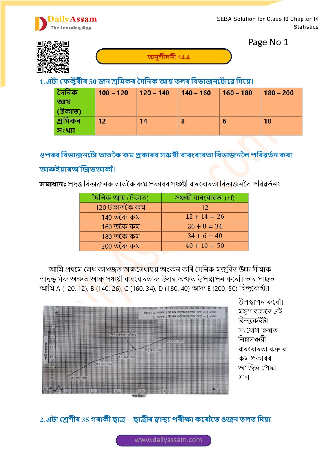 পৰিসংখ্য়া | Statistics | Lesson 14 | Exercise 14.4 | Class 10 Mathematics Solution Assamese Medium | Class 10 Maths Solution Assam | দশম শ্ৰেণীৰ গণিতৰ প্ৰশ্ন উত্তৰ |