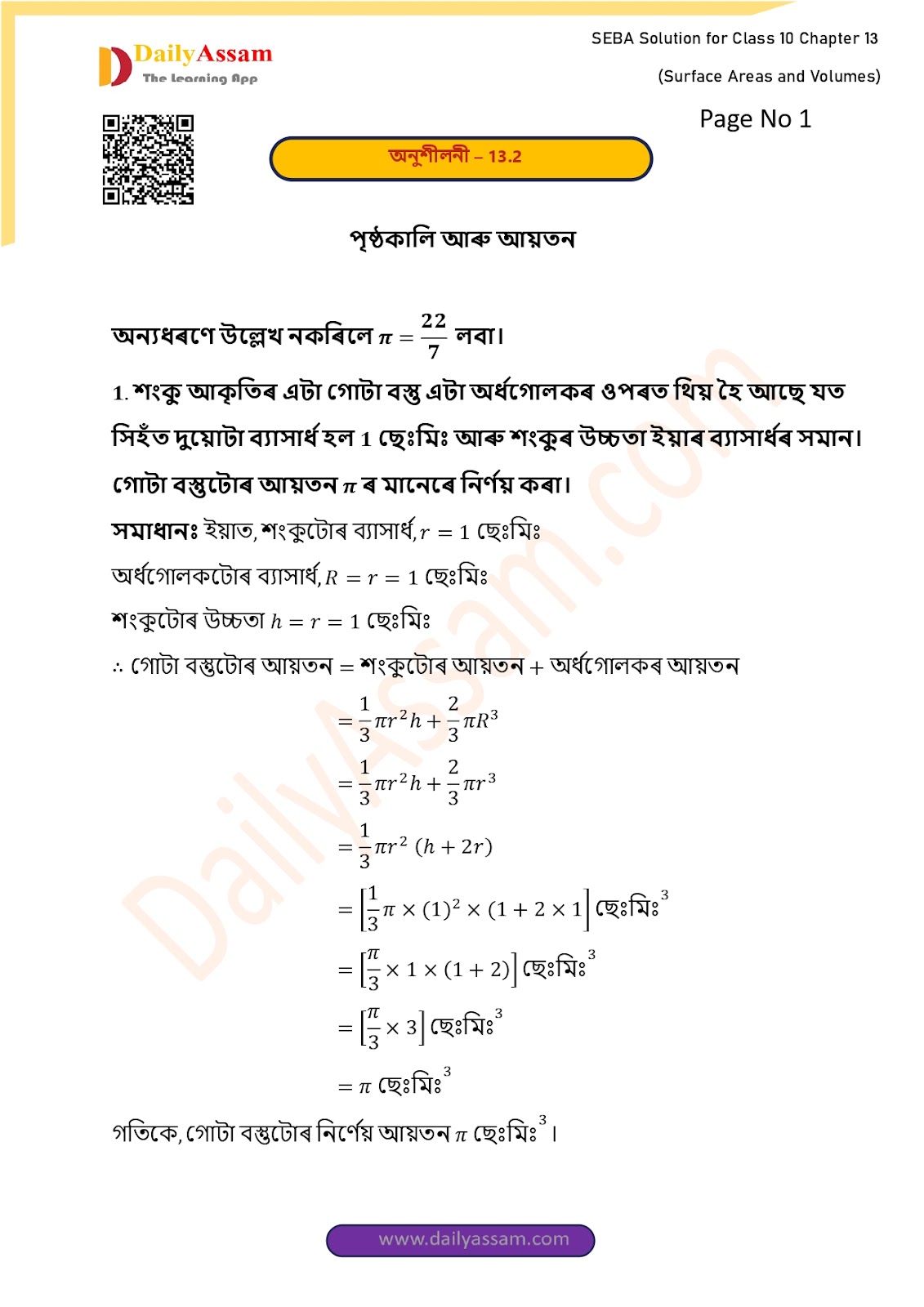 পৃষ্ঠকালি আৰু আয়তন | surface areas and volumes | Lesson 13 | Exercise 13.2 | Class 10 Mathematics Solution Assamese Medium | Class 10 Maths Solution Assam | দশম শ্ৰেণীৰ গণিতৰ প্ৰশ্ন উত্তৰ |