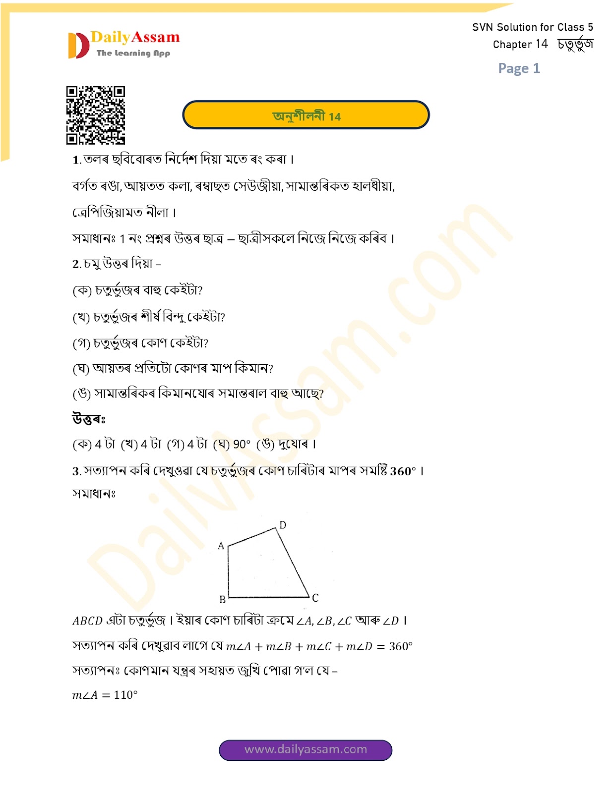 SVN Class 5 Mathematics Chapter 14 Solution | Sankardev Sishu Niketan Class 5 Mathematics Chapter 14 চতুৰ্ভুজ (The quadrilateral) Answer | 2025 - 2026