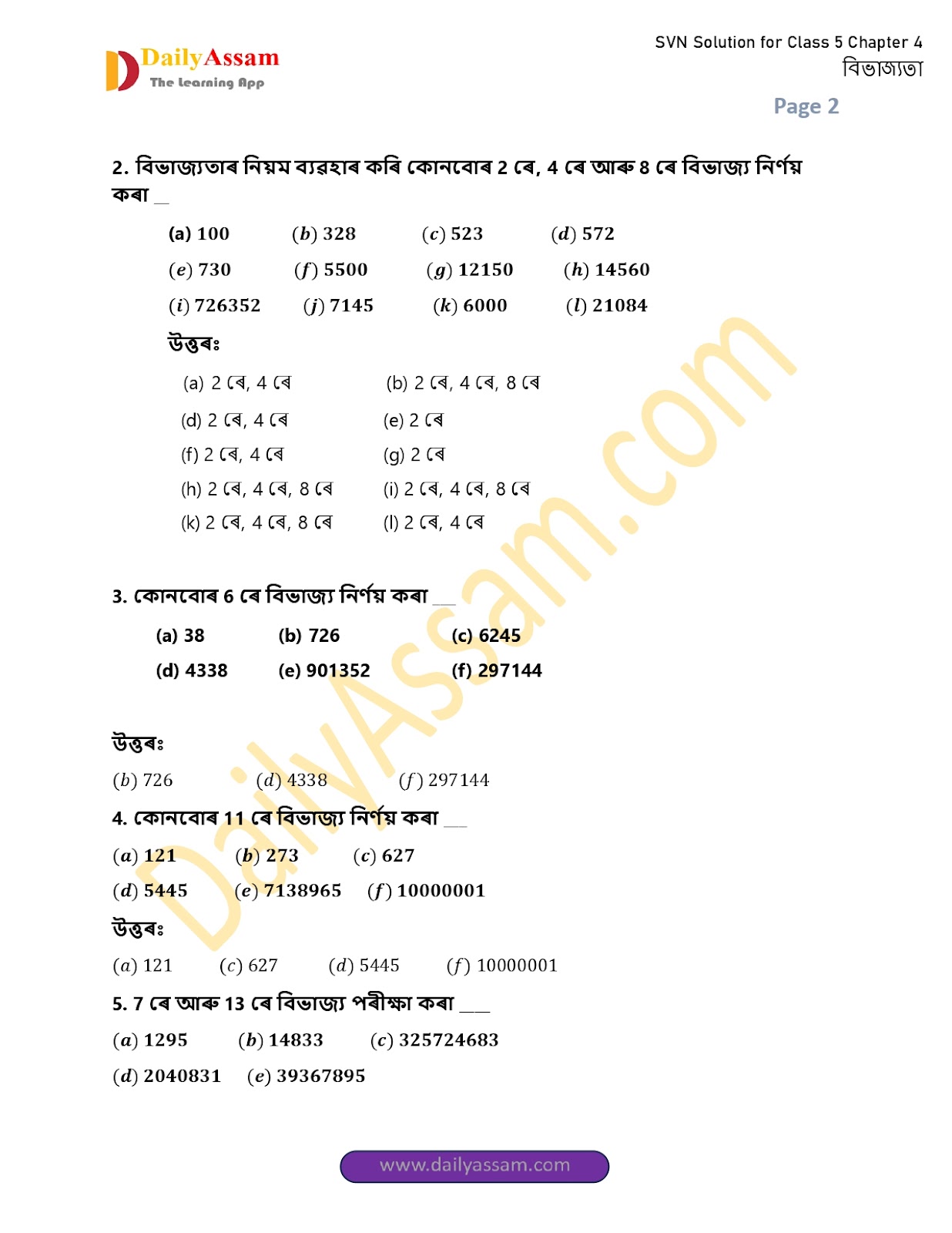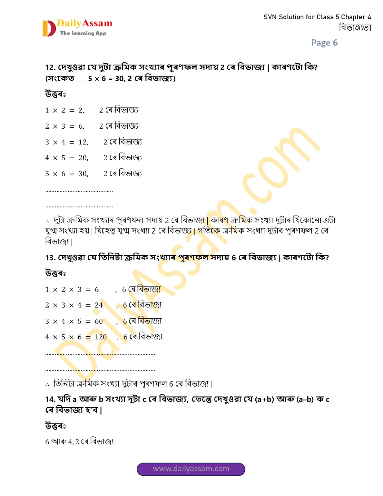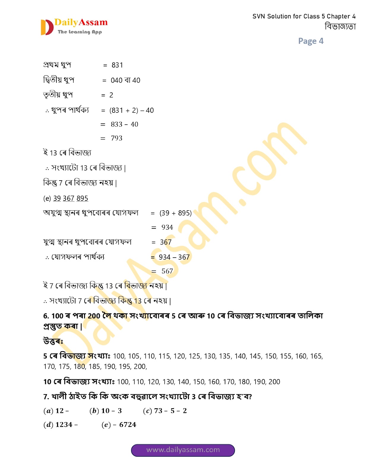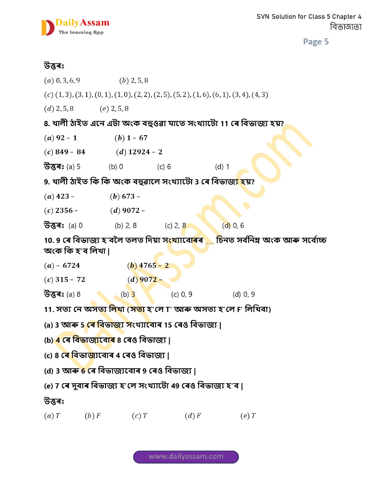 SVN Class 5 Mathematics Chapter 4 Solution | Sankardev Sishu Niketan Class 5 Mathematics Chapter 4 বিভাজ্যতাঃ (Divisibility:) Answer | 2025 - 2026