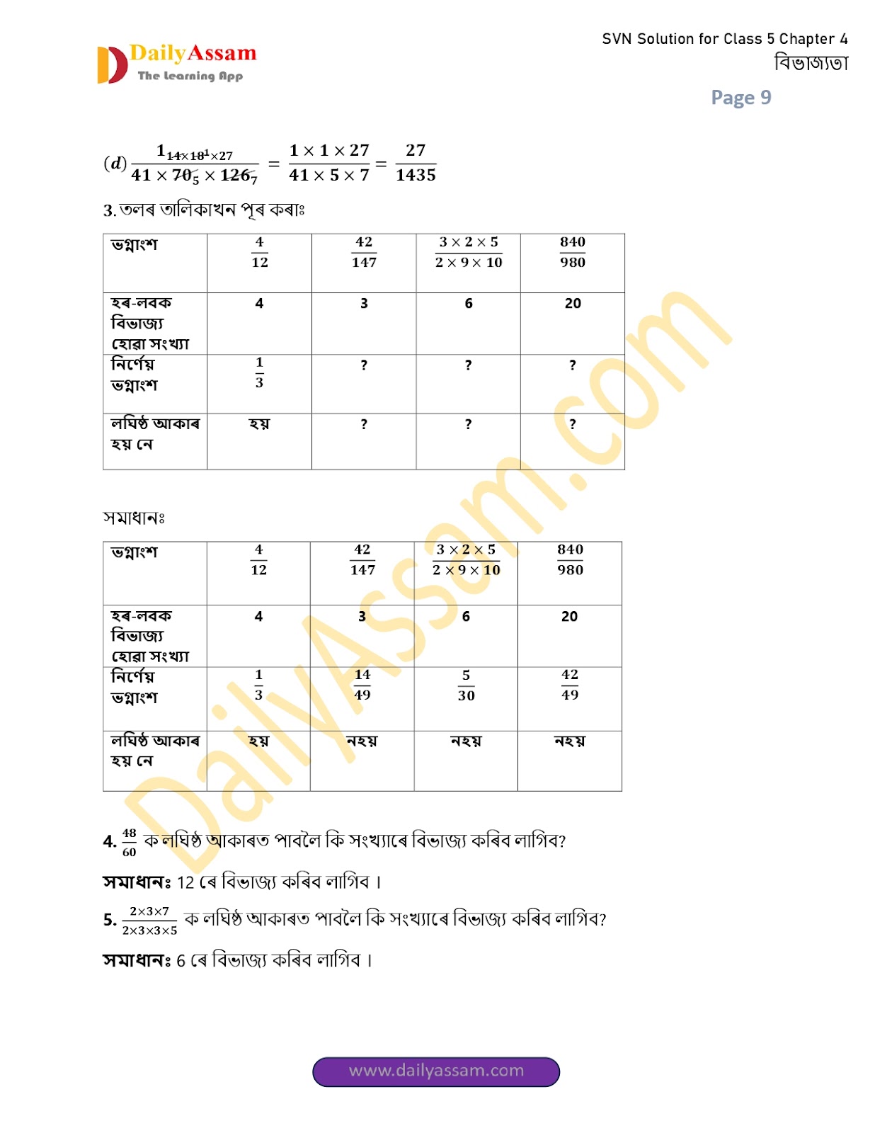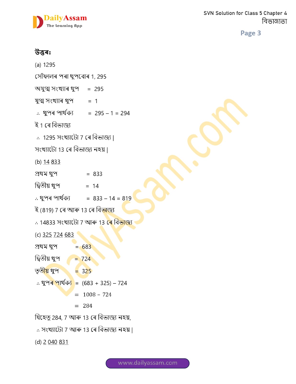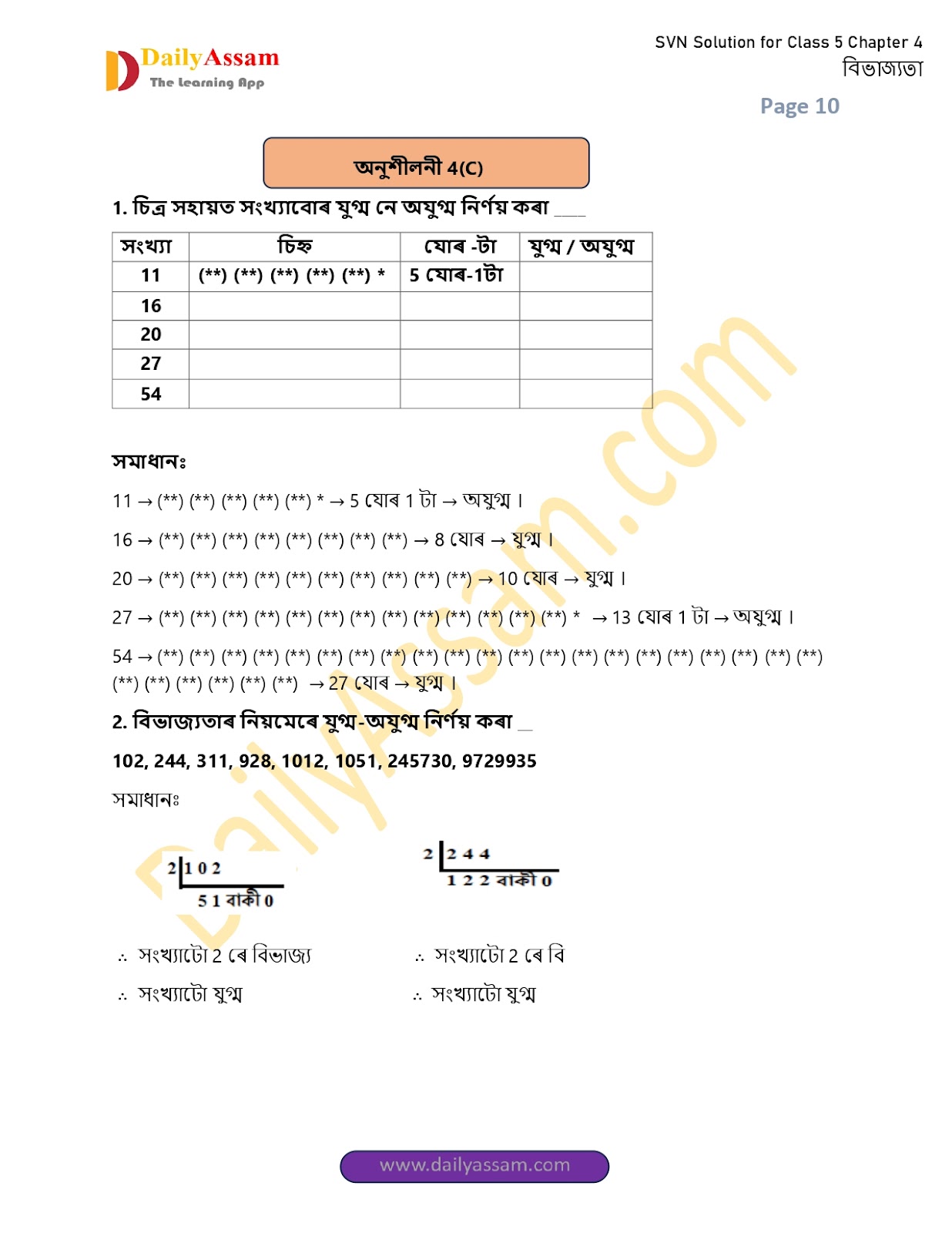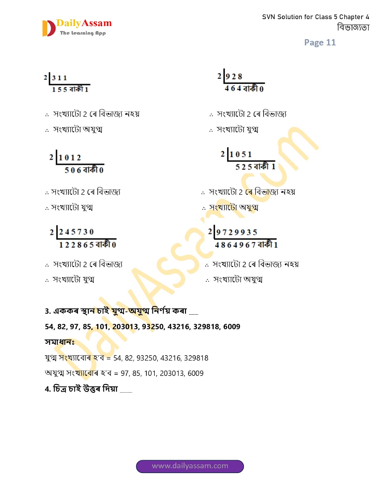 SVN Class 5 Mathematics Chapter 4 Solution | Sankardev Sishu Niketan Class 5 Mathematics Chapter 4 বিভাজ্যতাঃ (Divisibility:) Answer | 2025 - 2026