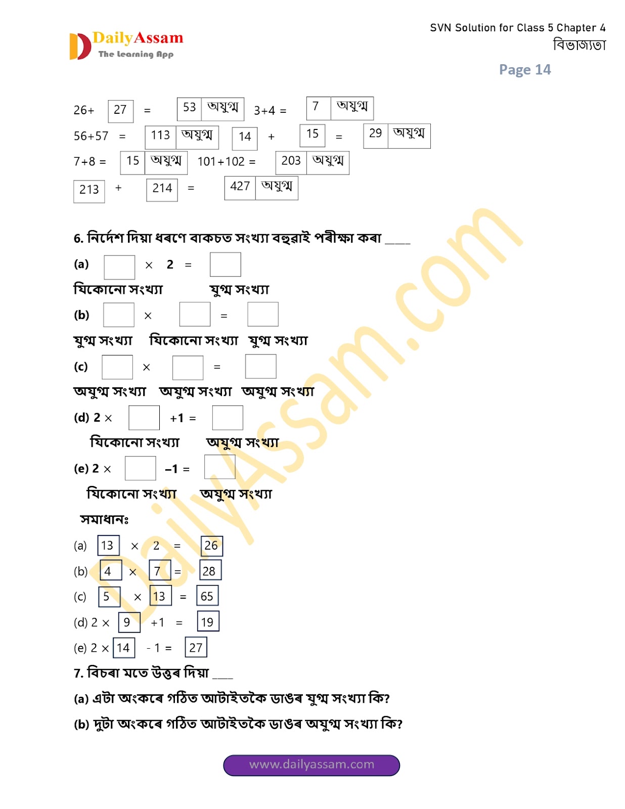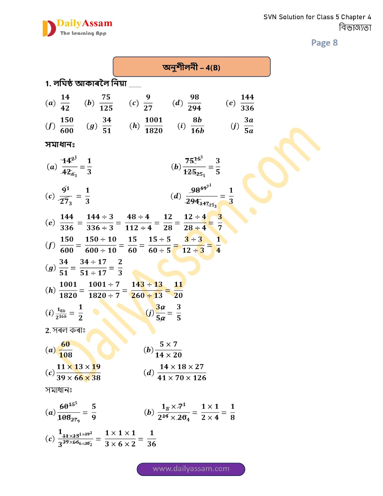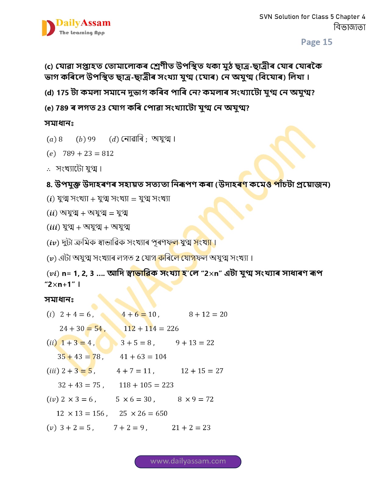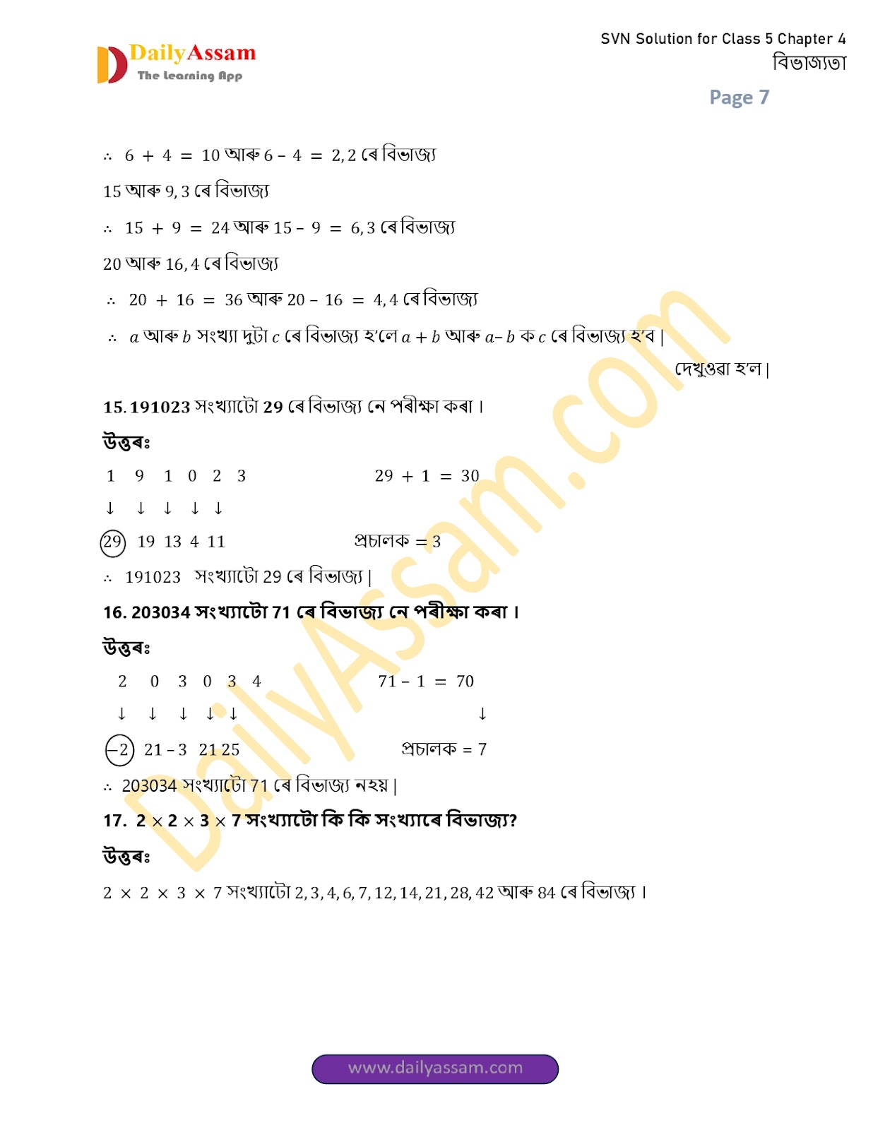 SVN Class 5 Mathematics Chapter 4 Solution | Sankardev Sishu Niketan Class 5 Mathematics Chapter 4 বিভাজ্যতাঃ (Divisibility:) Answer | 2025 - 2026