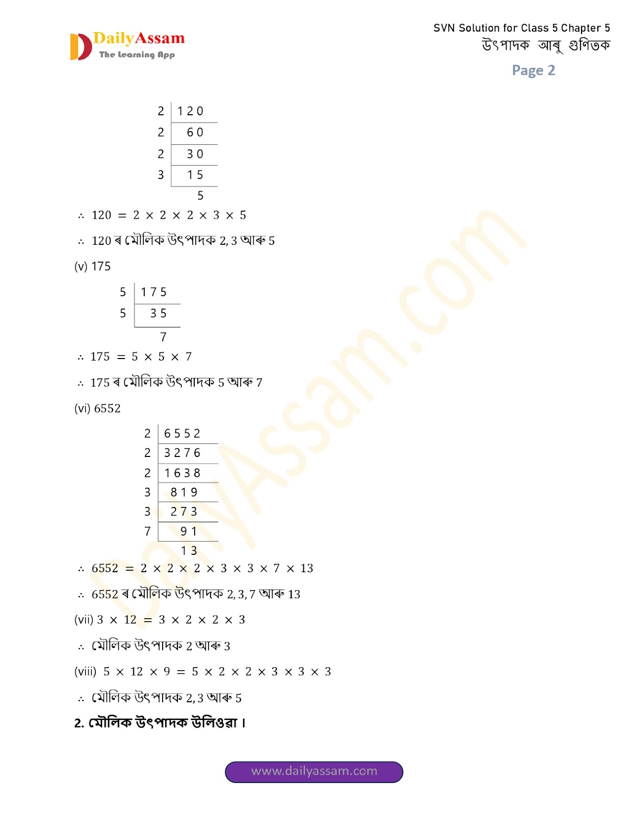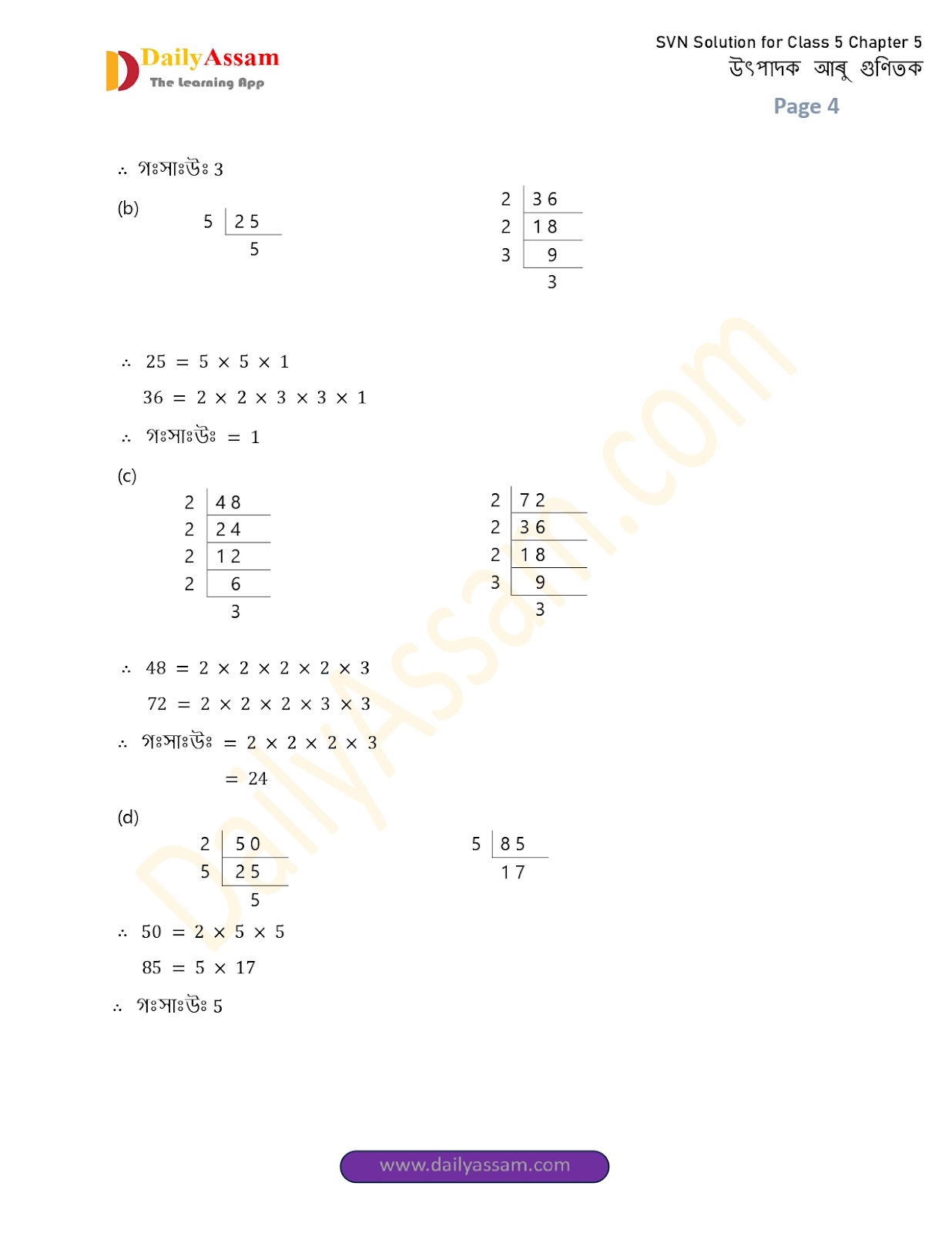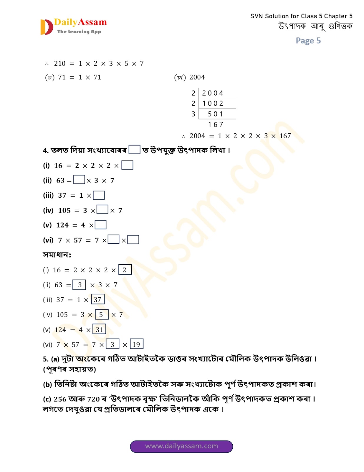 SVN Class 5 Mathematics Chapter 5 Solution | Sankardev Sishu Niketan Class 5 Mathematics Chapter 5 উৎপাদক আৰু গুণিতকঃ (Products and Multipliers:) Answer | 2025 - 2026