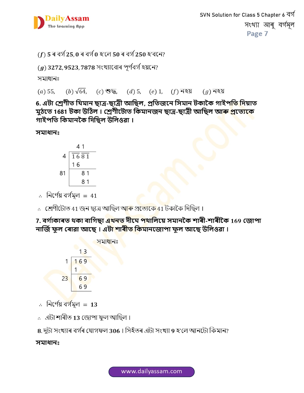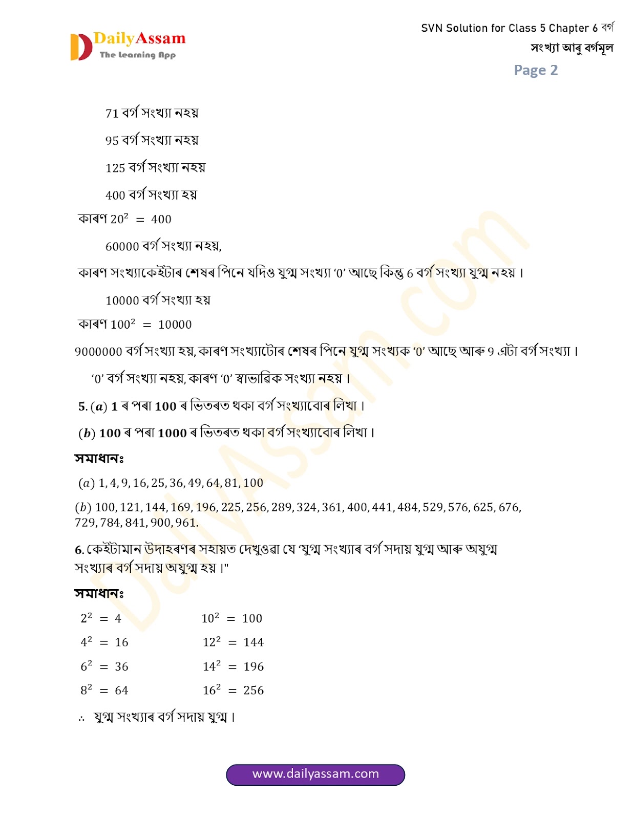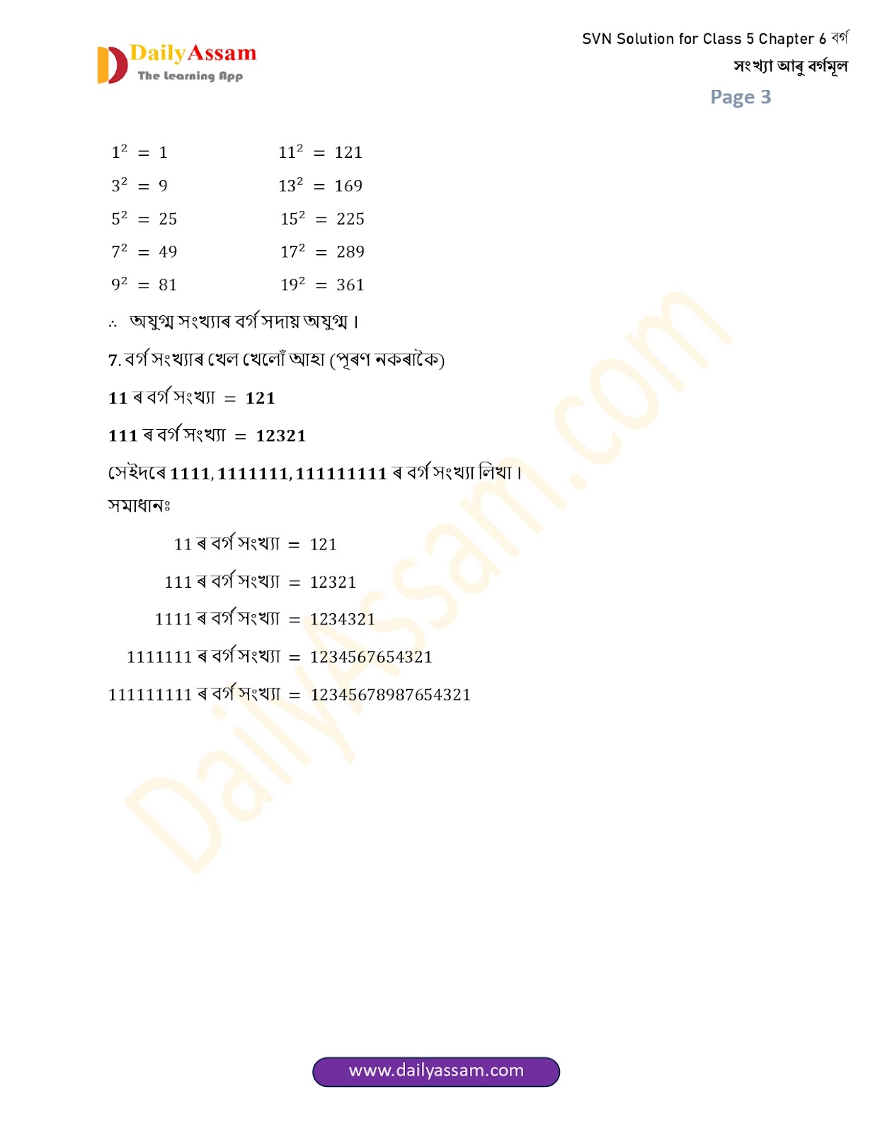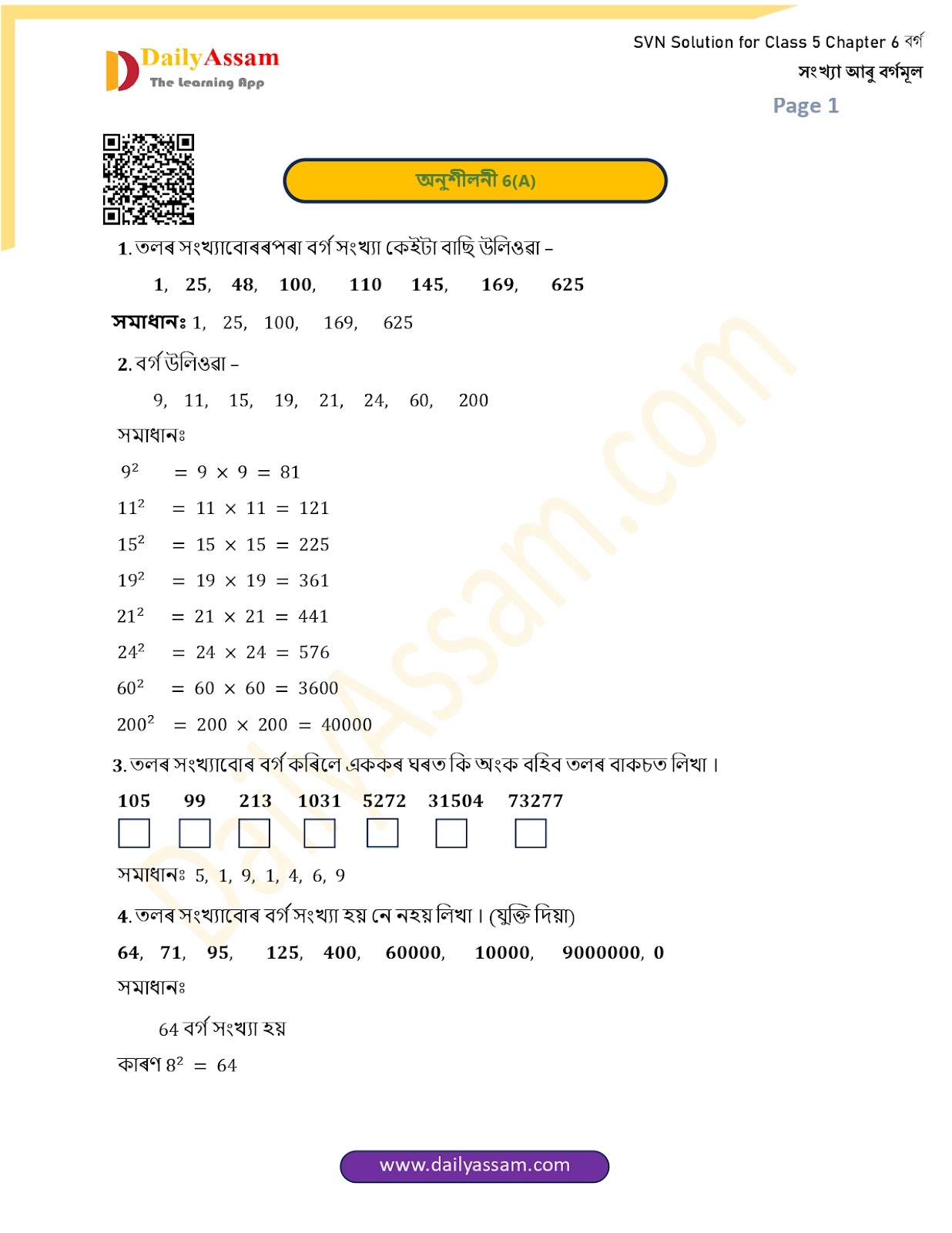 SVN Class 5 Mathematics Chapter 6 Solution | Sankardev Sishu Niketan Class 5 Mathematics Chapter 6 বৰ্গ সংখ্য়া আৰু বৰ্গমূল (Square numbers and square roots) Answer | 2025 - 2026