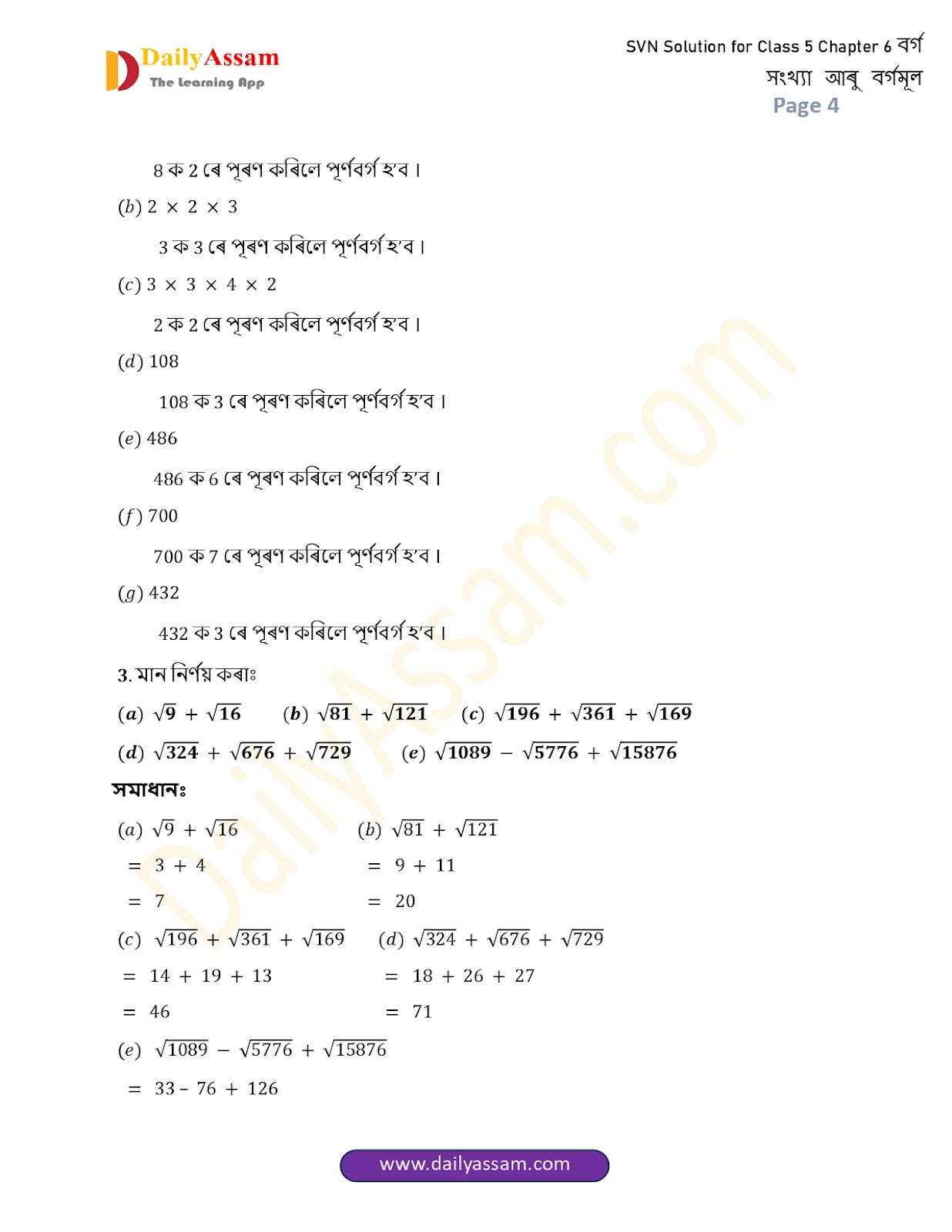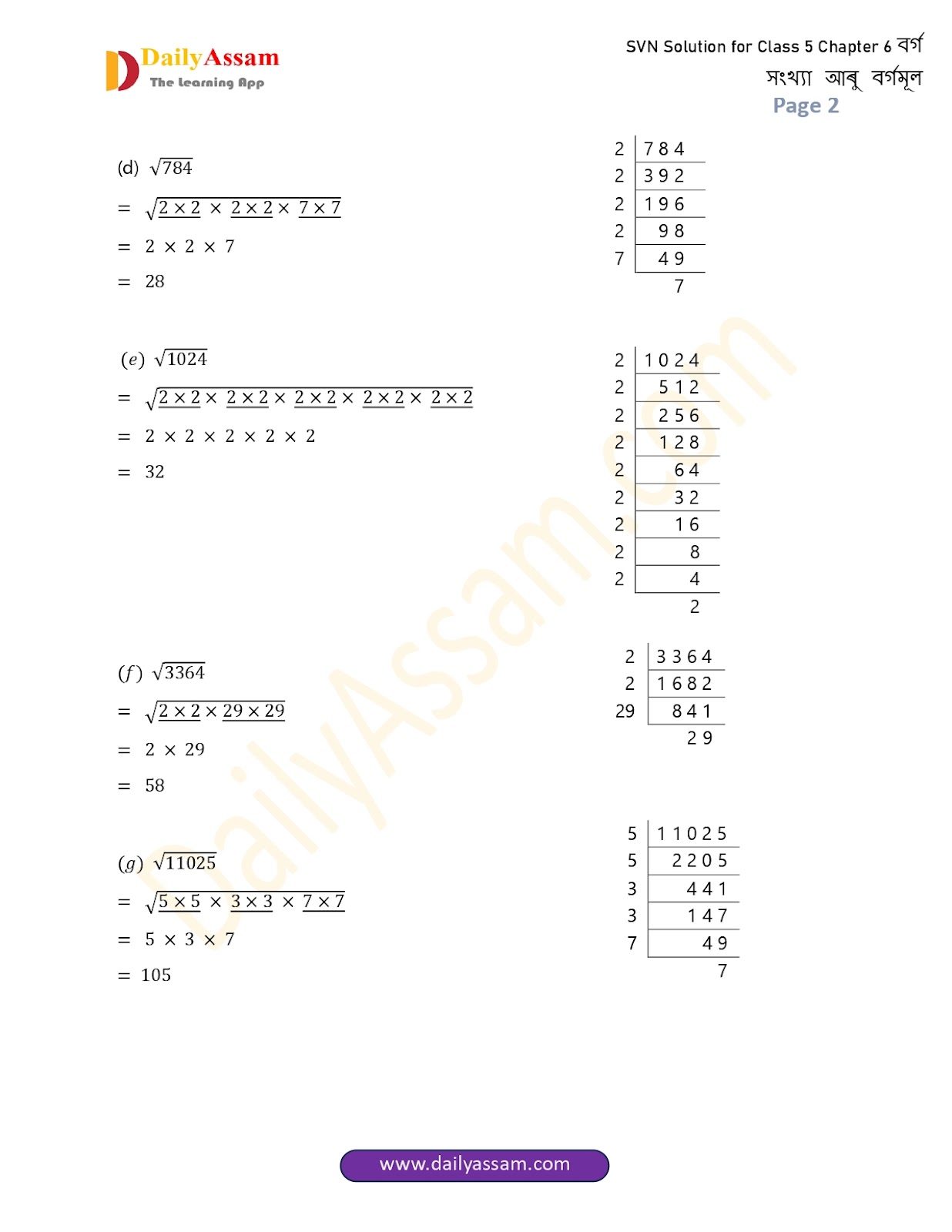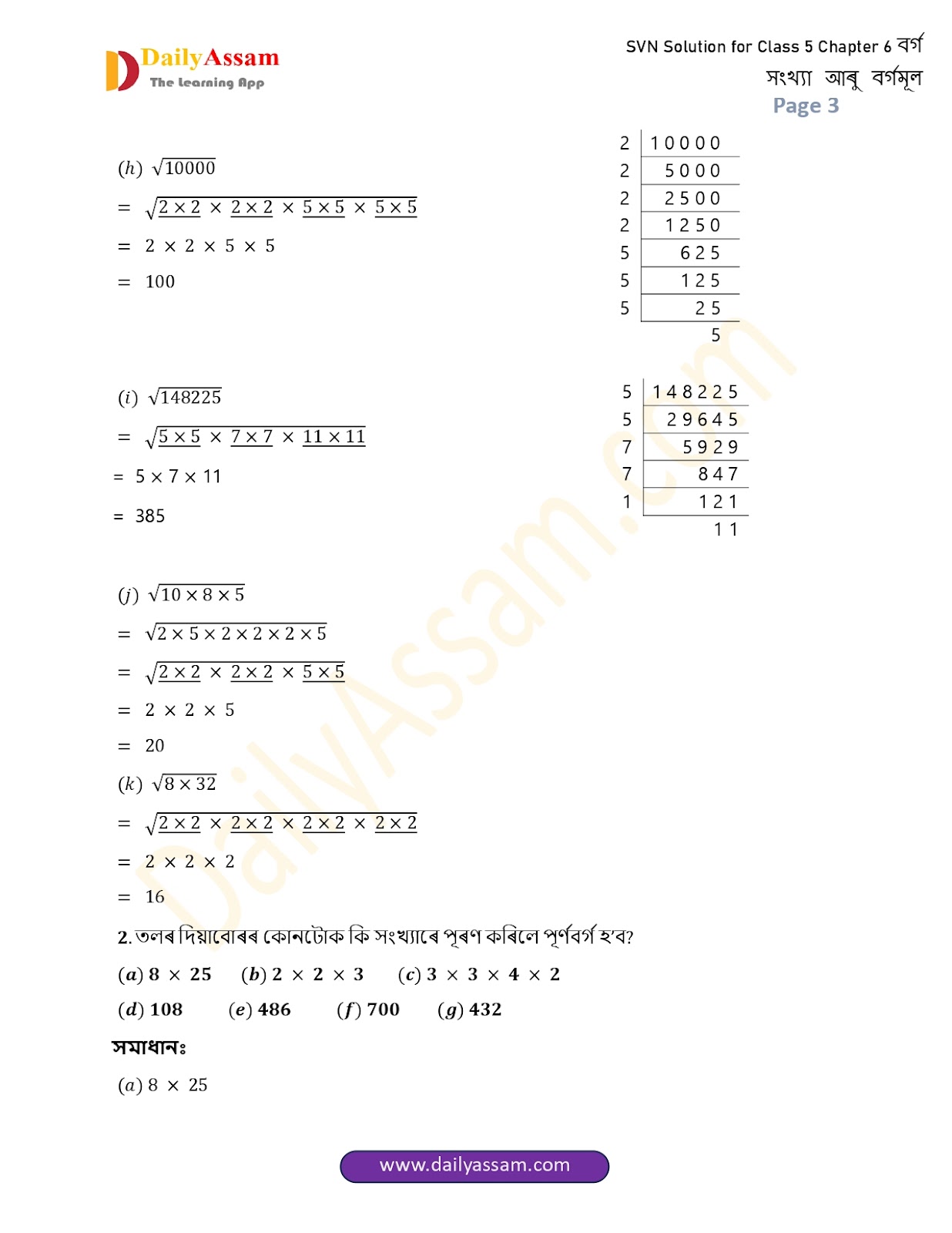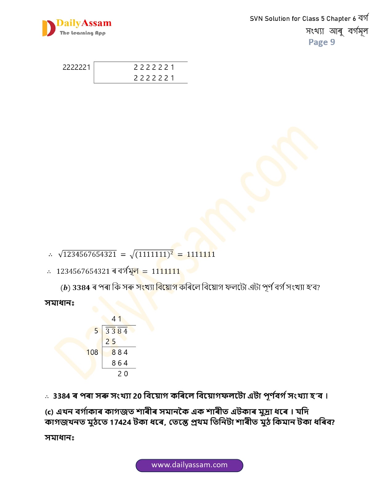 SVN Class 5 Mathematics Chapter 6 Solution | Sankardev Sishu Niketan Class 5 Mathematics Chapter 6 বৰ্গ সংখ্য়া আৰু বৰ্গমূল (Square numbers and square roots) Answer | 2025 - 2026