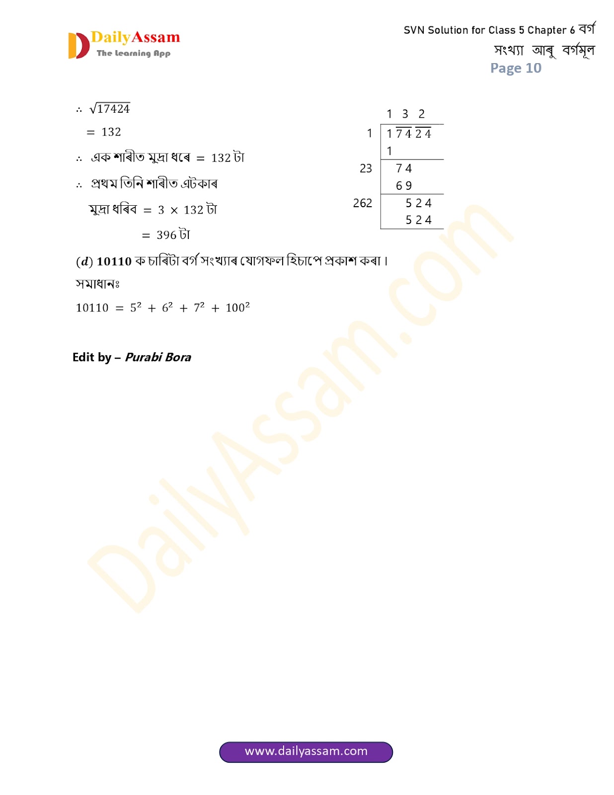 HomeClass 5 Maths (Sankardev) 142SVN Class 5 Mathematics Chapter 6 Solution | Sankardev Sishu Niketan Class 5 Mathematics Chapter 6 বৰ্গ সংখ্য়া আৰু বৰ্গমূল (Square numbers and square roots) Answer | 2025 - 2026